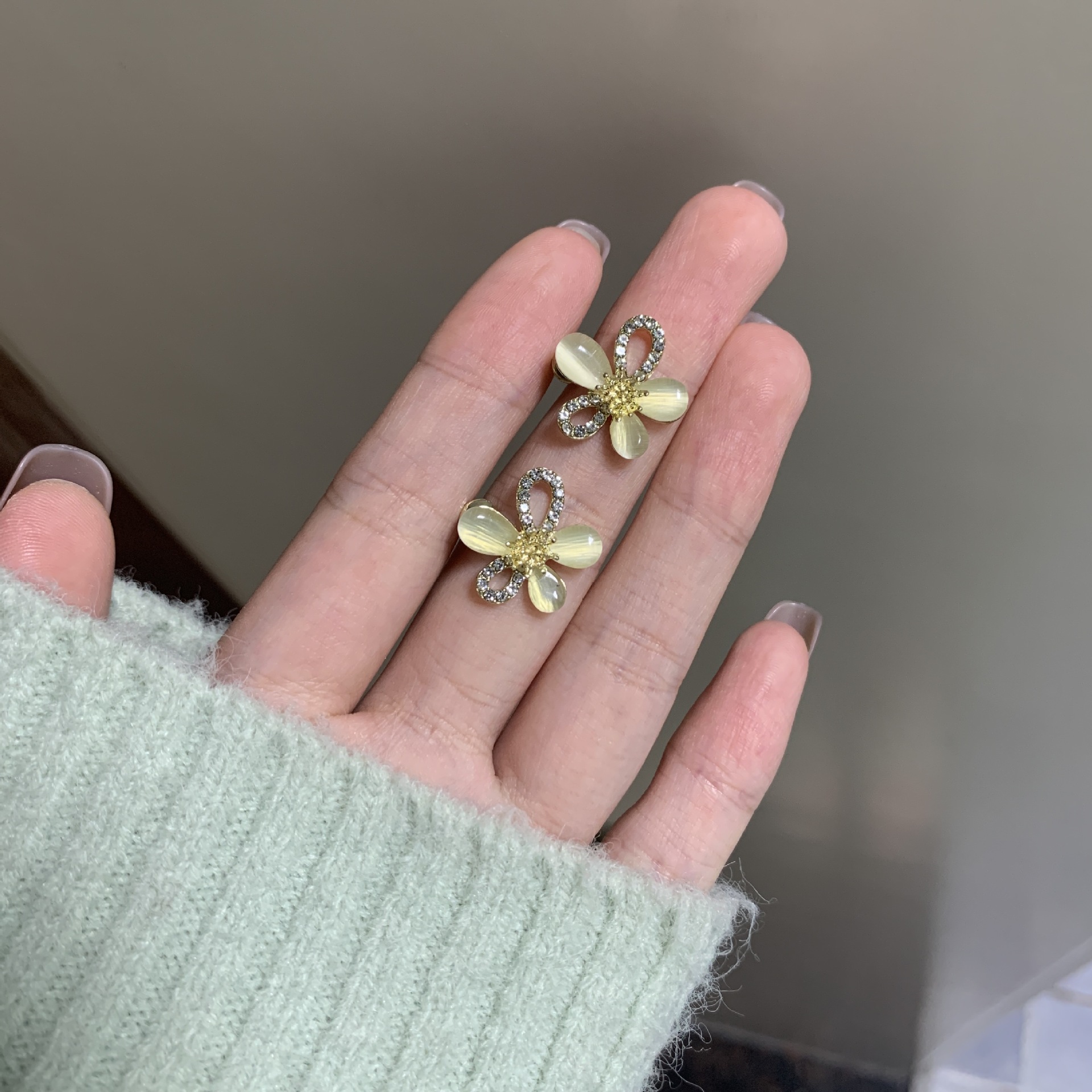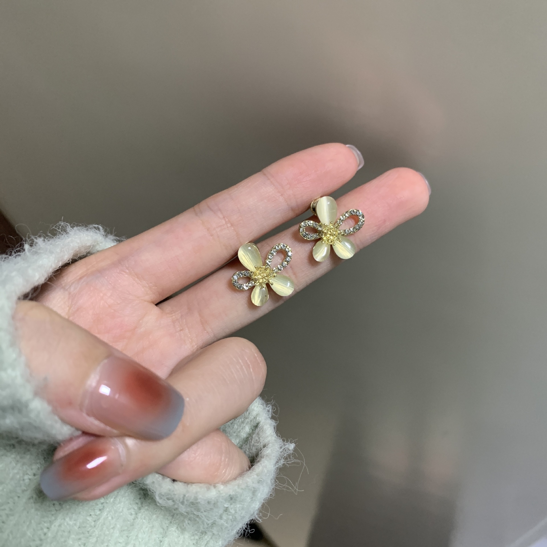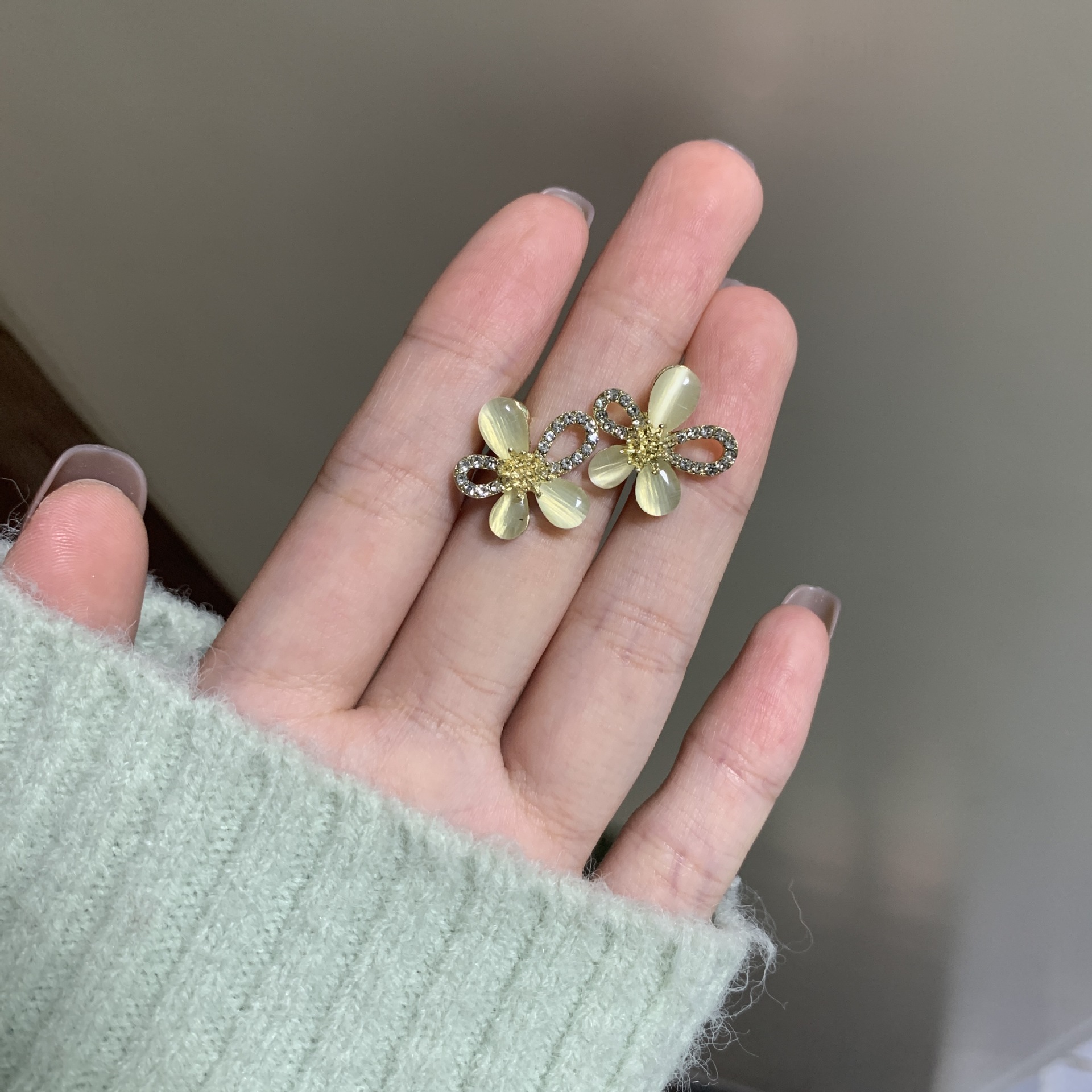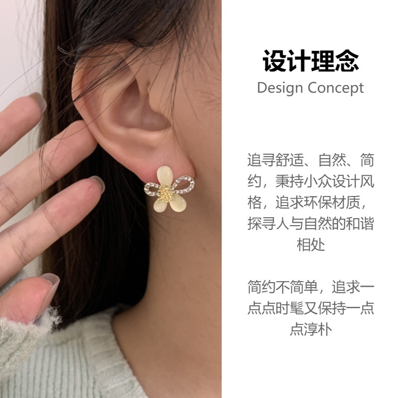 猫眼石耳钉高级感冷淡风耳环轻奢小众设计感2024年新款潮耳饰批发