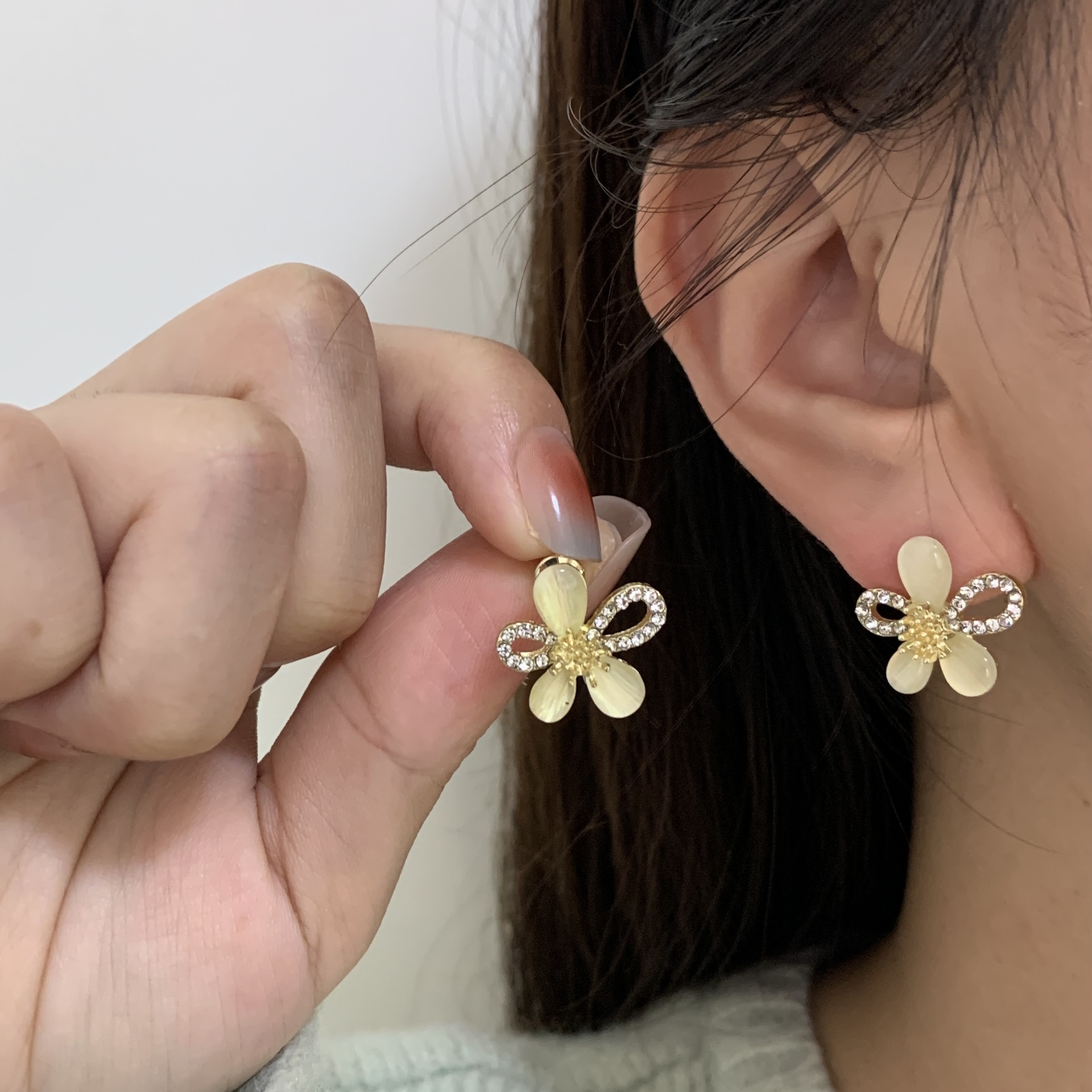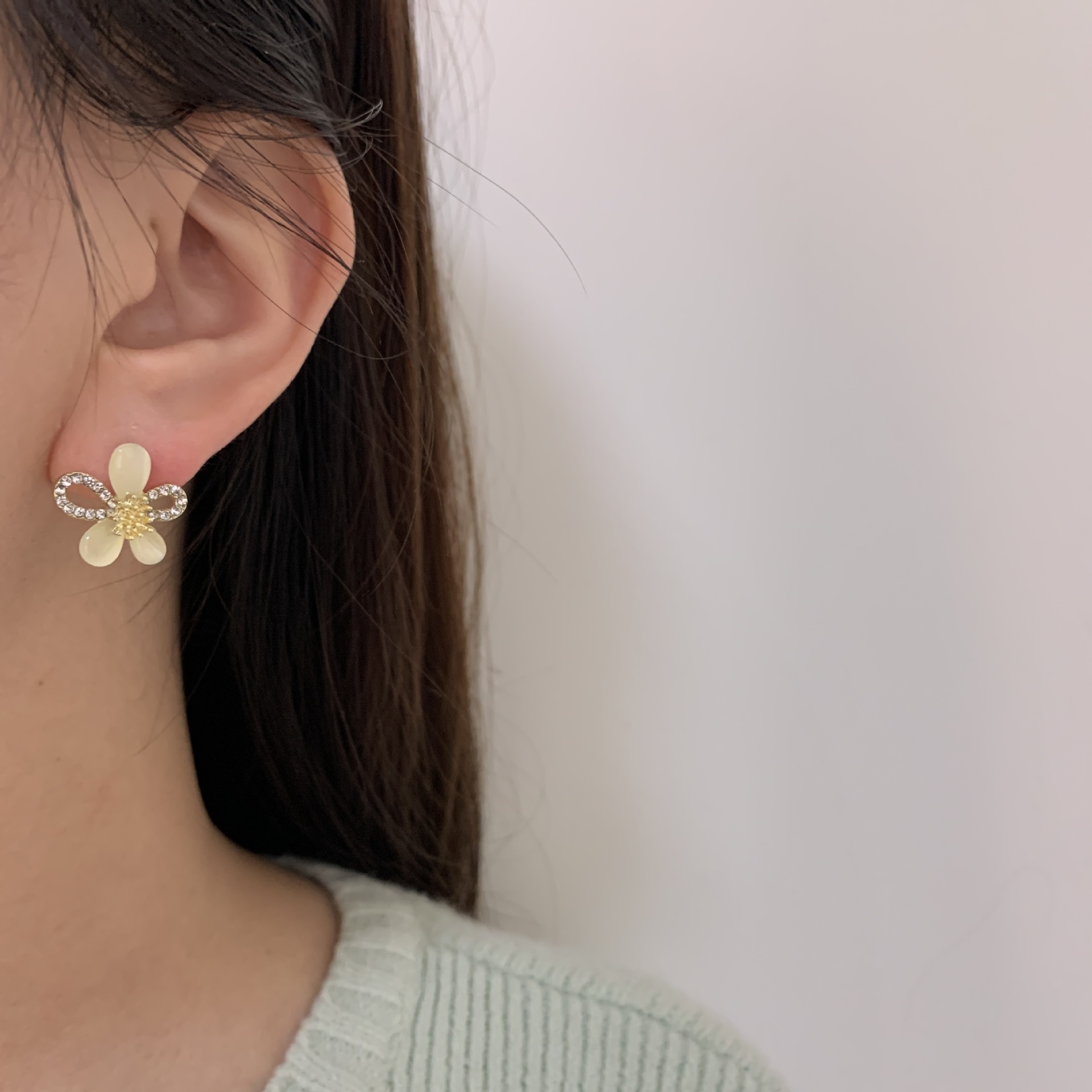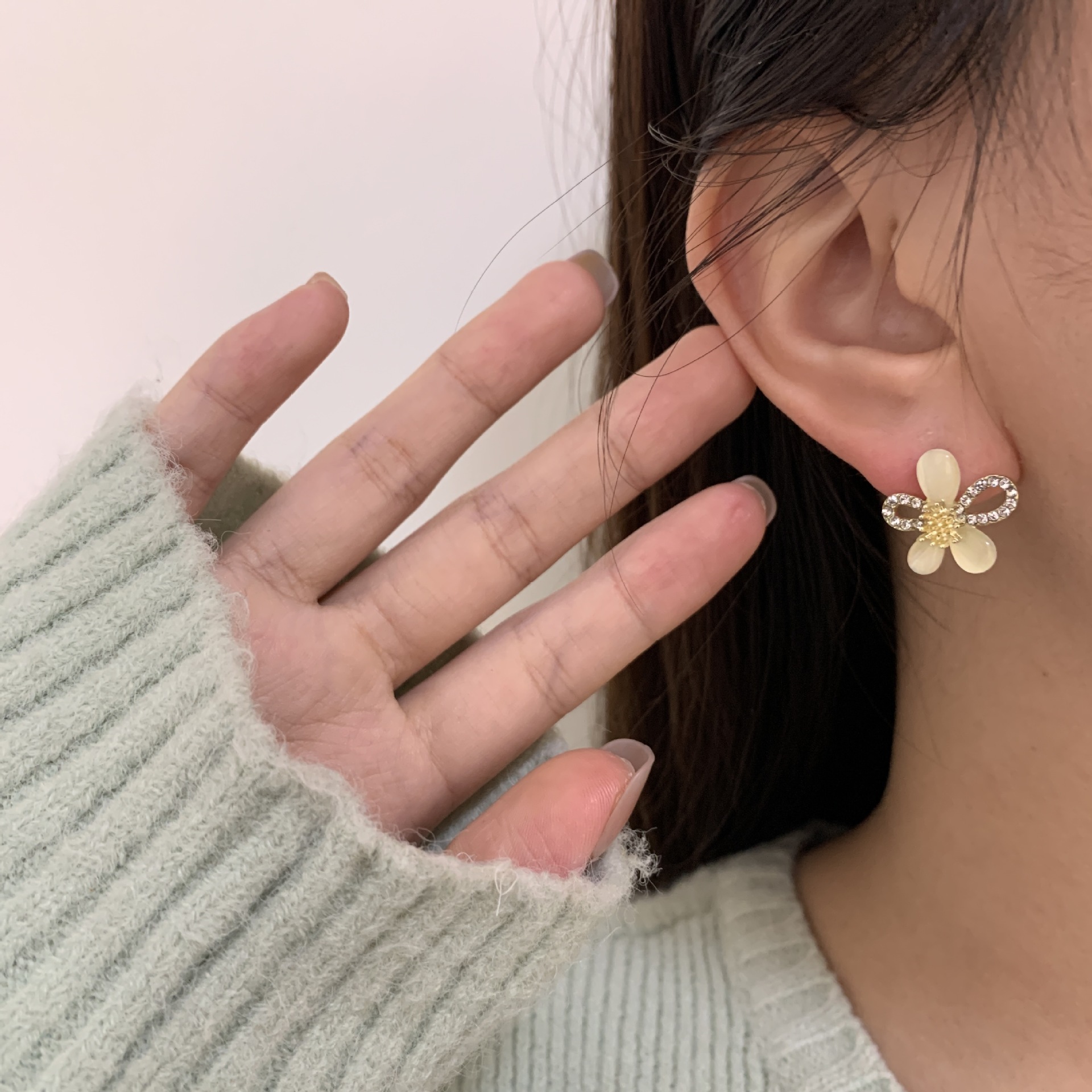 猫眼石耳钉高级感冷淡风耳环轻奢小众设计感2024年新款潮耳饰批发