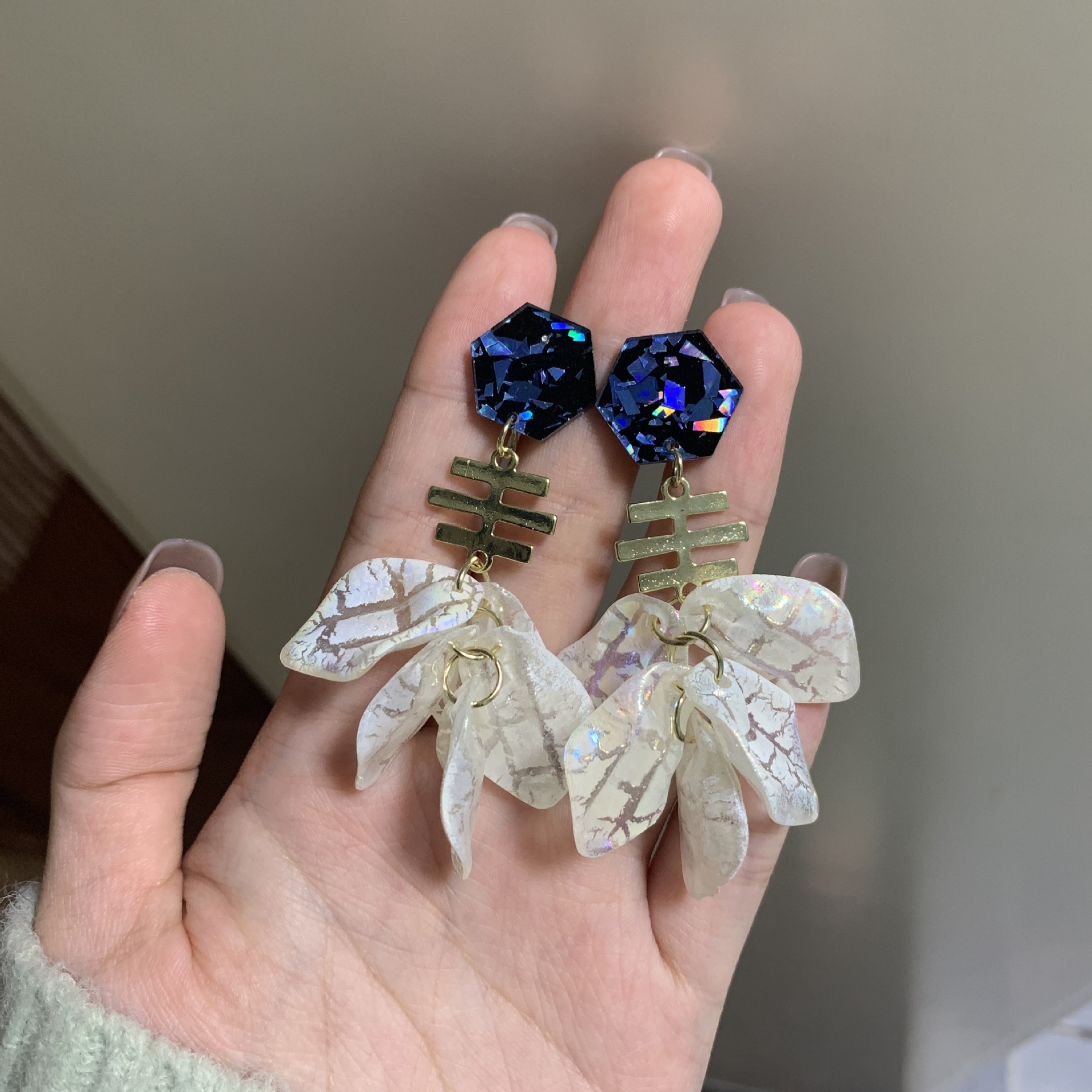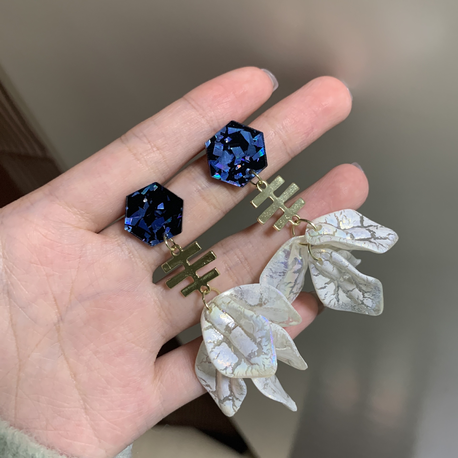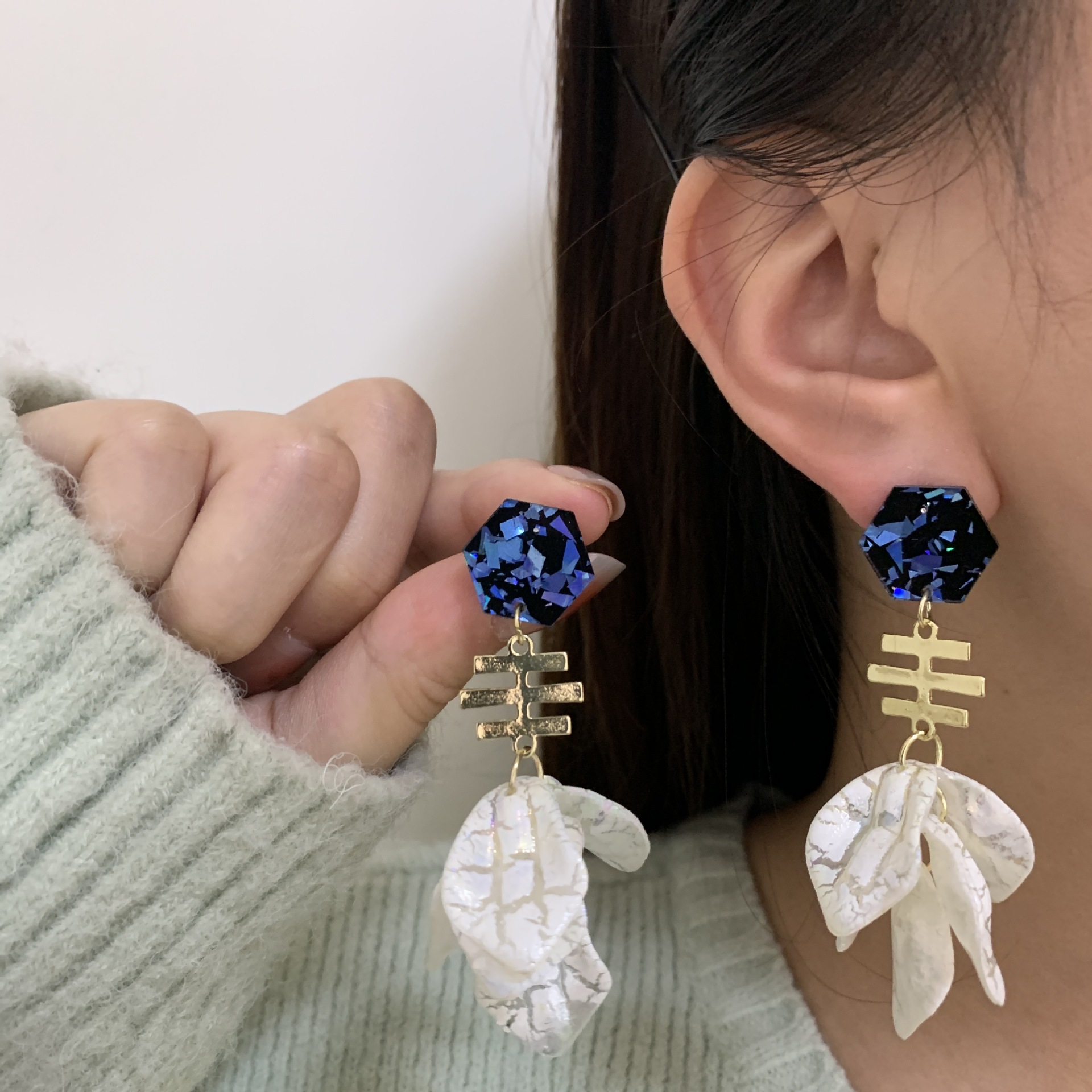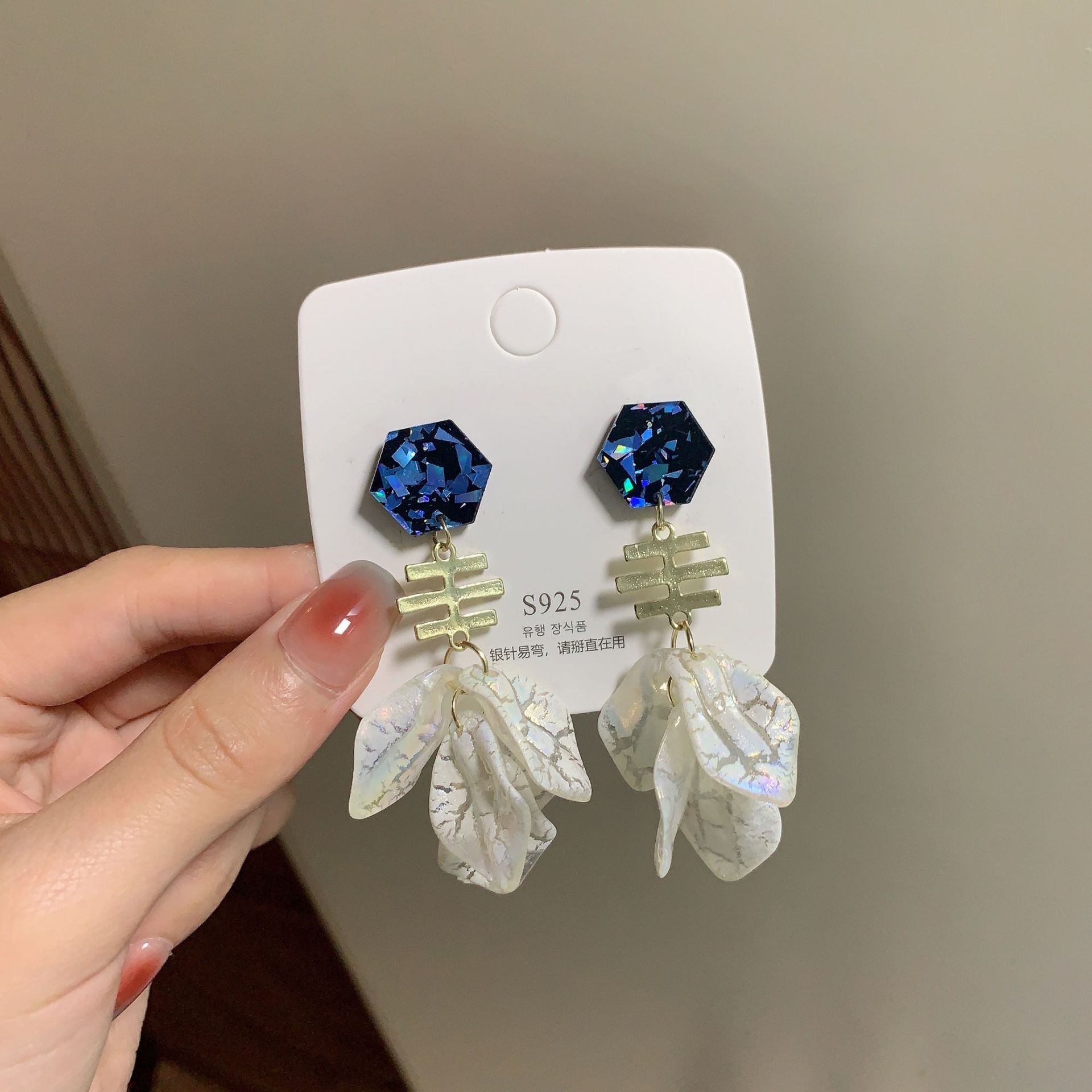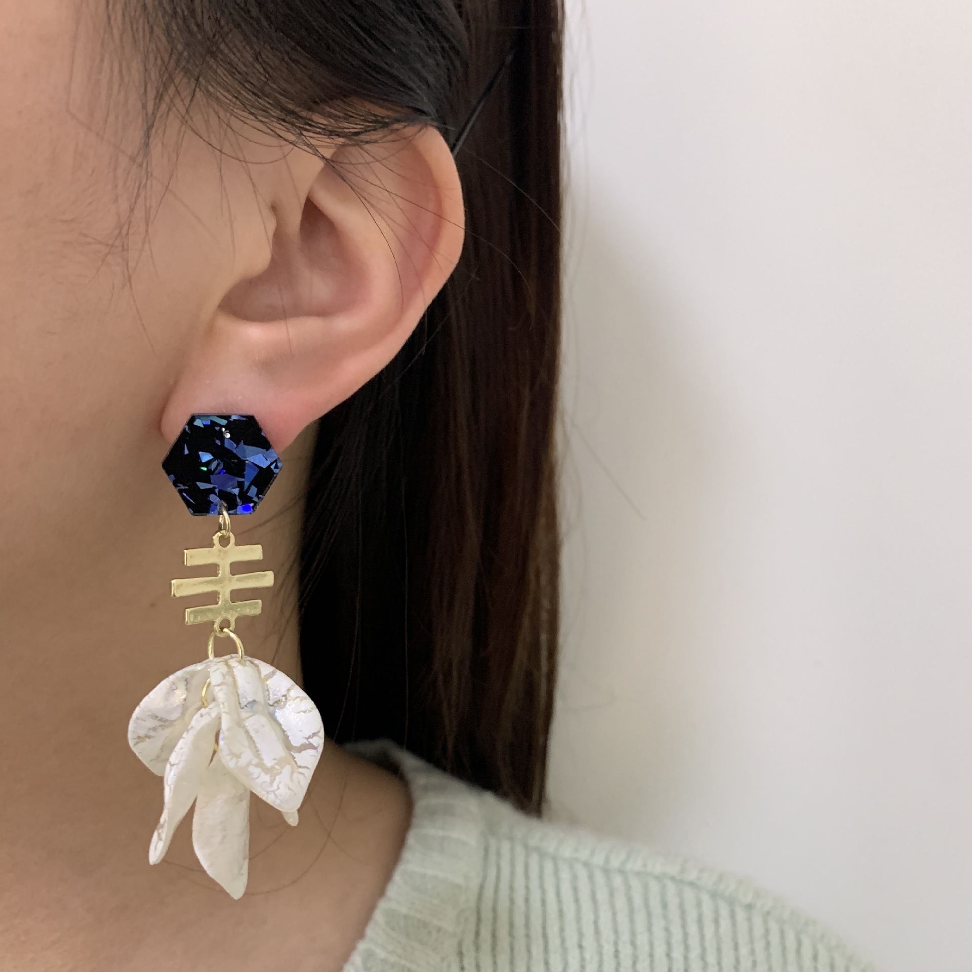 轻奢高级感流苏耳饰特别设计感气质名媛夸张夏季耳坠白花瓣耳环女