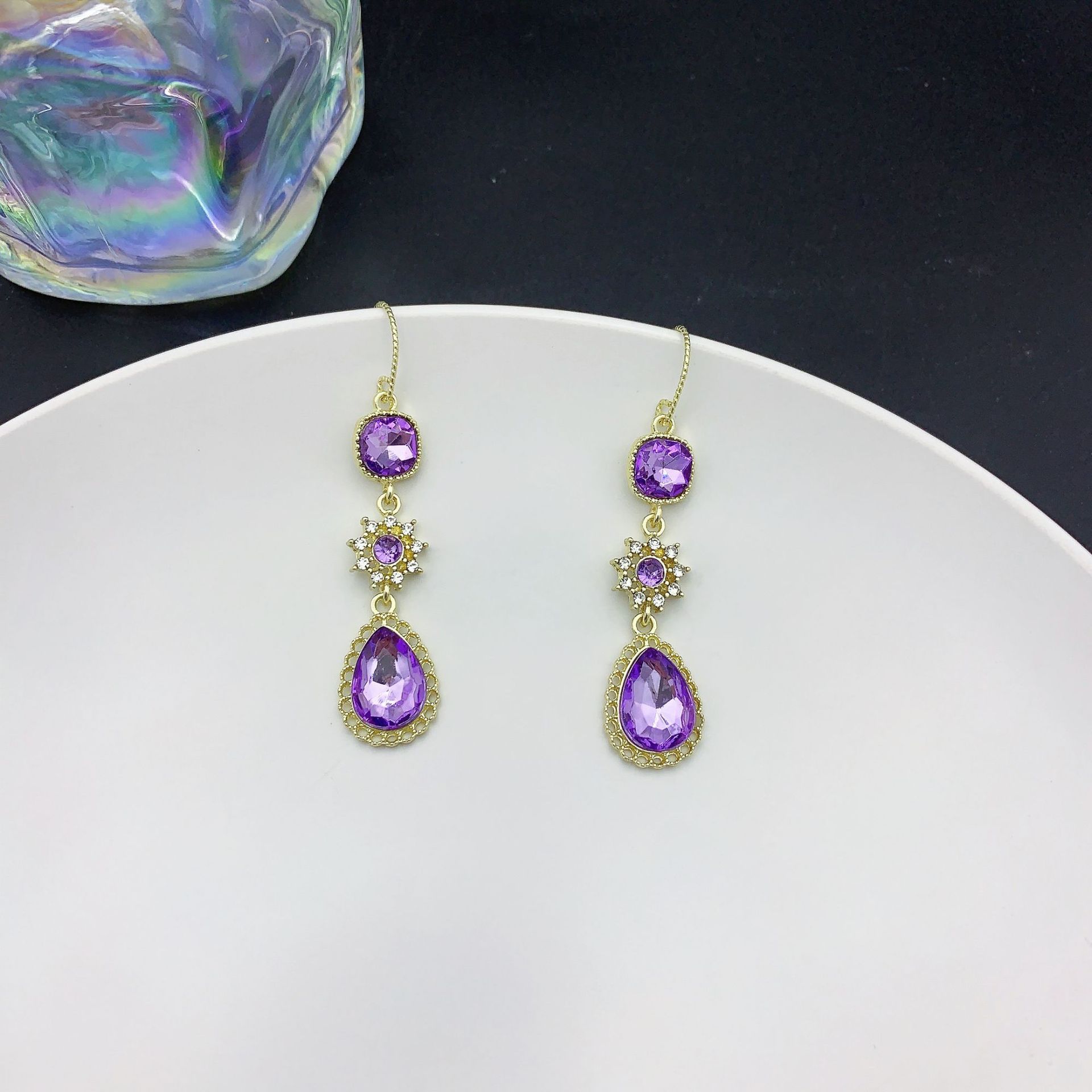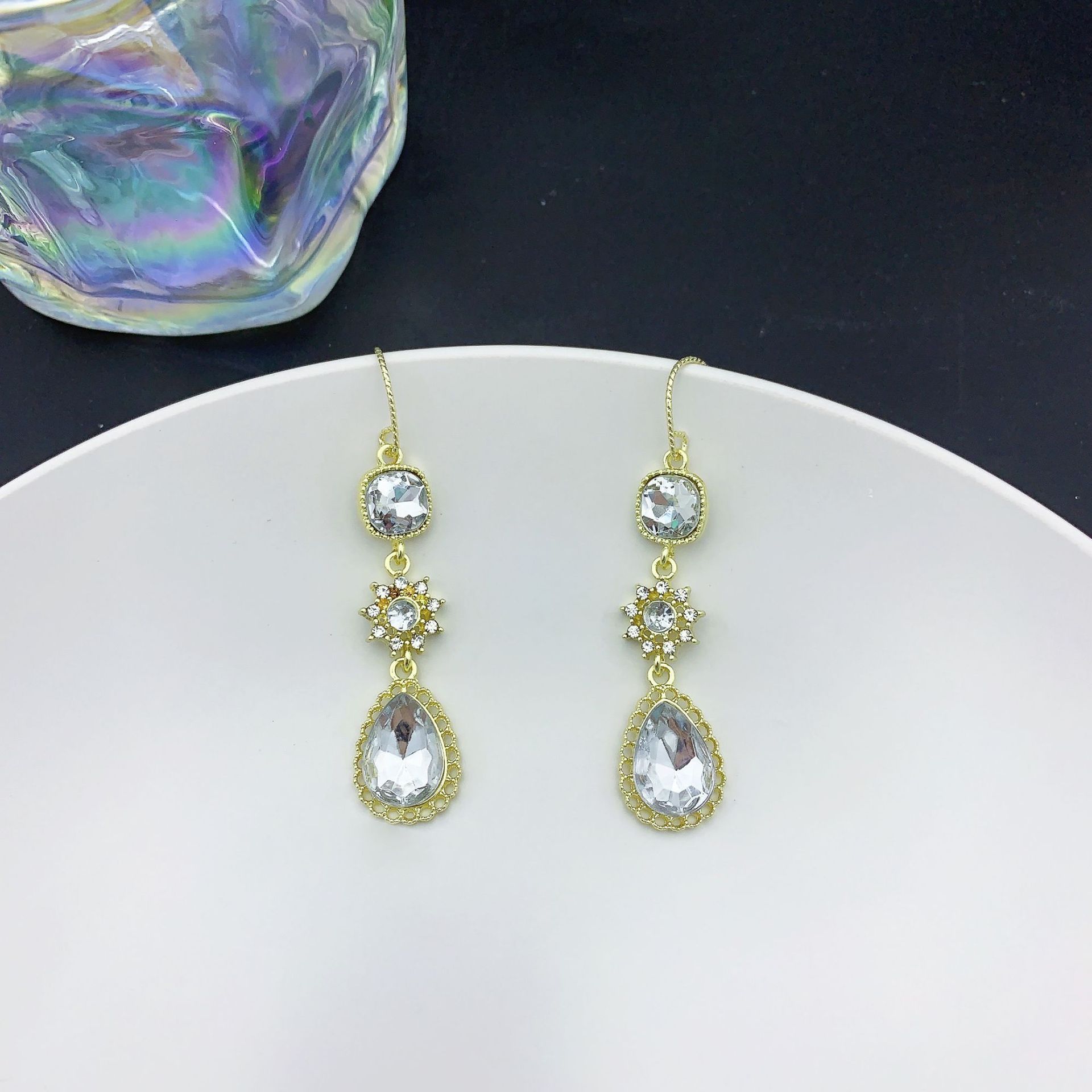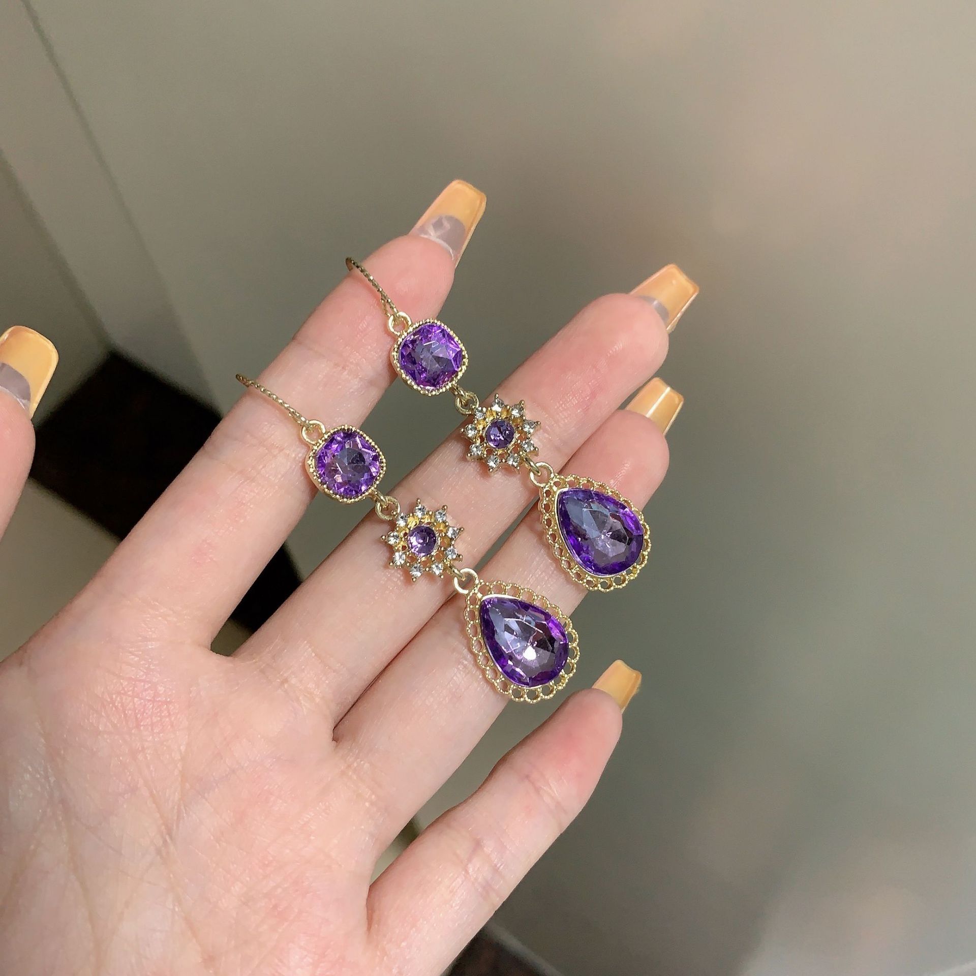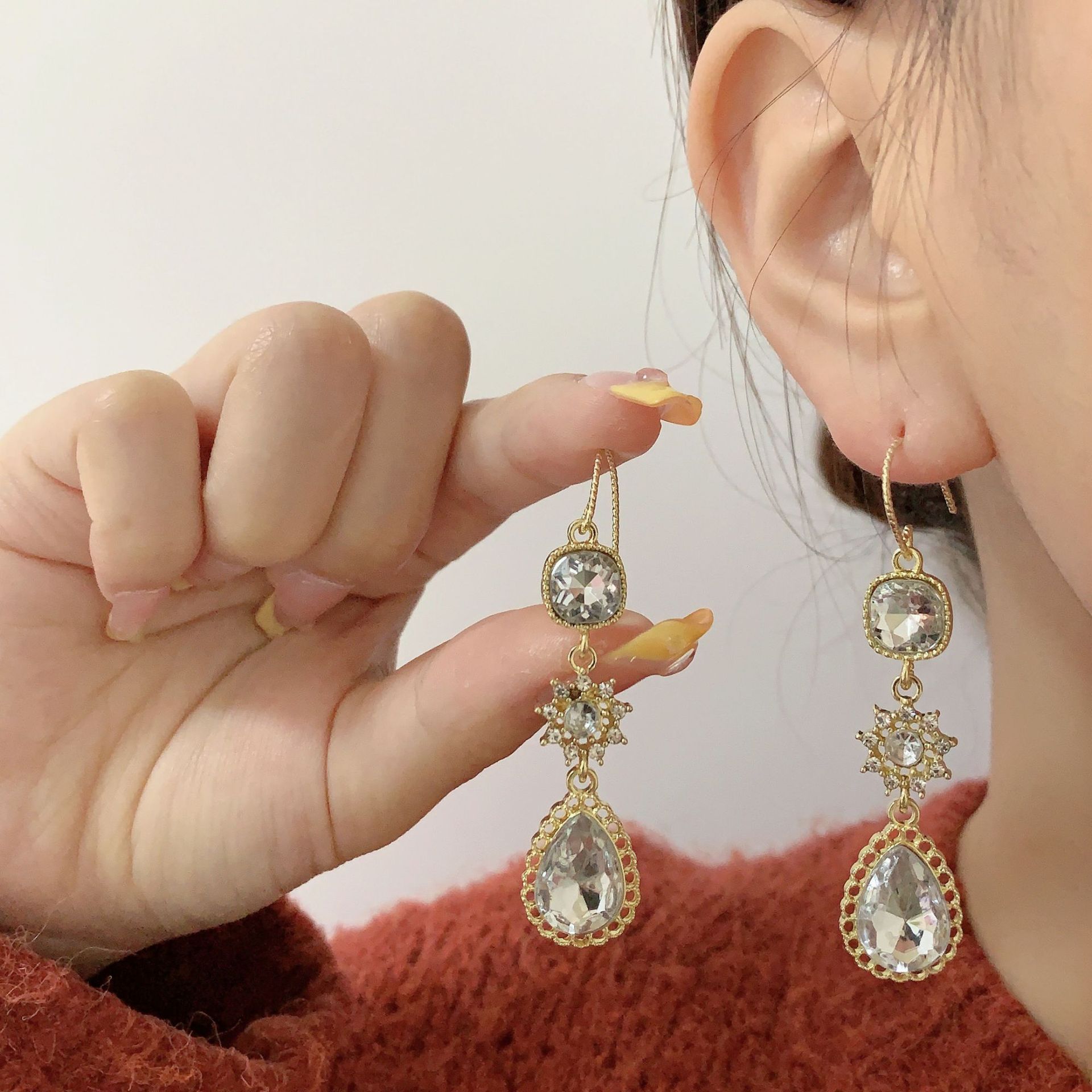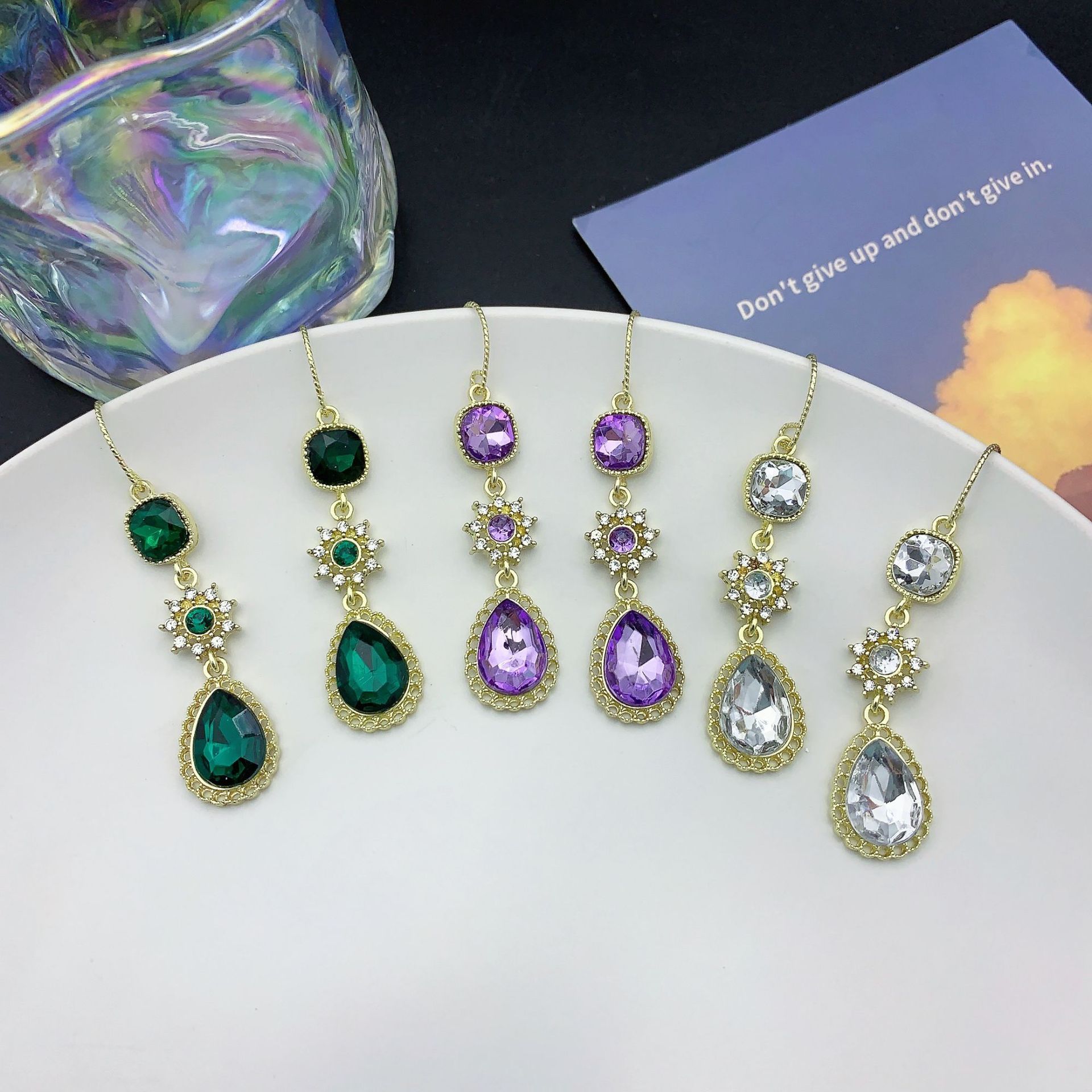 绿色宫廷风复古高级水晶镶钻项链耳环套装感长款流苏耳坠耳环耳饰