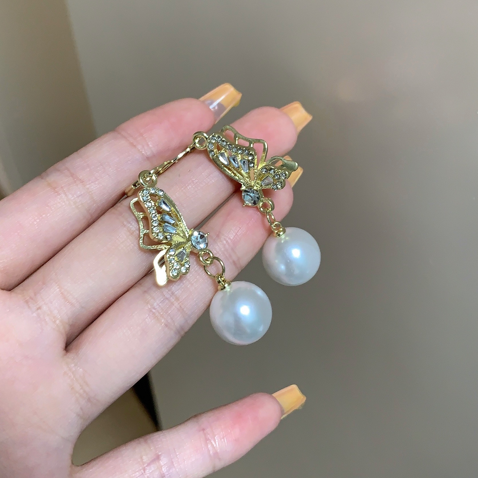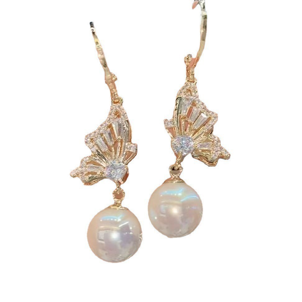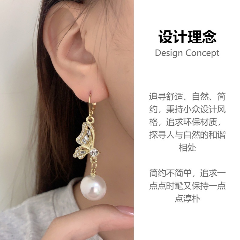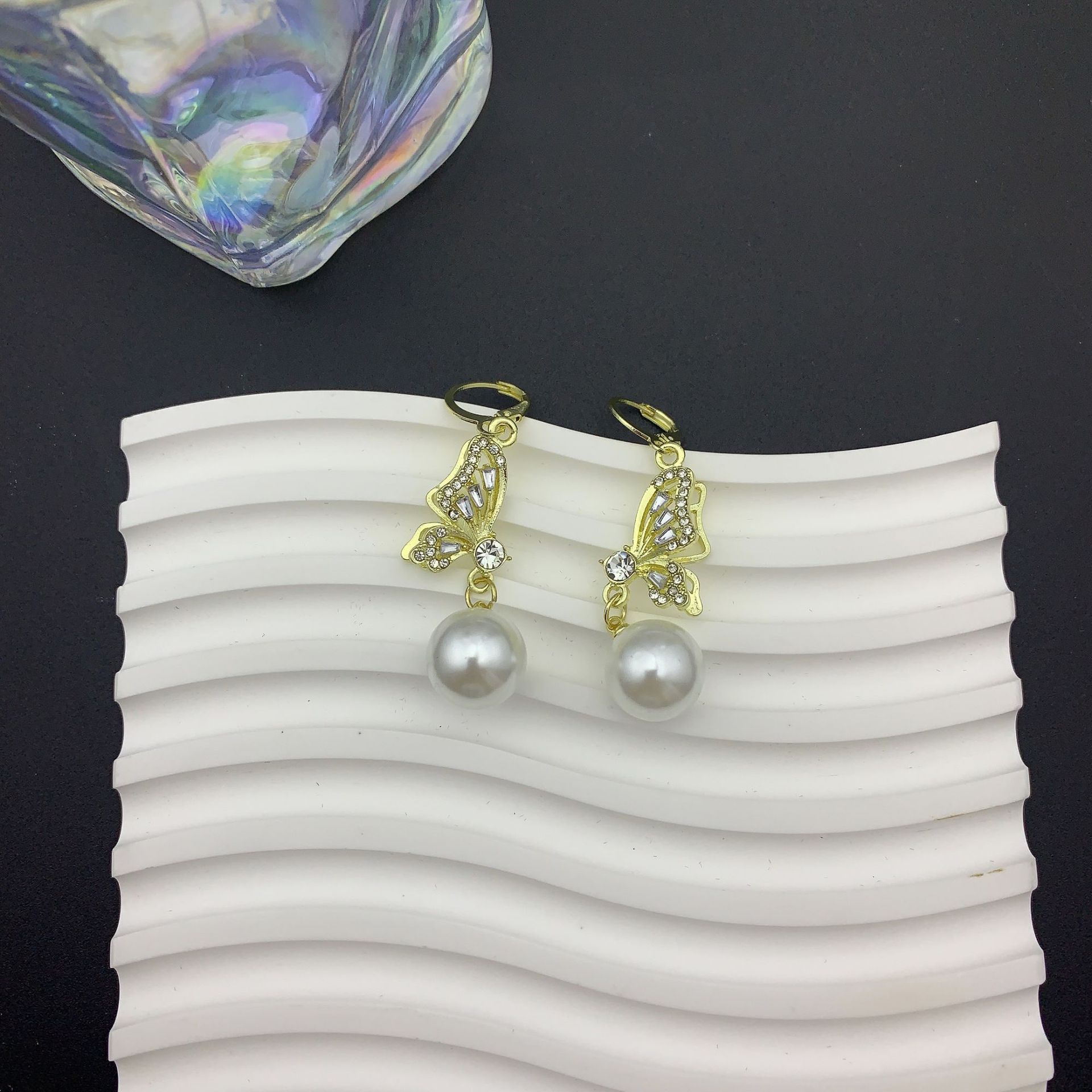 小众设计2024年新款潮复古波西米亚轻奢高级感镶嵌蝴蝶珍珠耳坠女