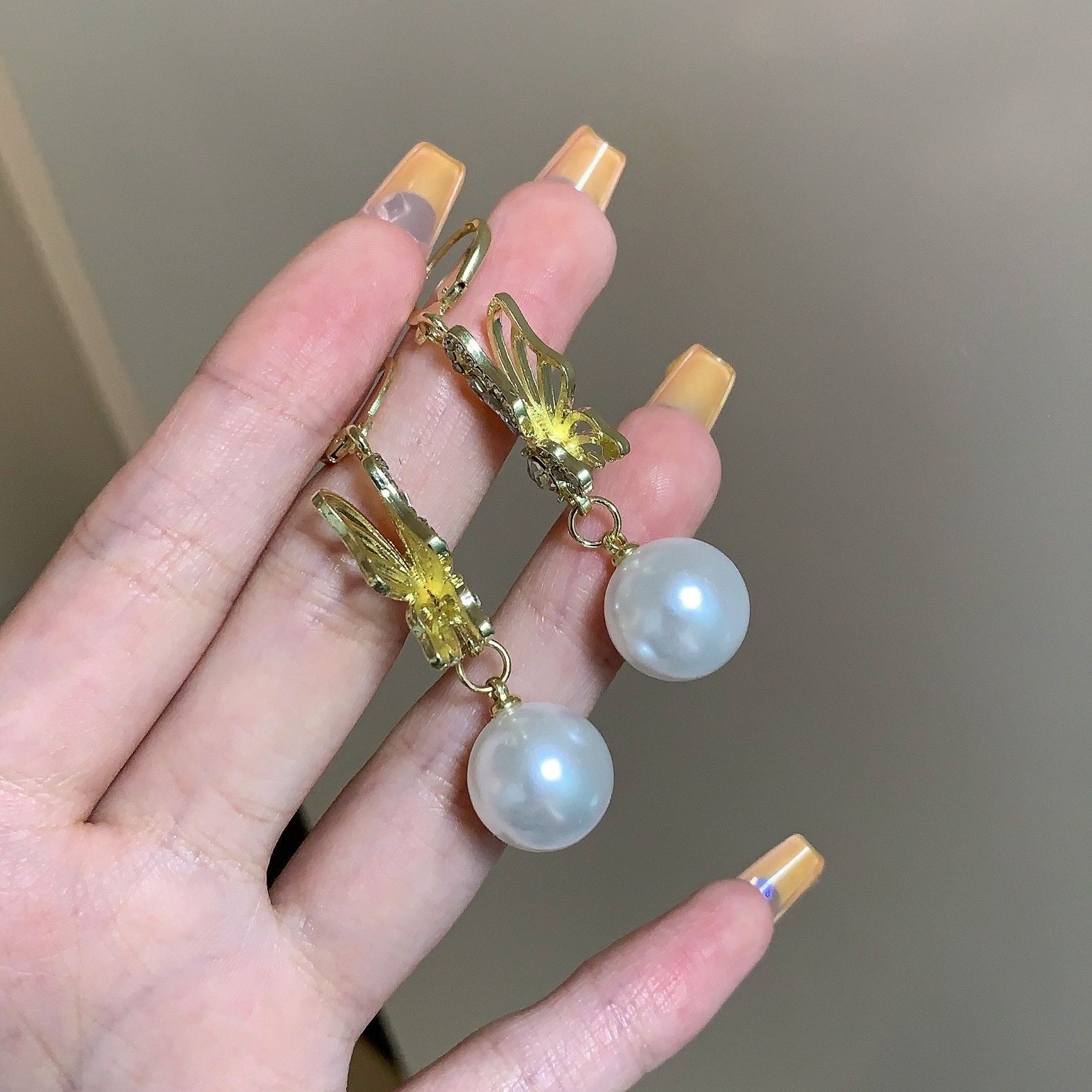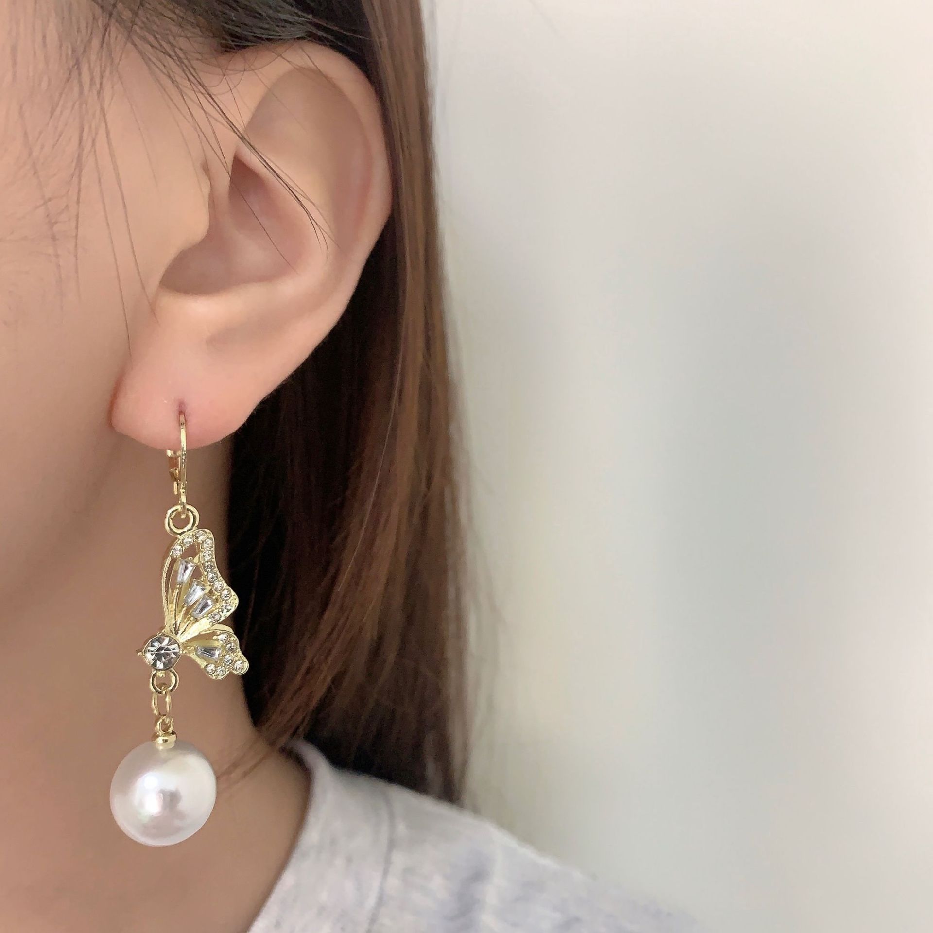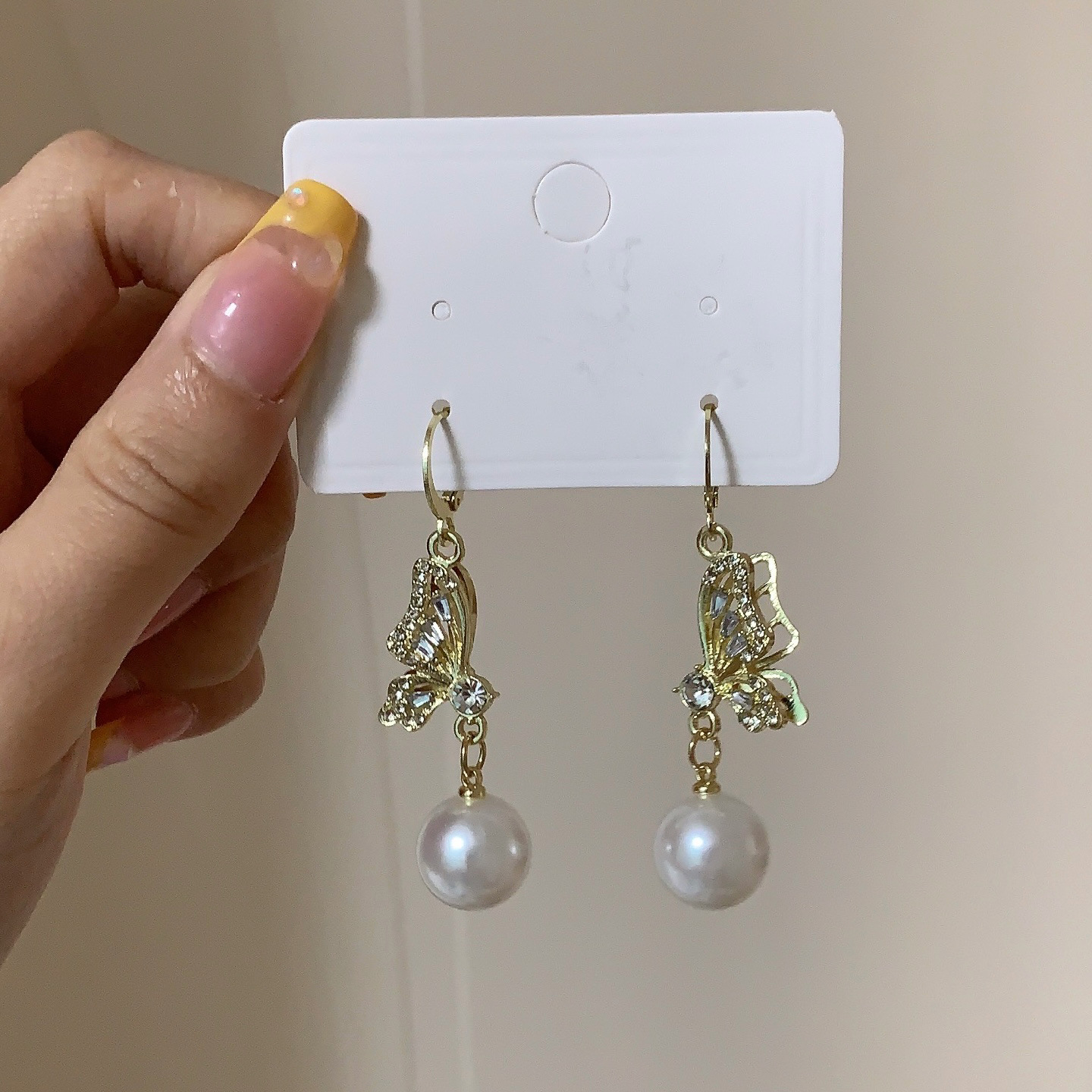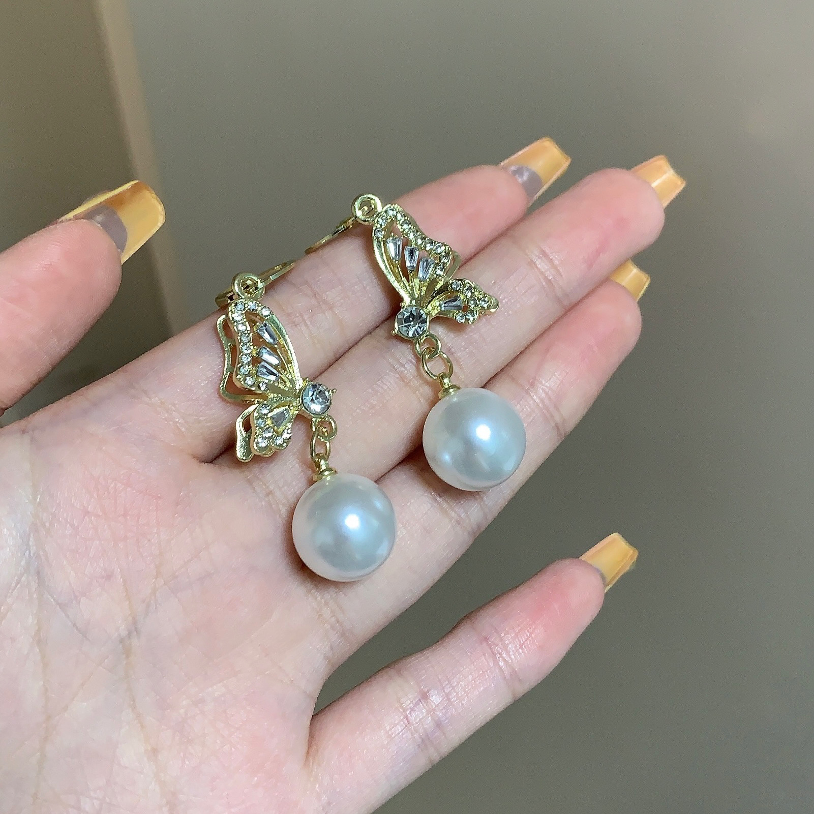 小众设计2024年新款潮复古波西米亚轻奢高级感镶嵌蝴蝶珍珠耳坠女