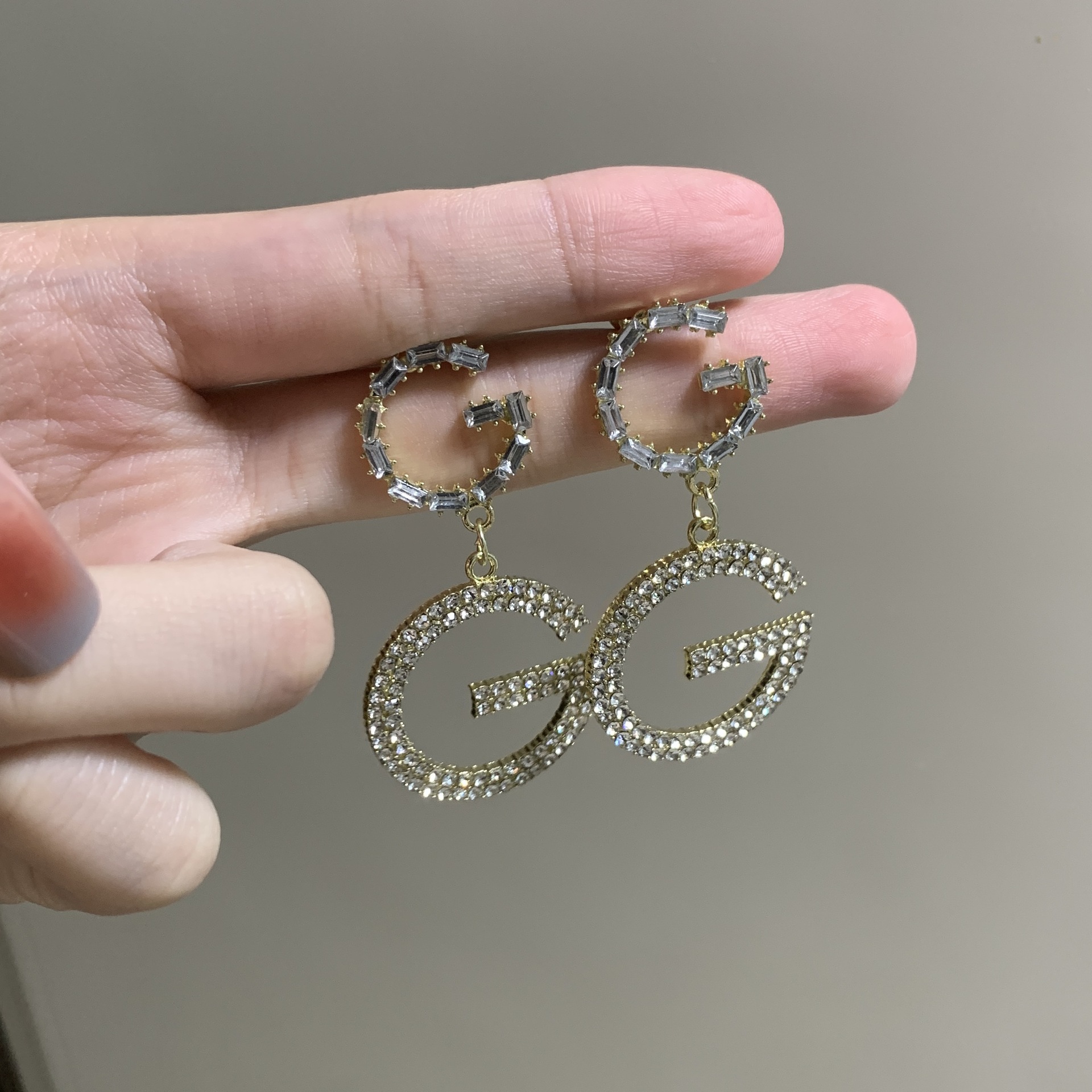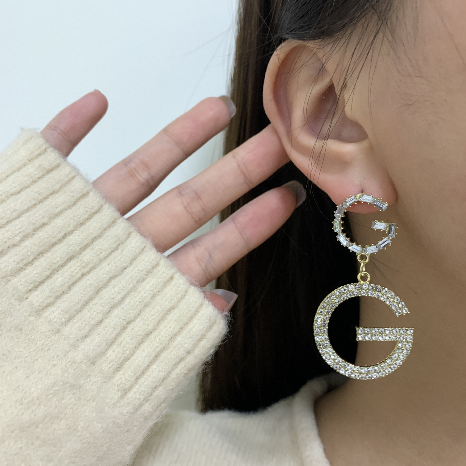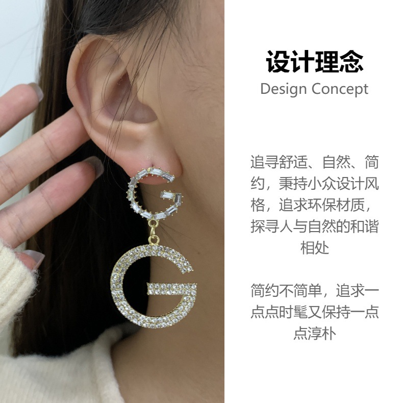 s925银针韩国个性设计感字母双G耳环女新款潮气质网红耳钉耳饰品