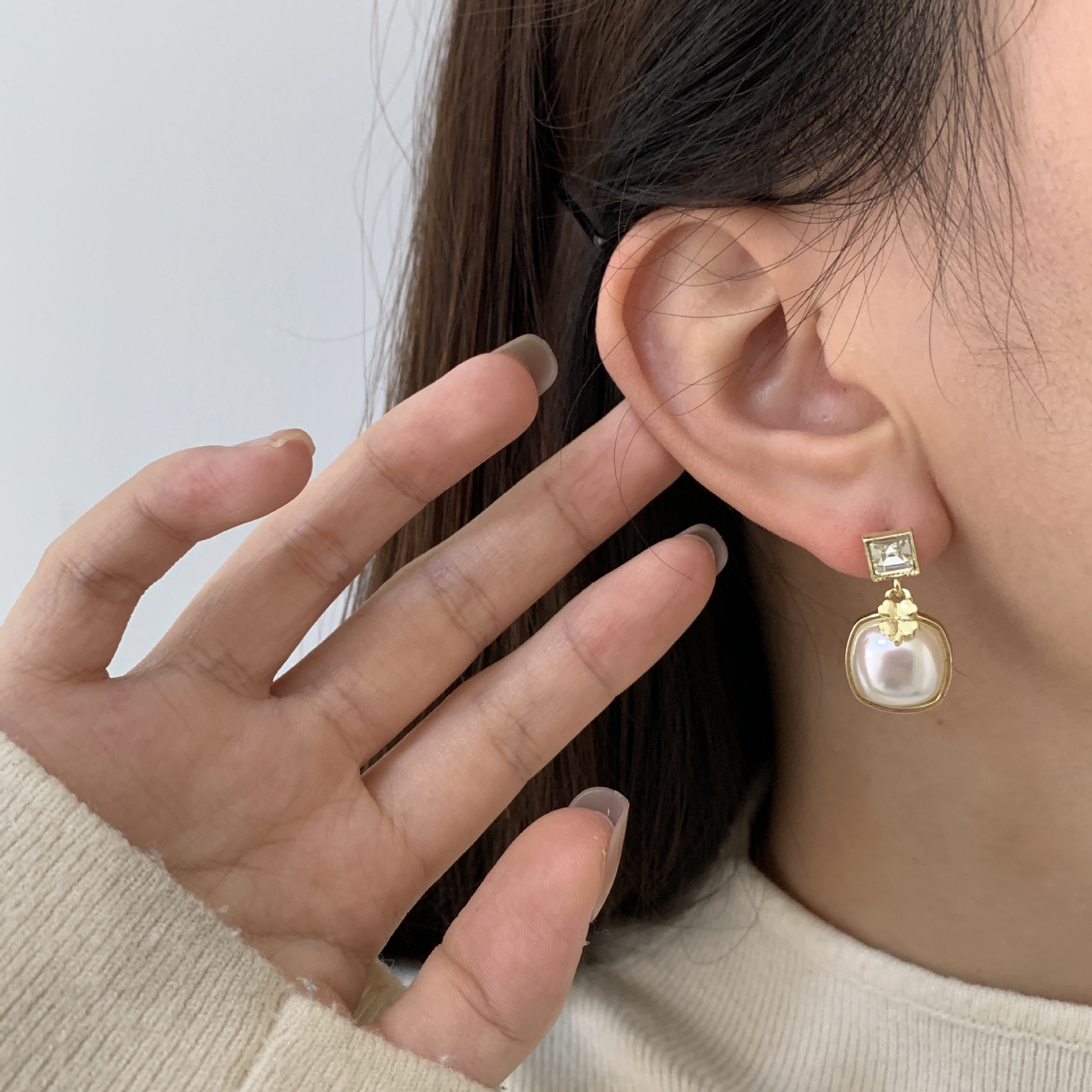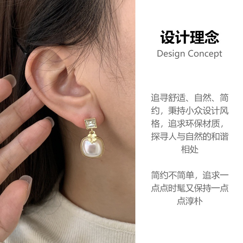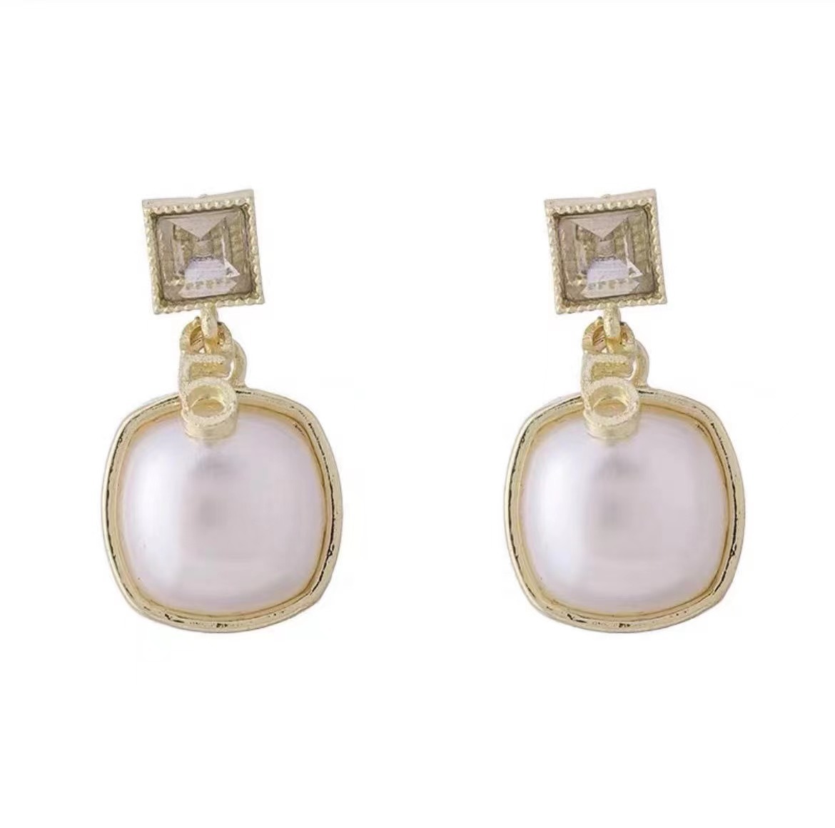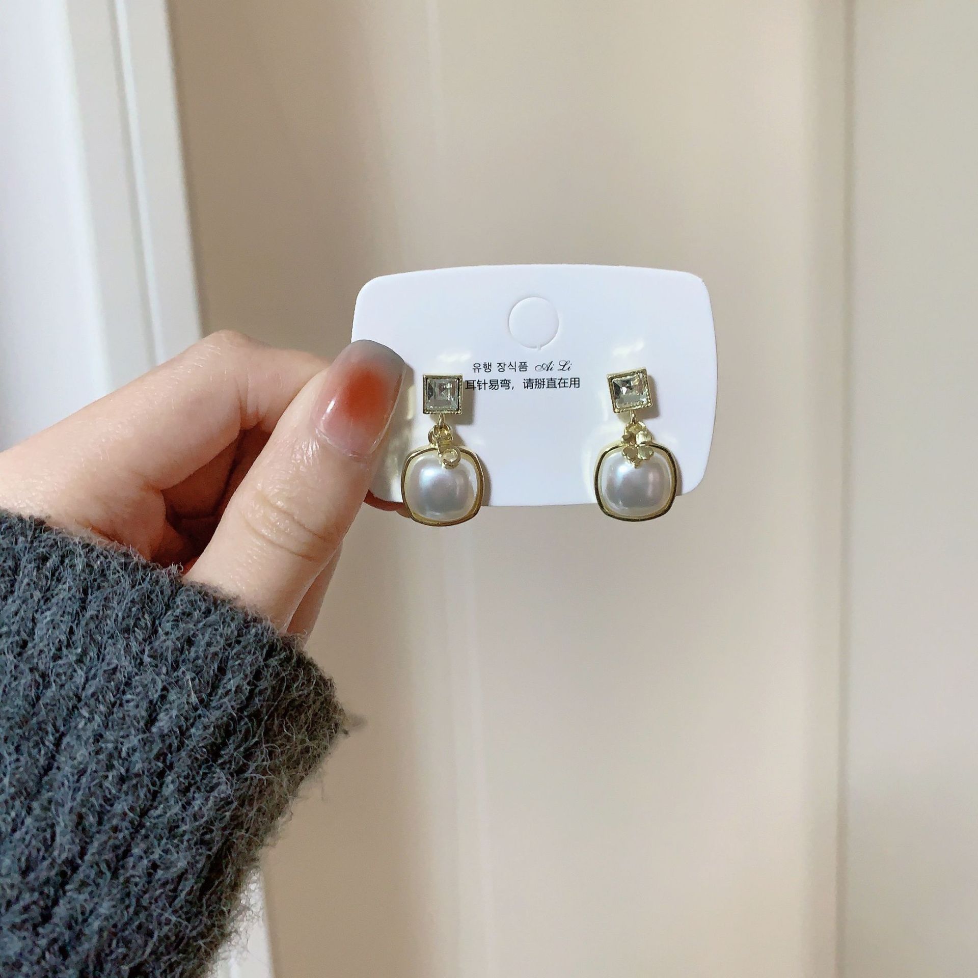 时尚轻奢高级感耳饰女风吹半夏明星同款耳钉珍珠锆石方形数字耳环