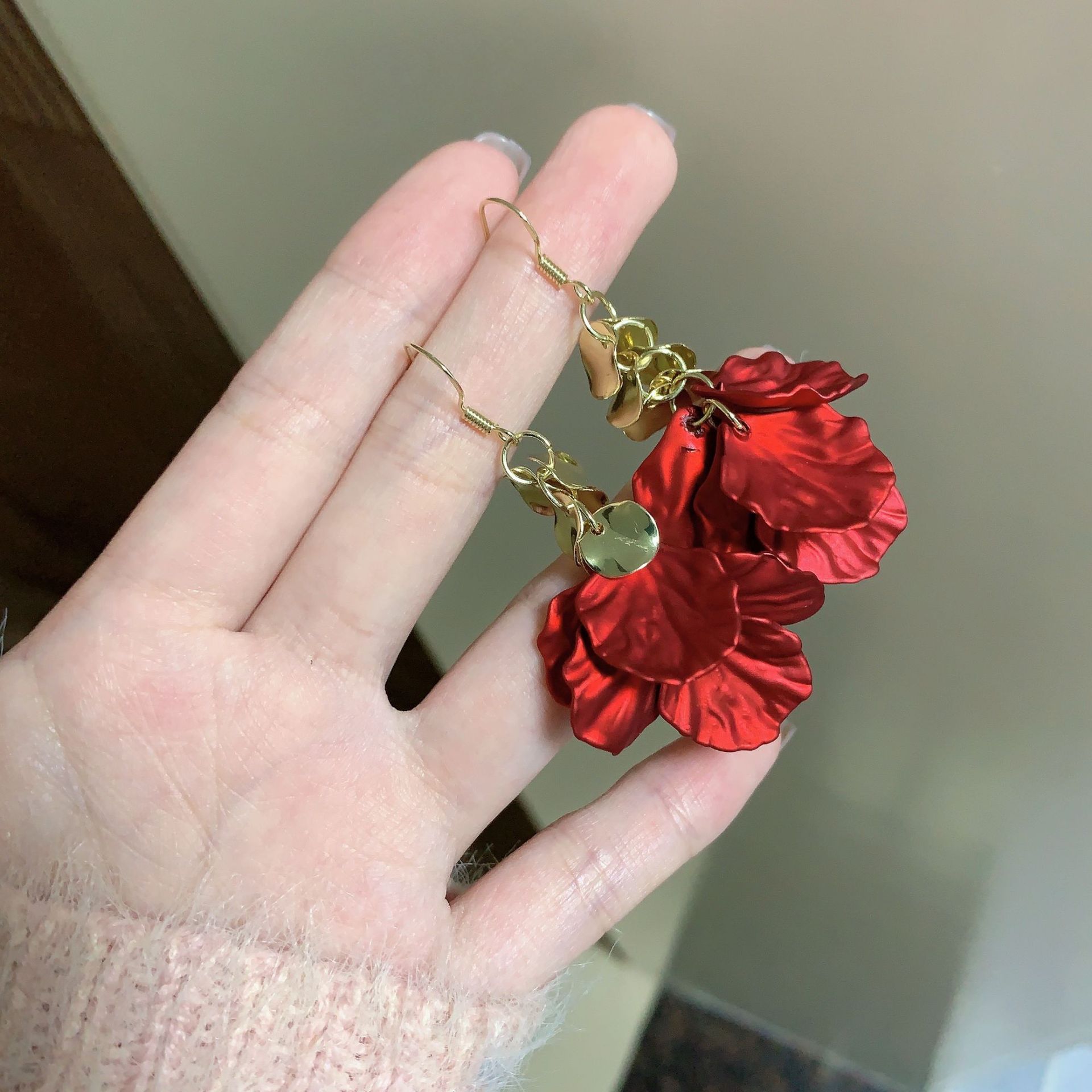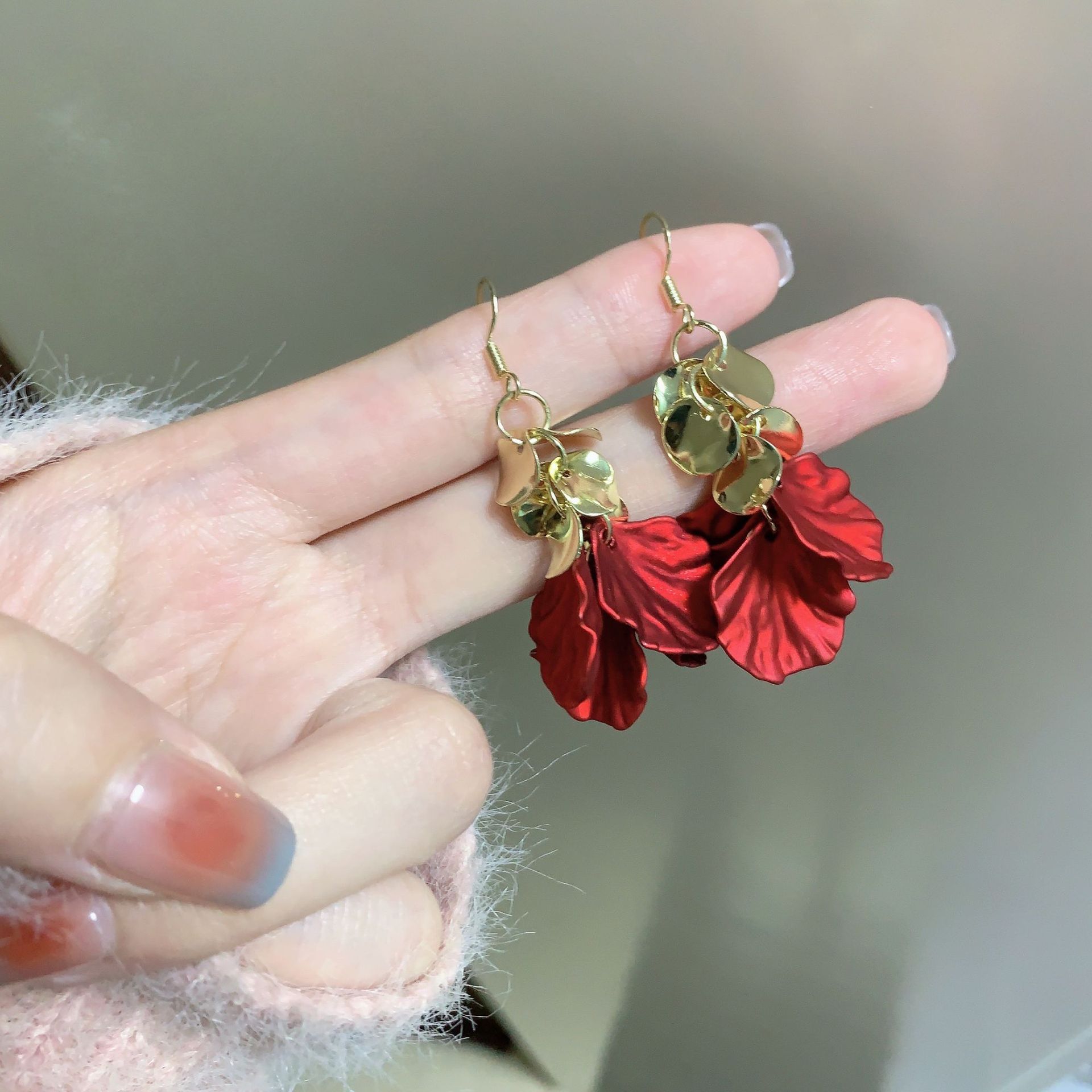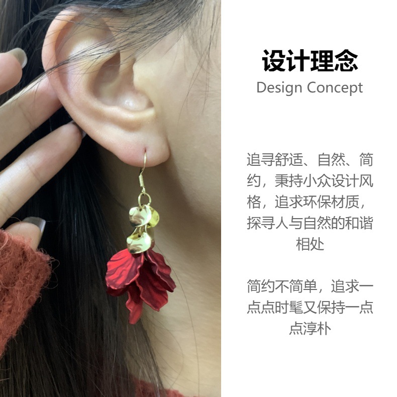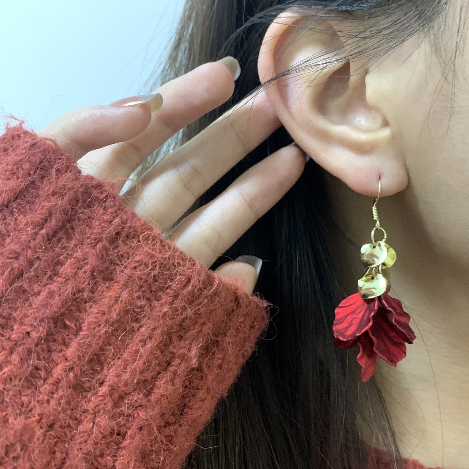 复古红色耳环花瓣耳钉女气质时尚创意简约耳钩小众设计感耳环耳饰