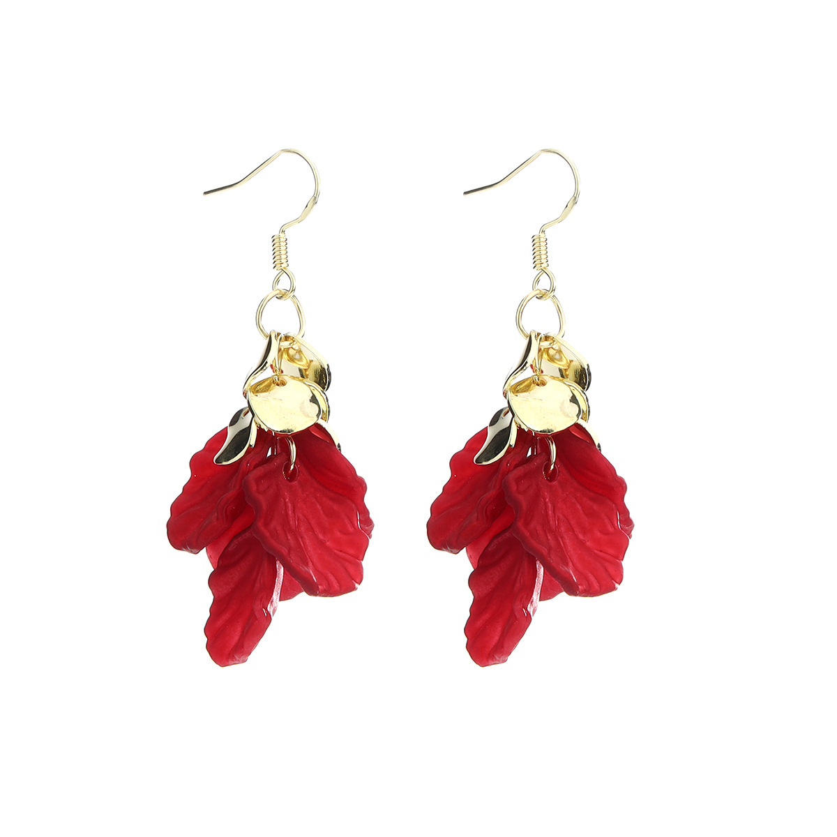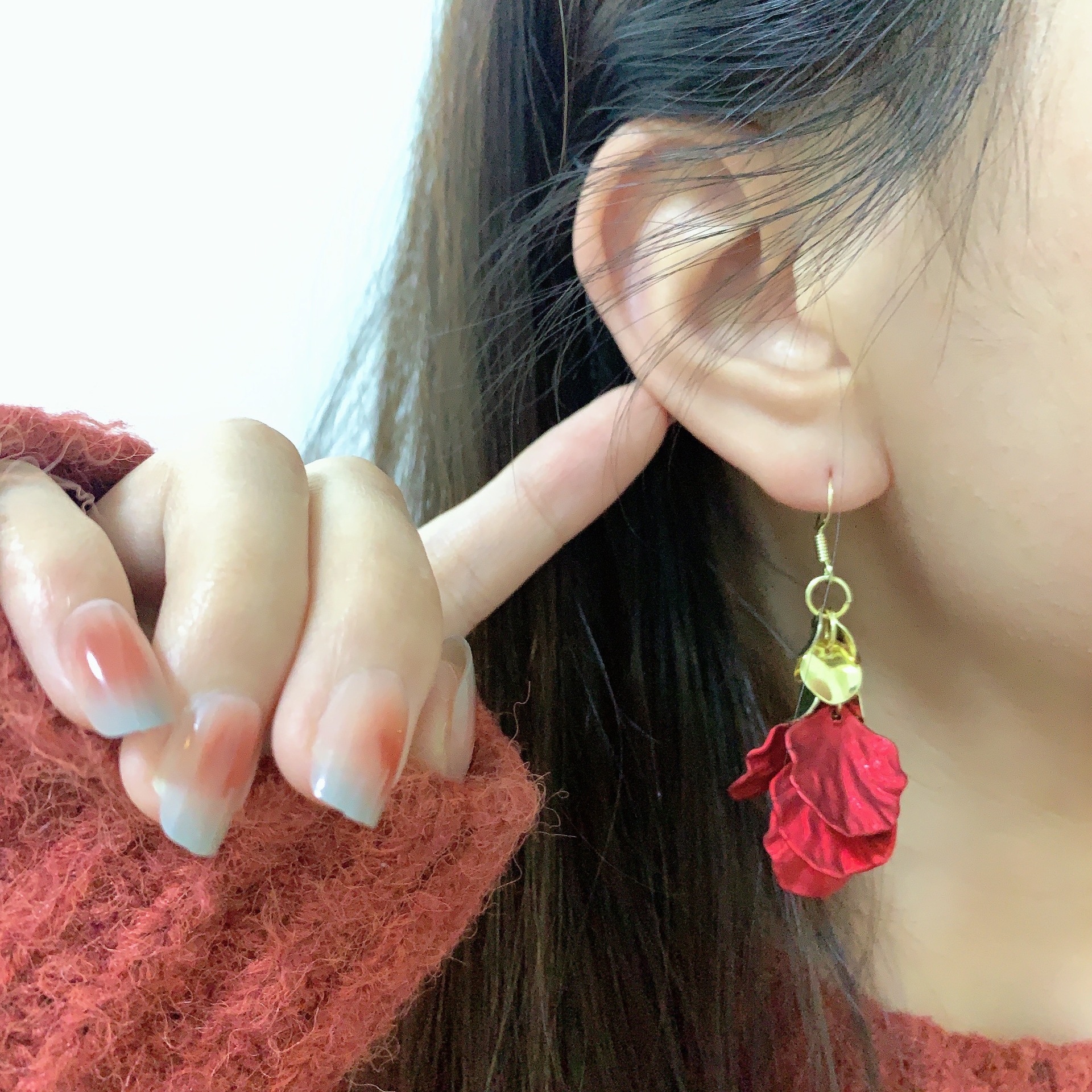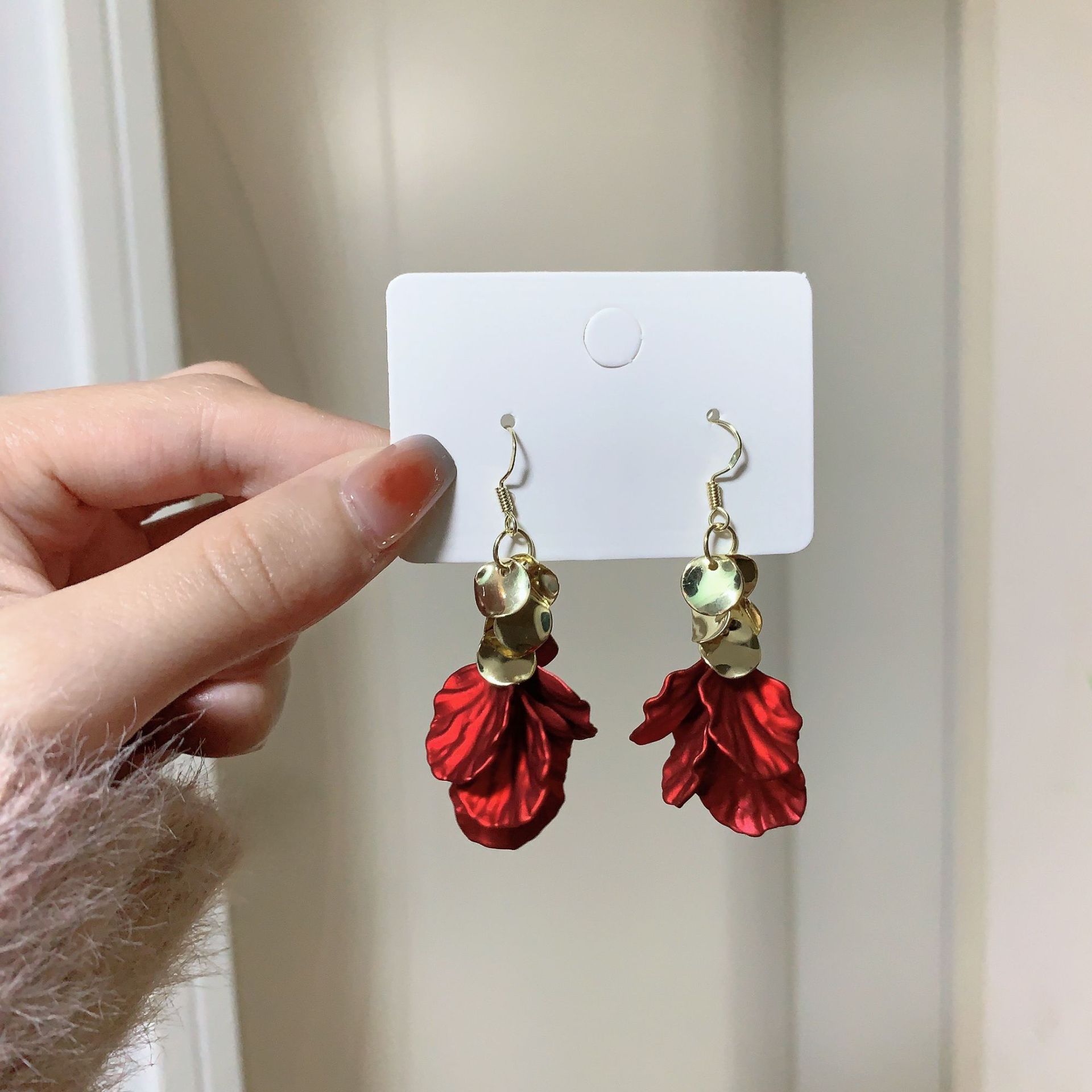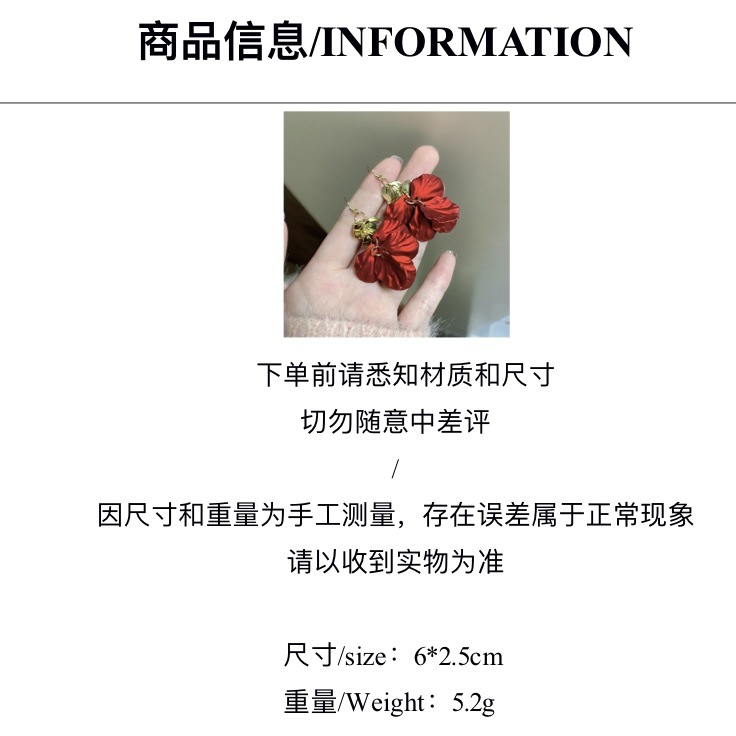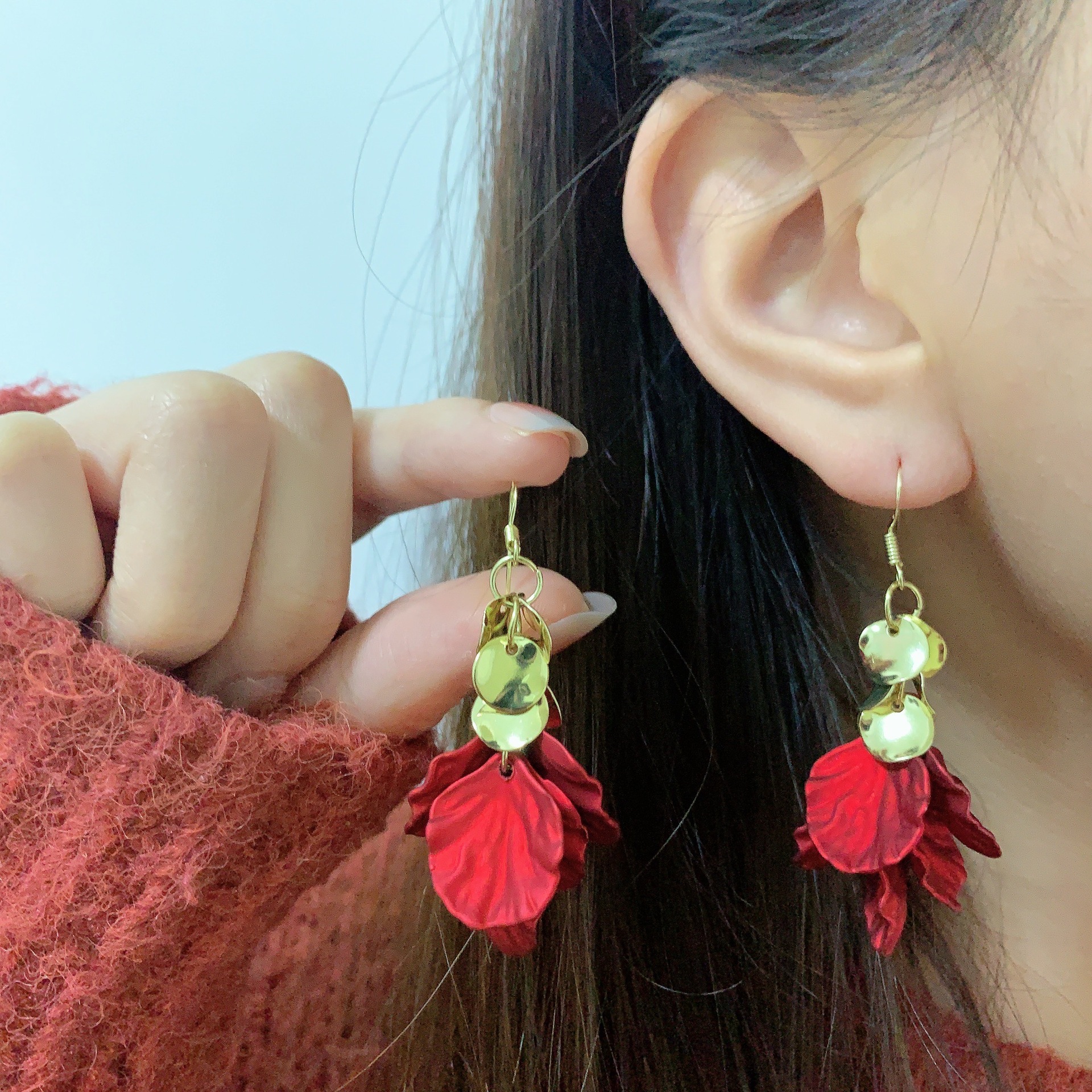 复古红色耳环花瓣耳钉女气质时尚创意简约耳钩小众设计感耳环耳饰