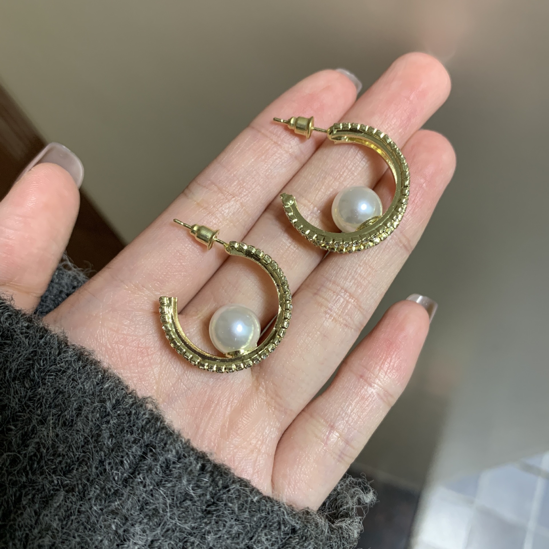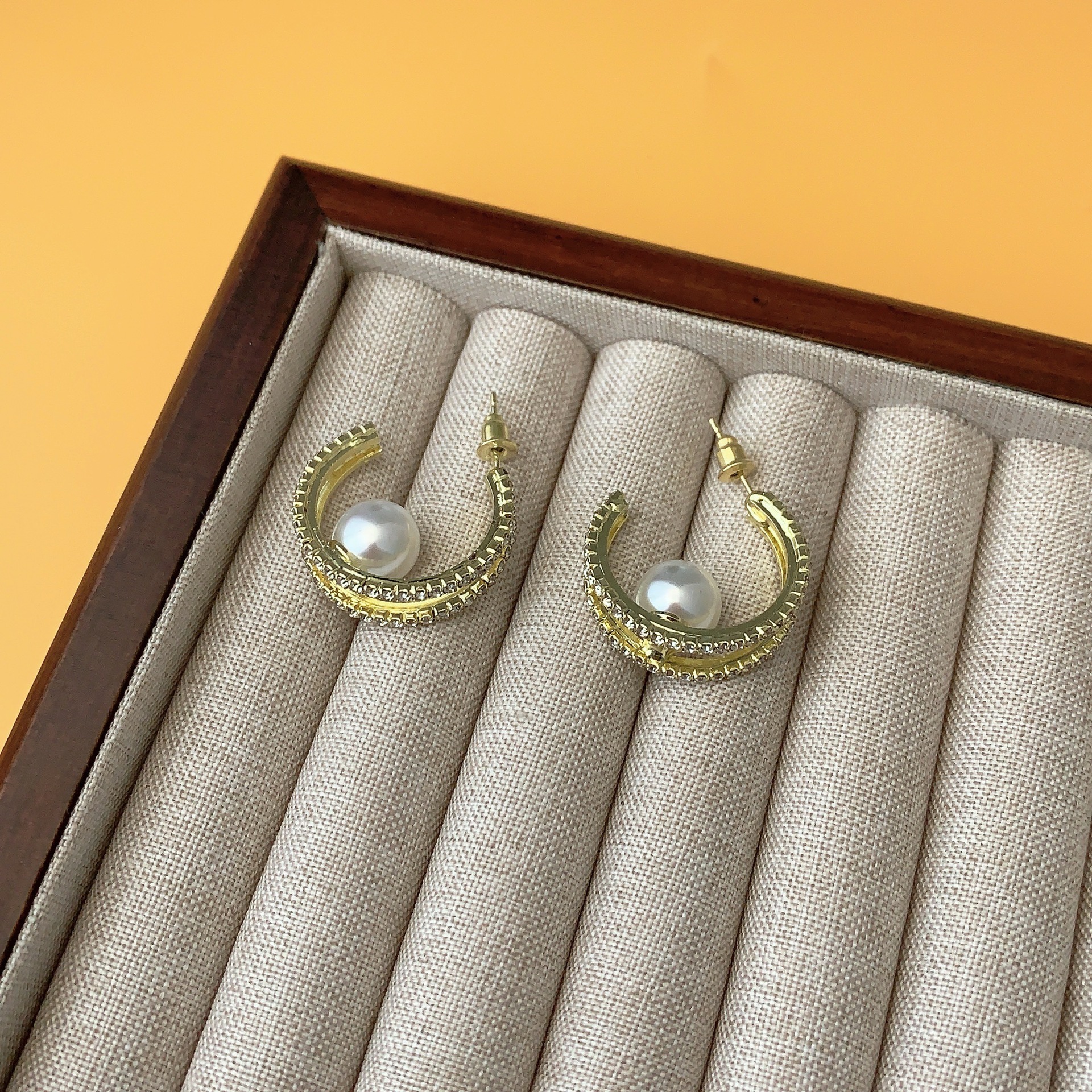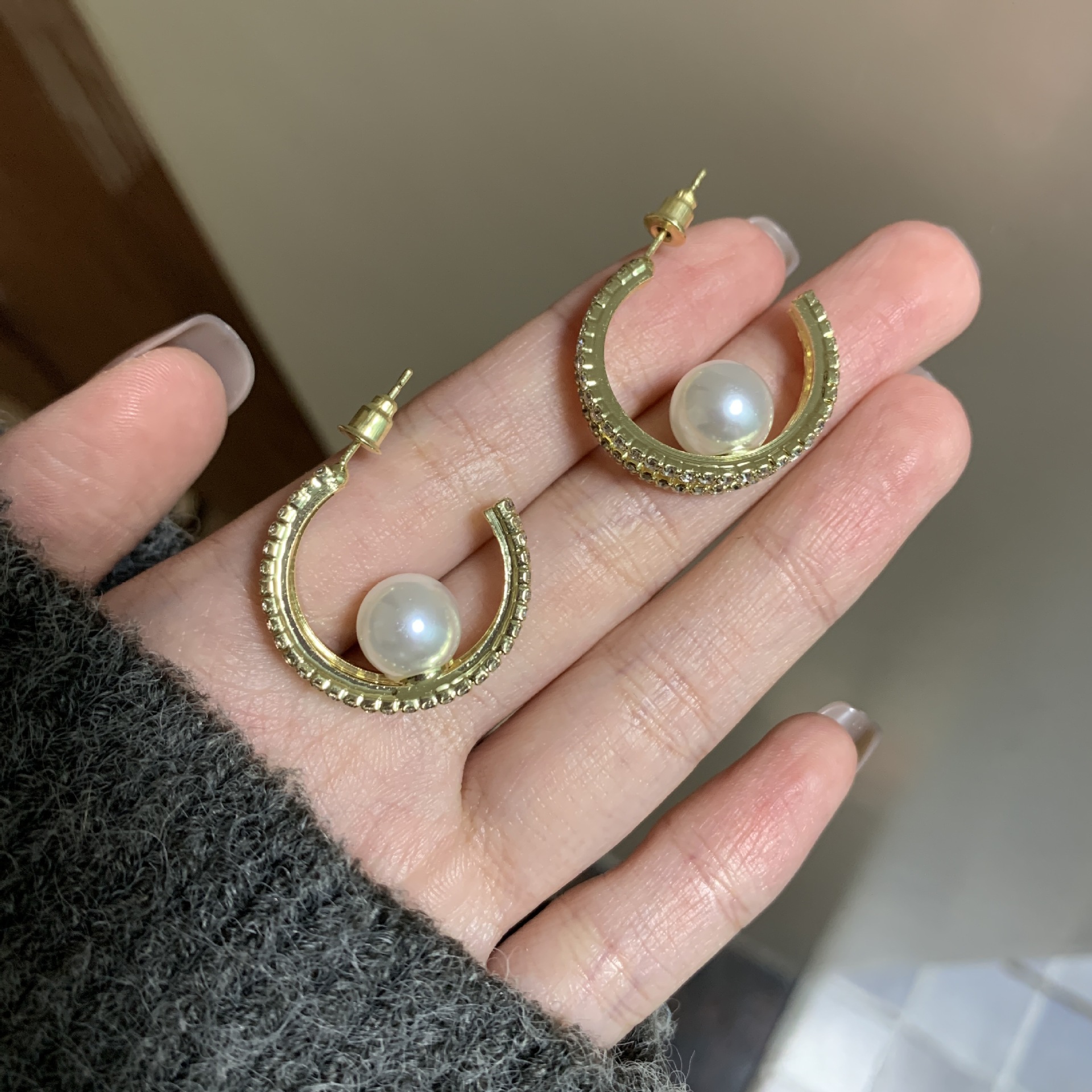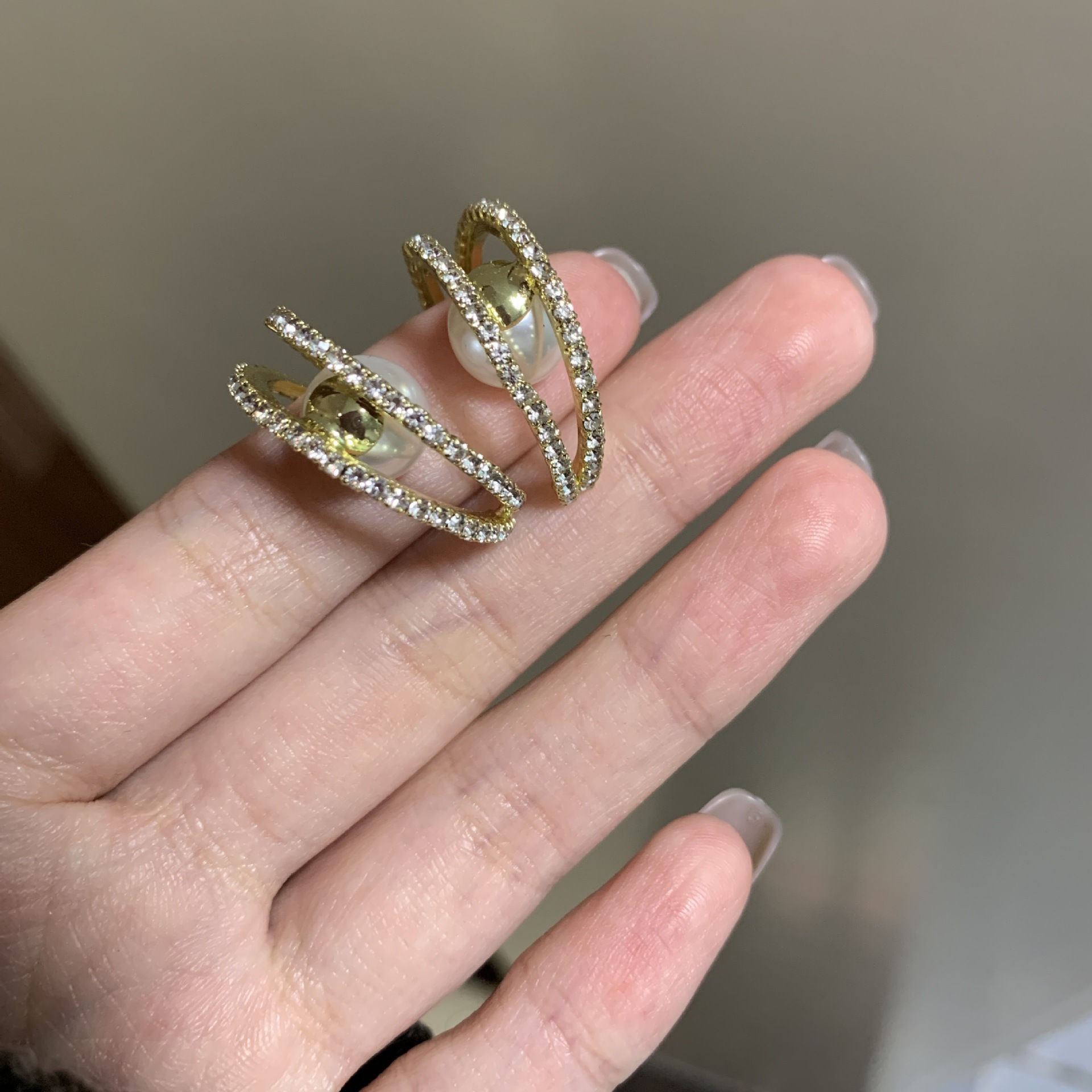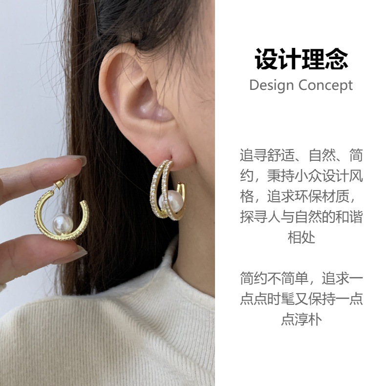 轻奢高级感耳钉气质双层满钻珍珠耳环耳坠独特洋气感耳钉夸张耳饰