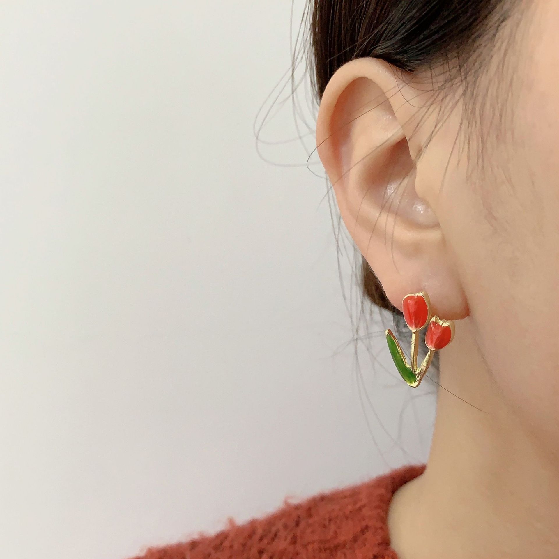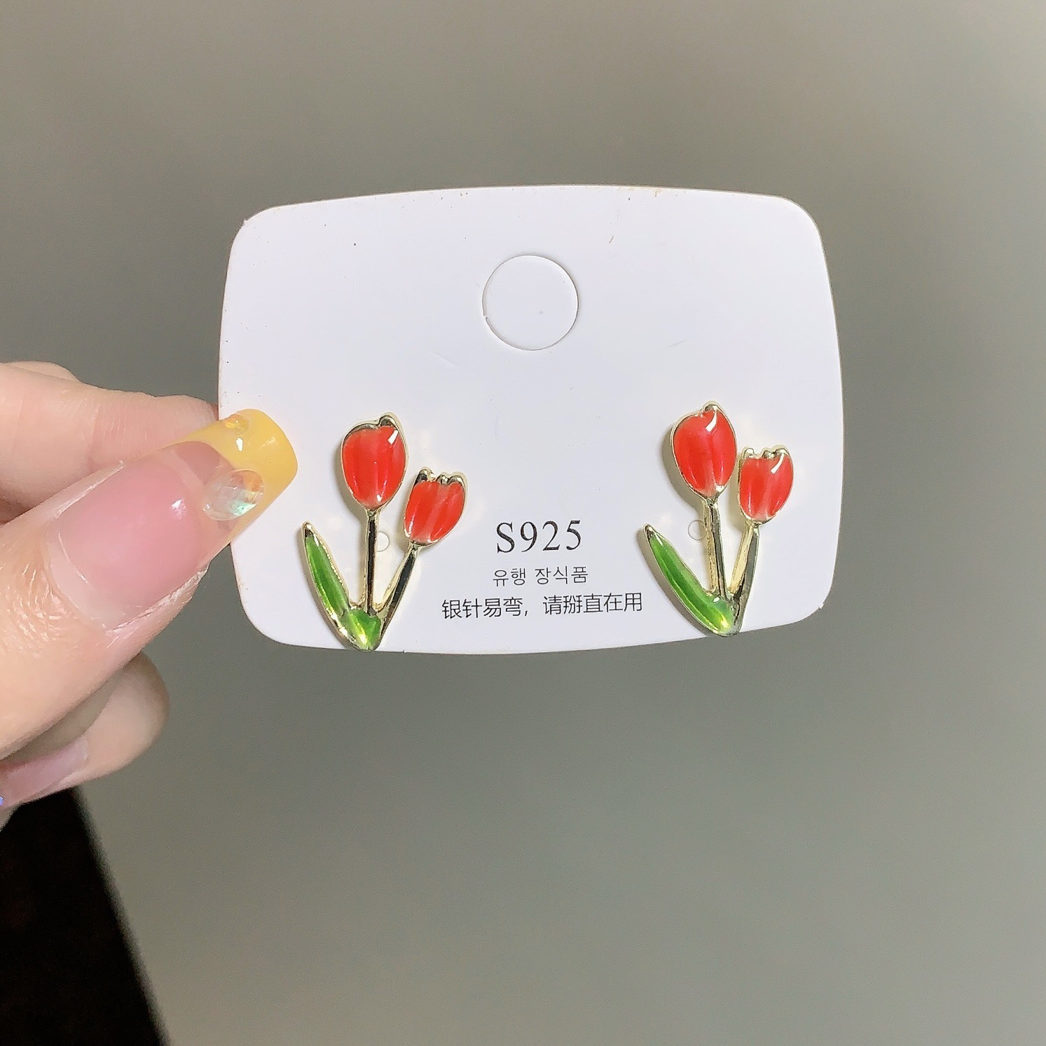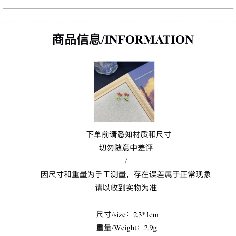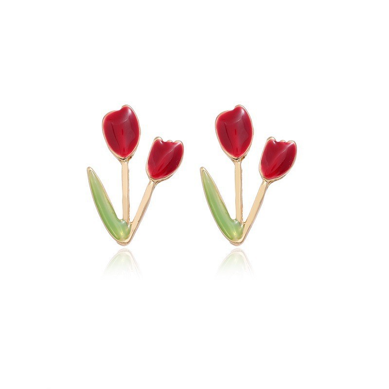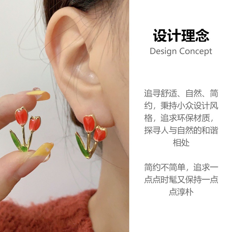 少女心软妹S925银针郁金香耳钉花朵甜美可爱耳环2024新款个性耳饰