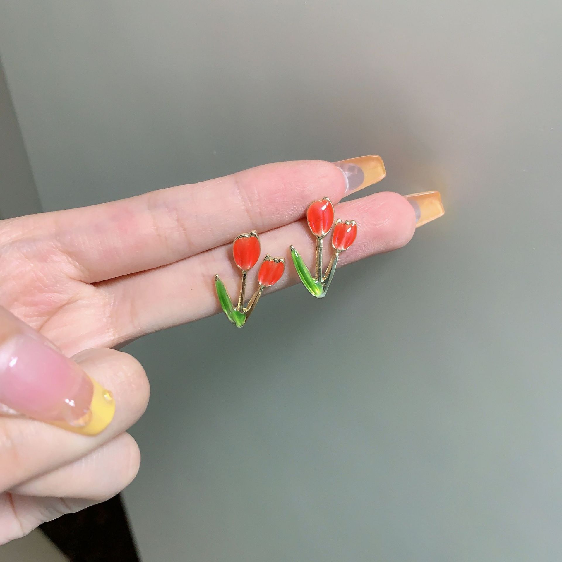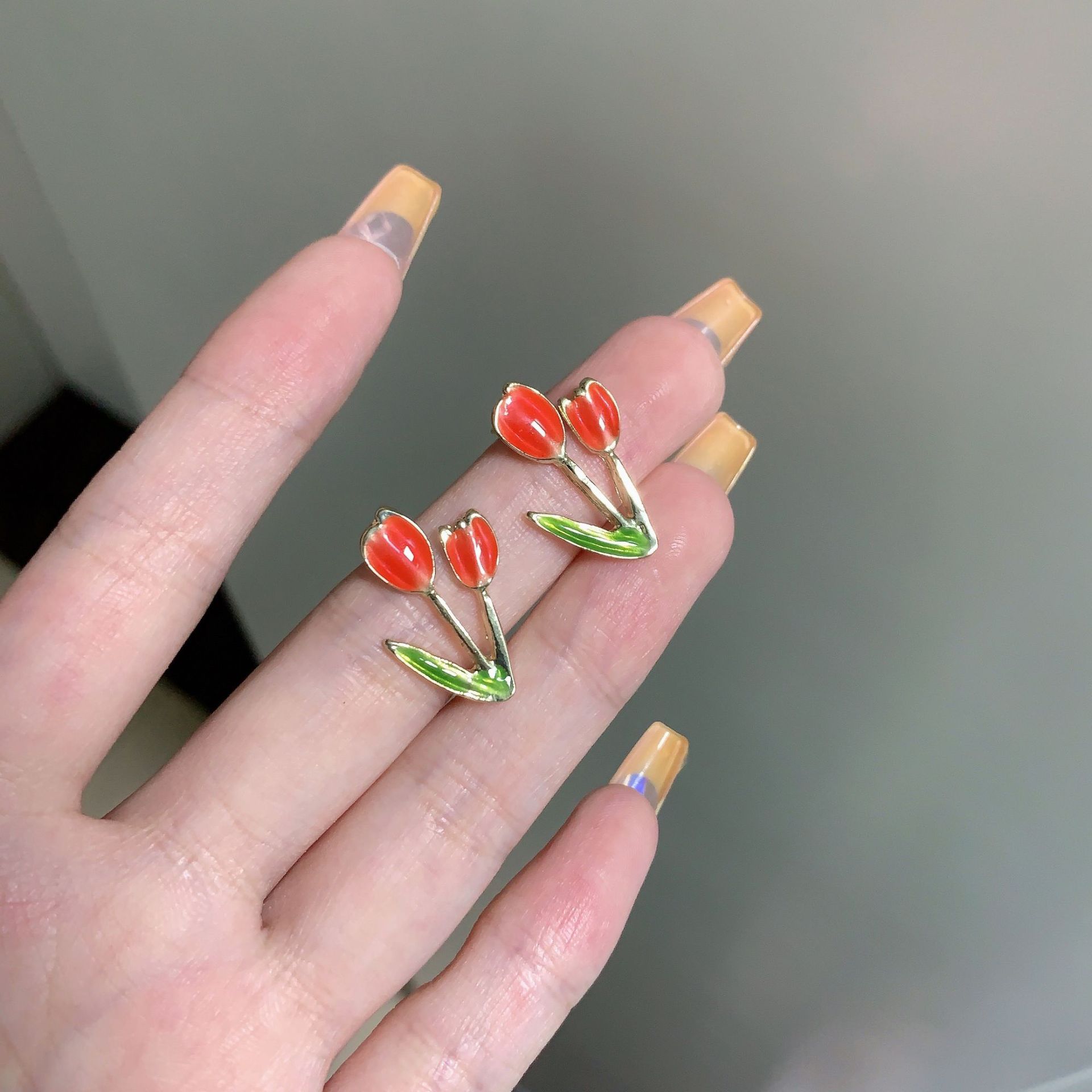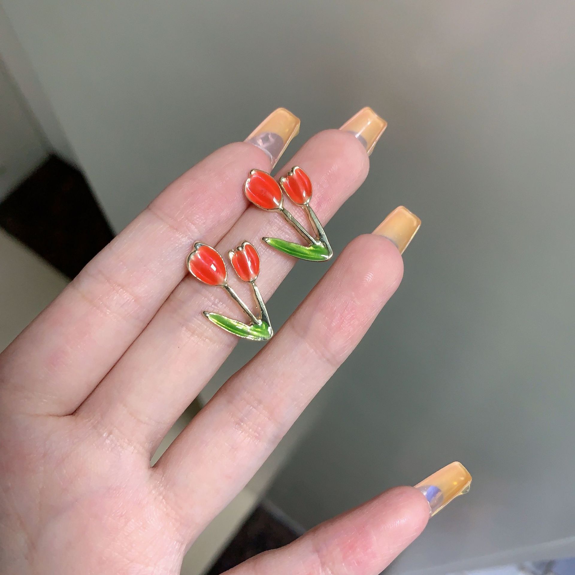 少女心软妹S925银针郁金香耳钉花朵甜美可爱耳环2024新款个性耳饰
