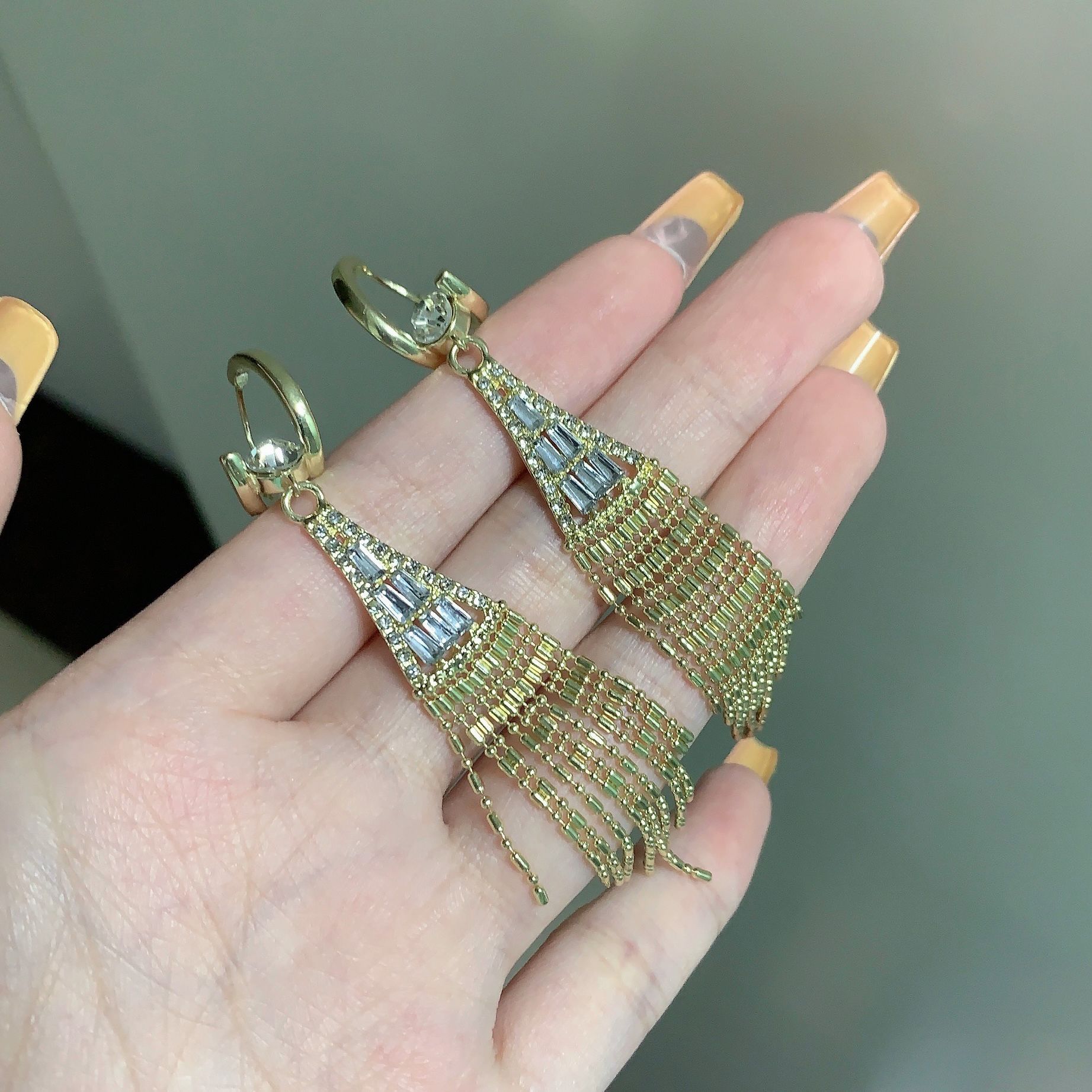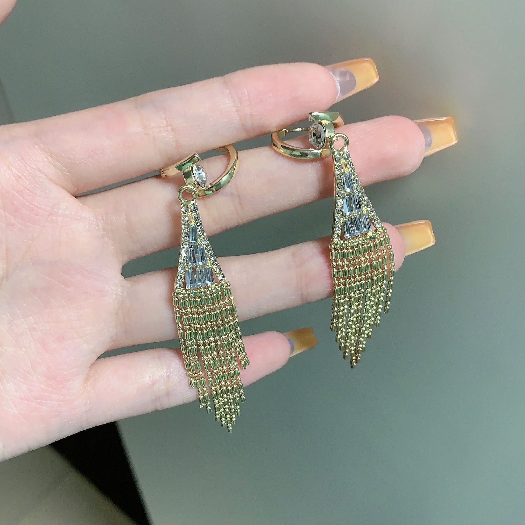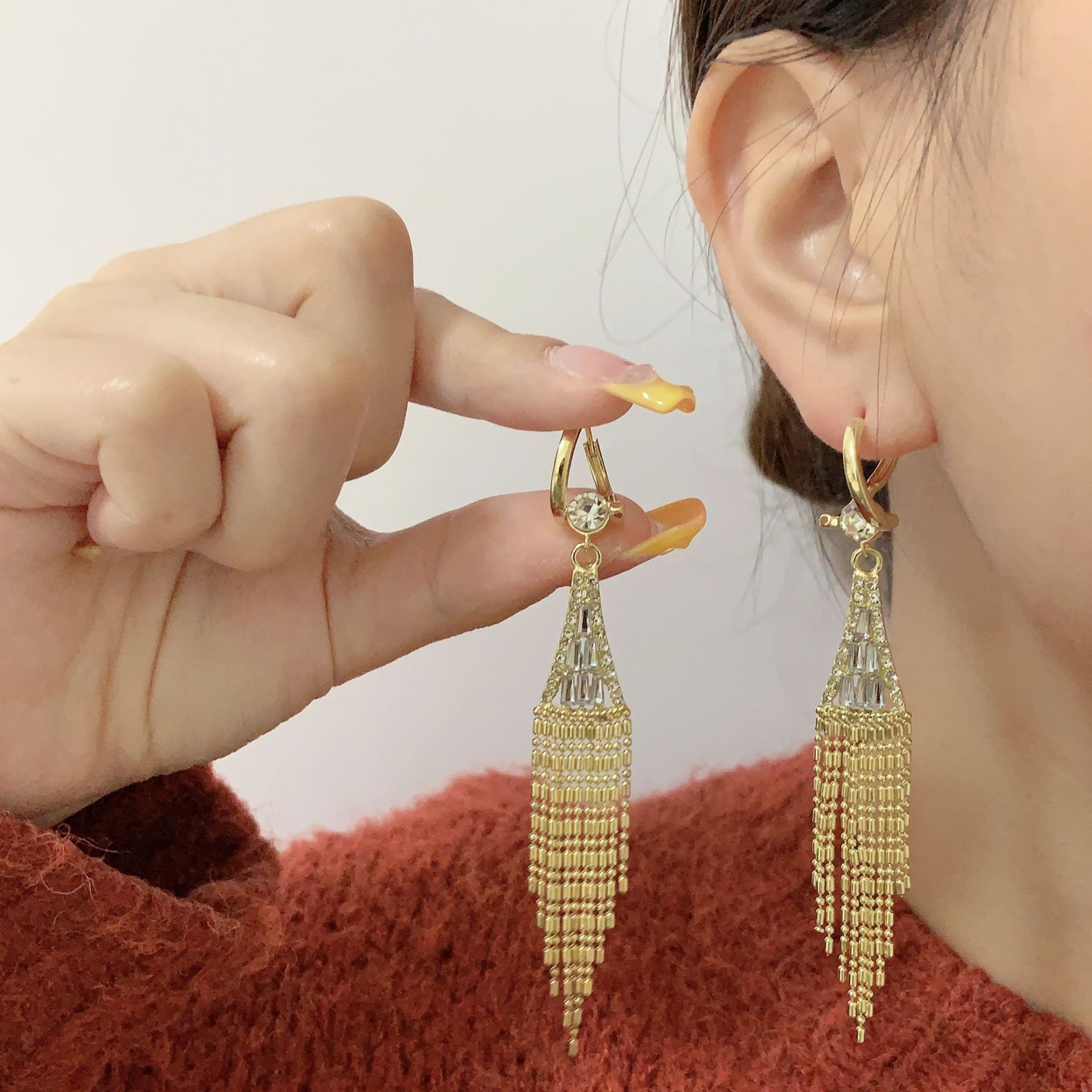 轻奢名媛韩式超闪时尚高级感小众设计耳环气质风满钻长款流苏耳扣