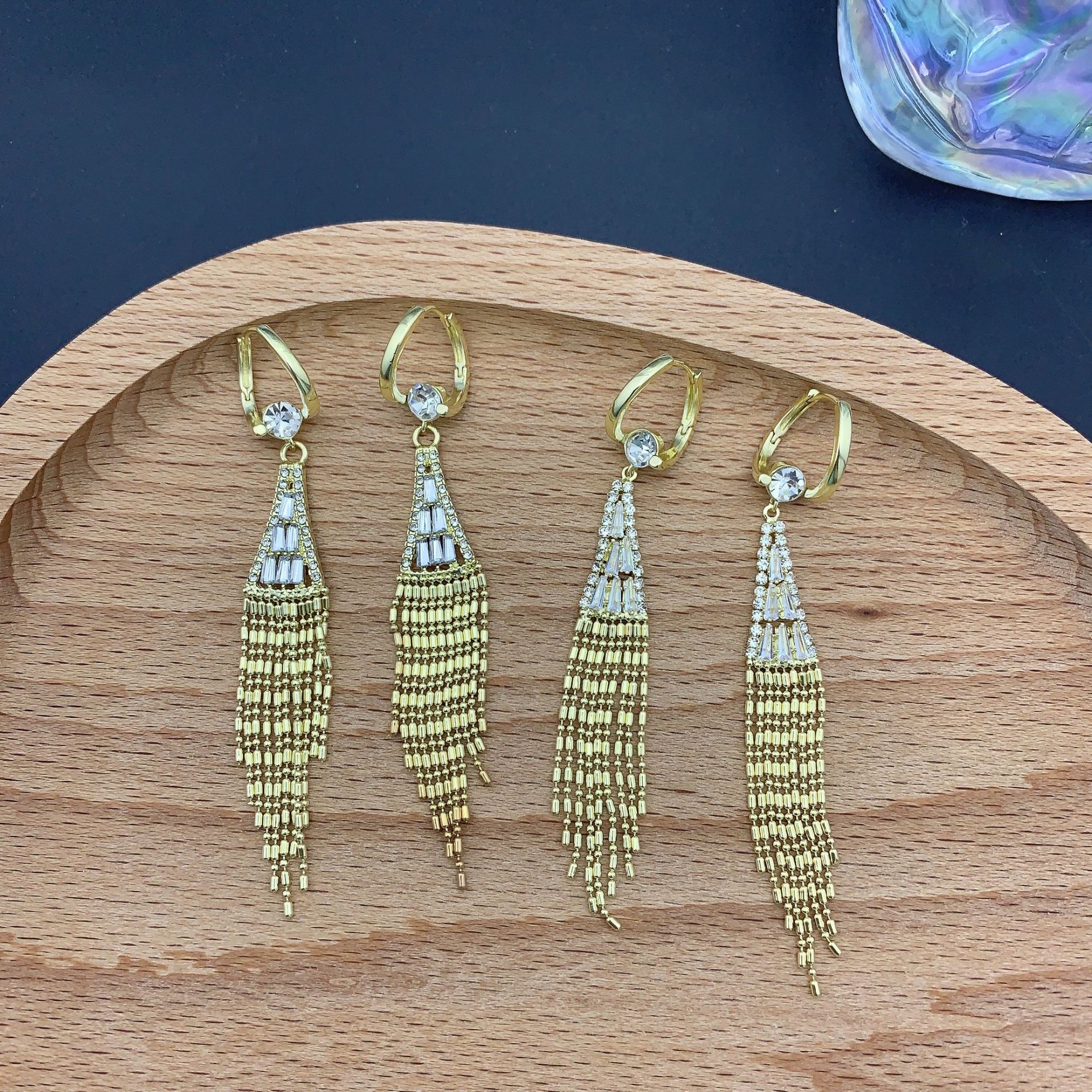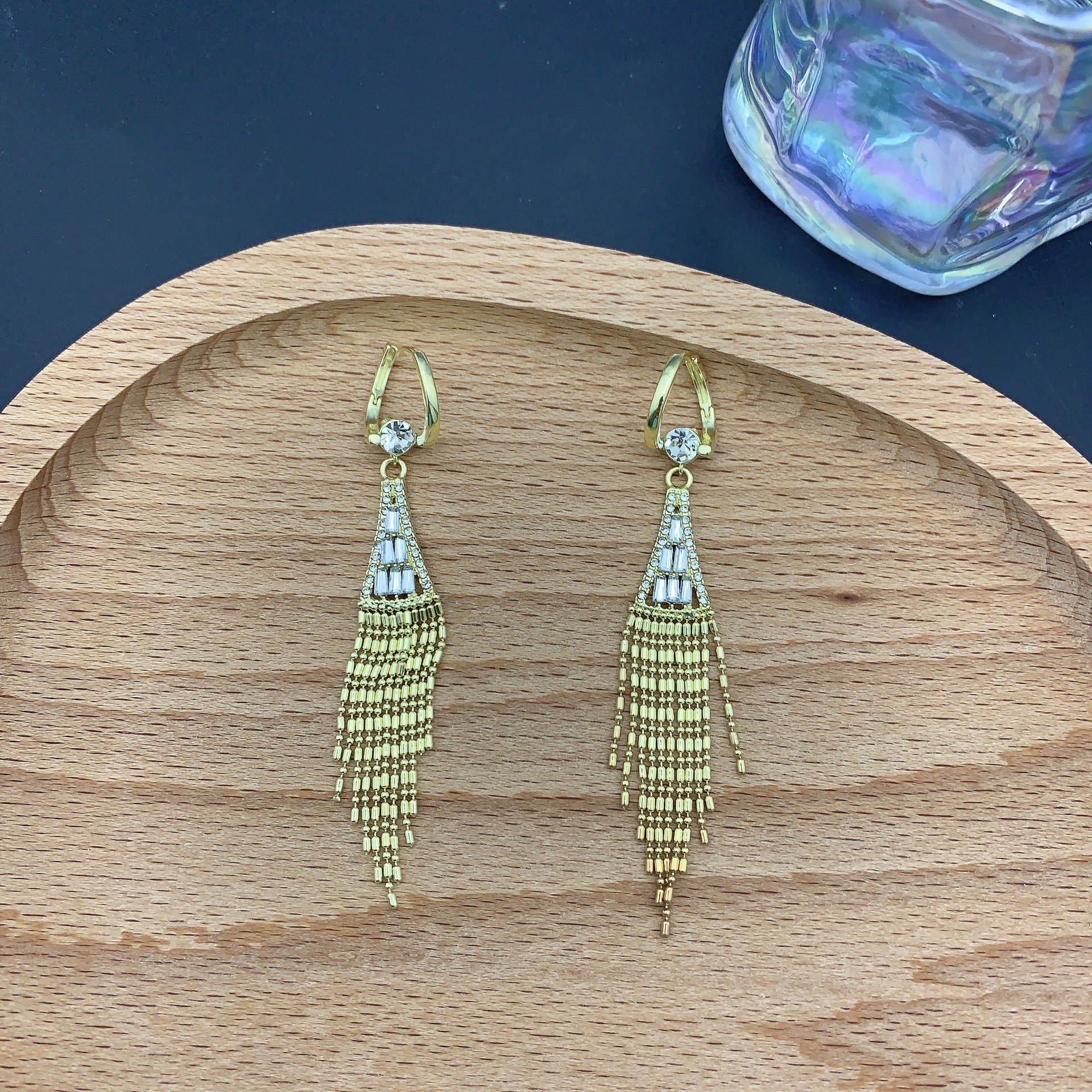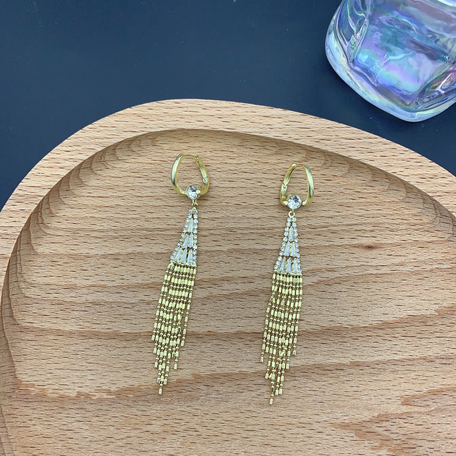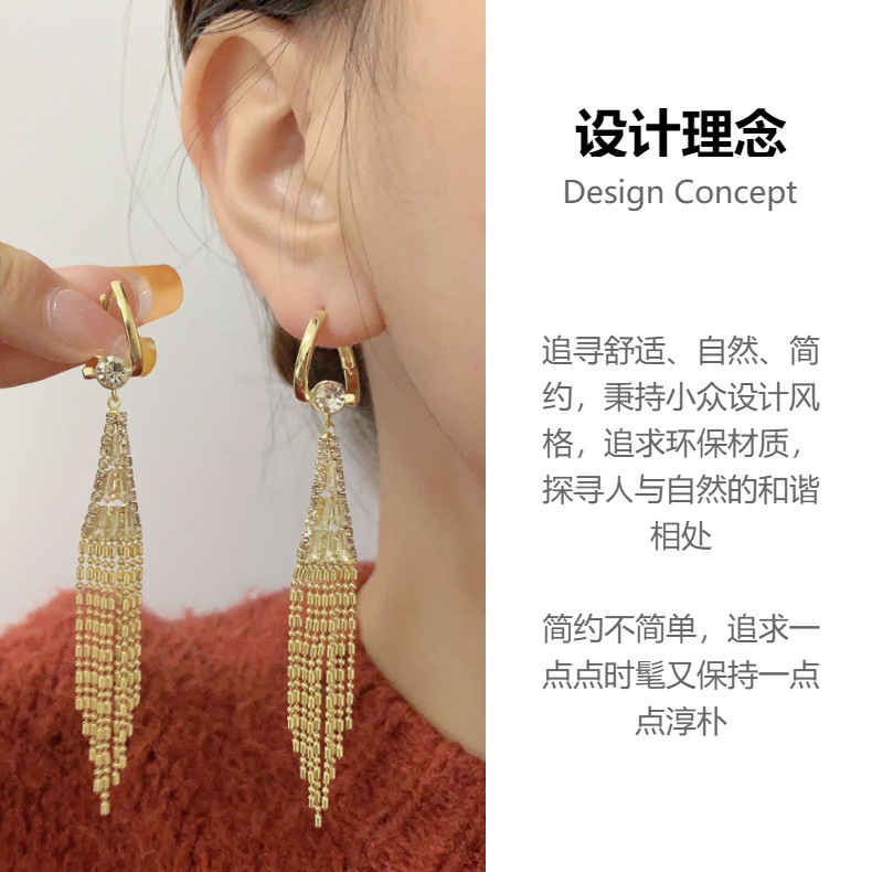 轻奢名媛韩式超闪时尚高级感小众设计耳环气质风满钻长款流苏耳扣