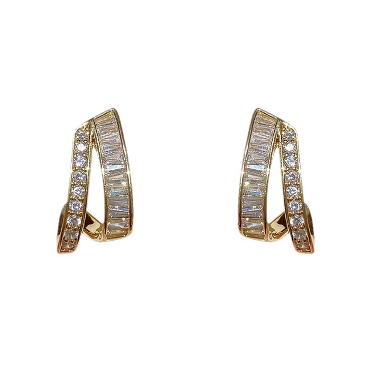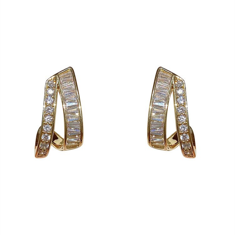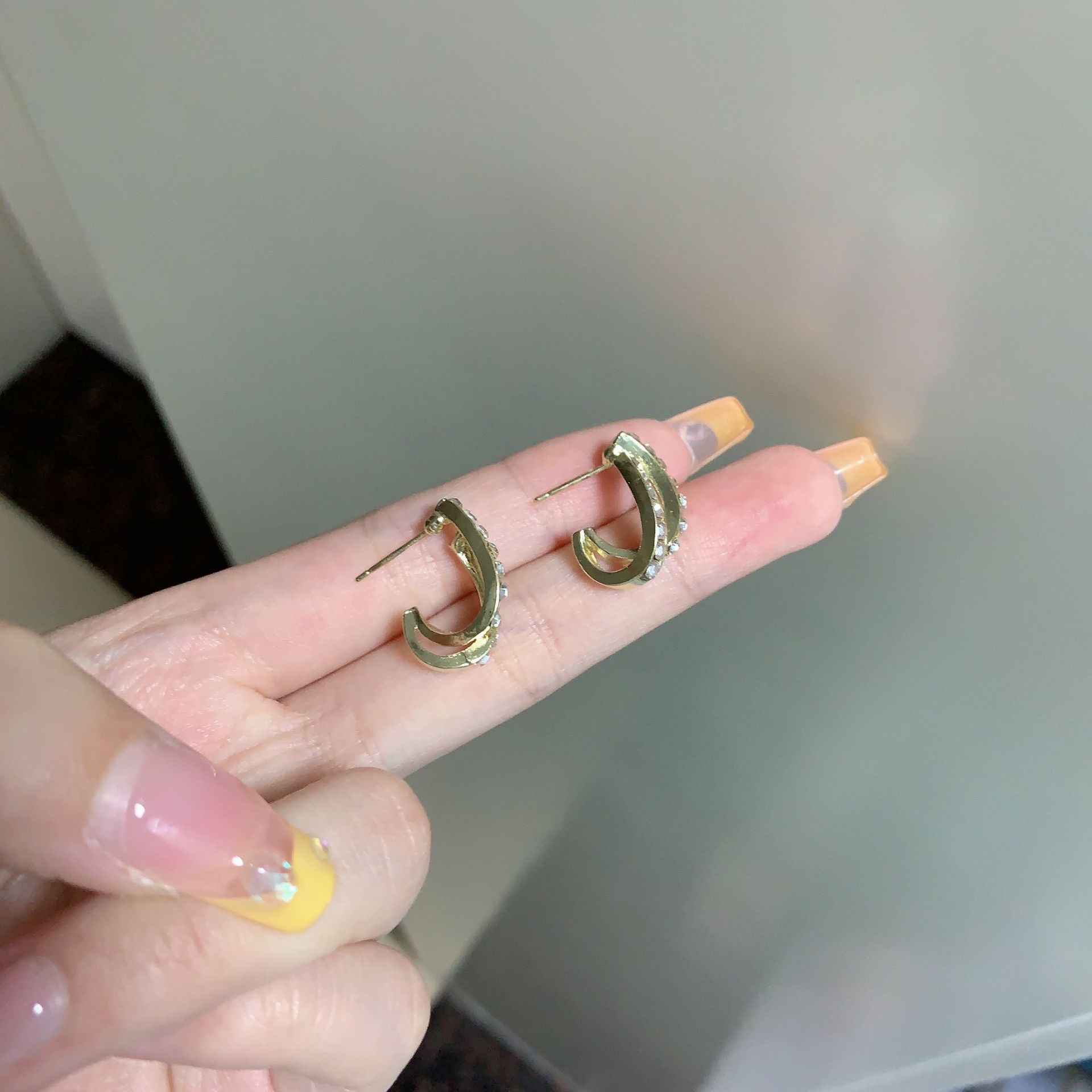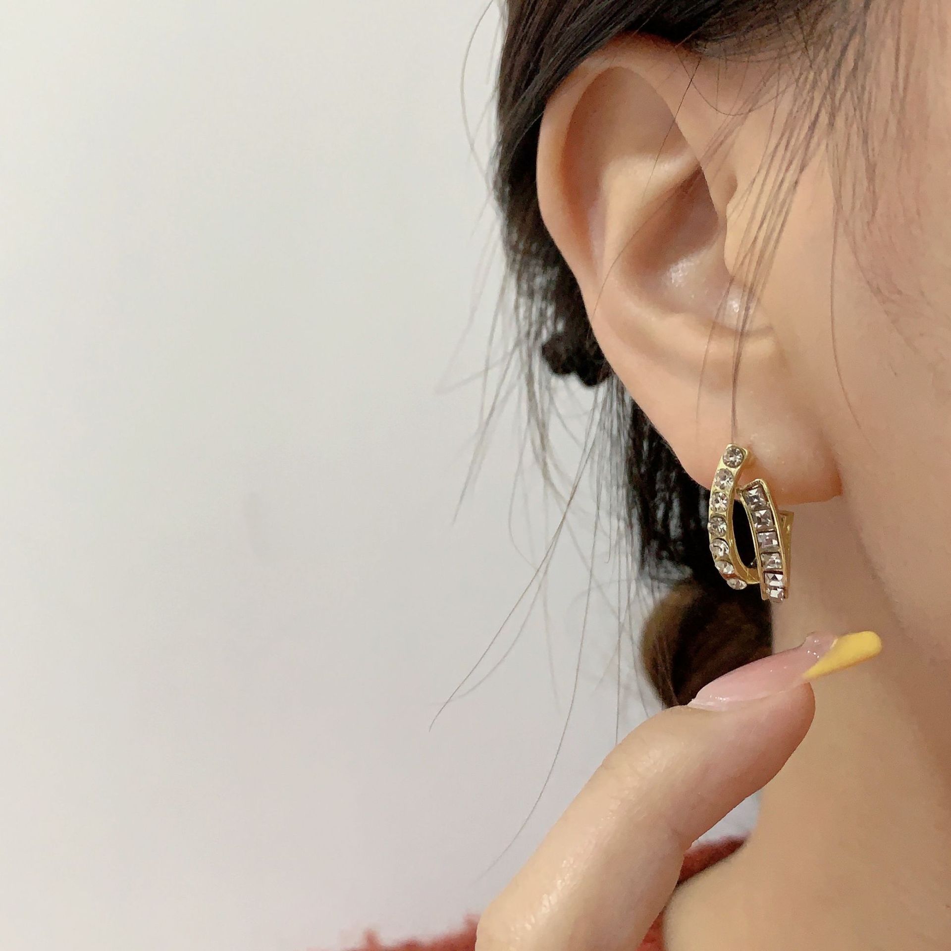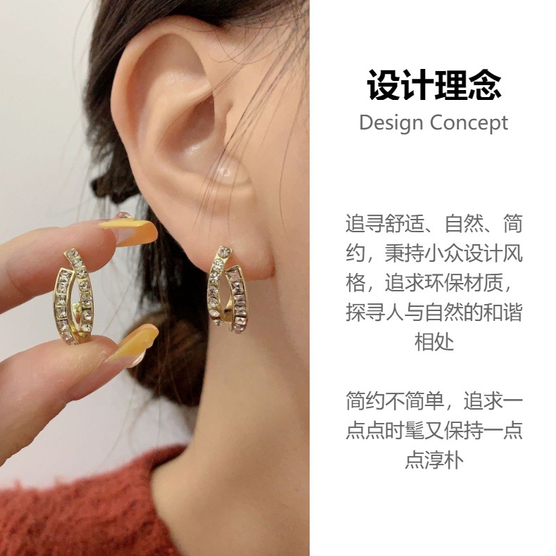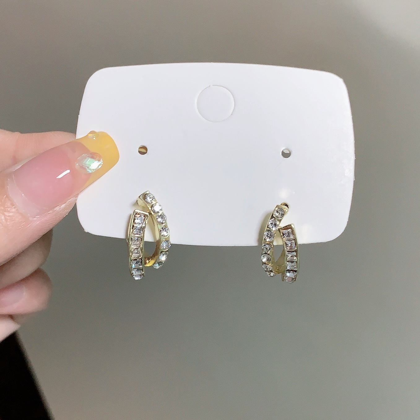 简约轻奢s925银针双层小巧镶钻耳钉女气质时尚冷淡风耳环百搭耳圈