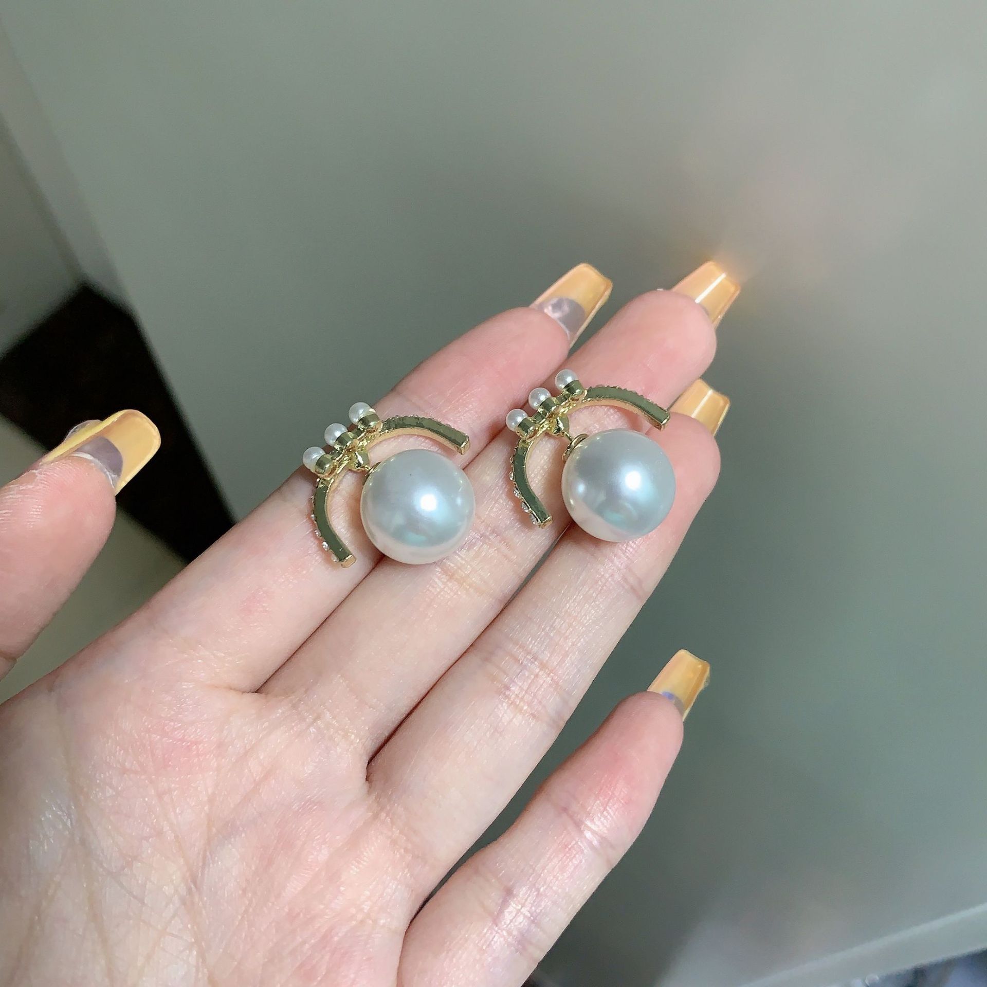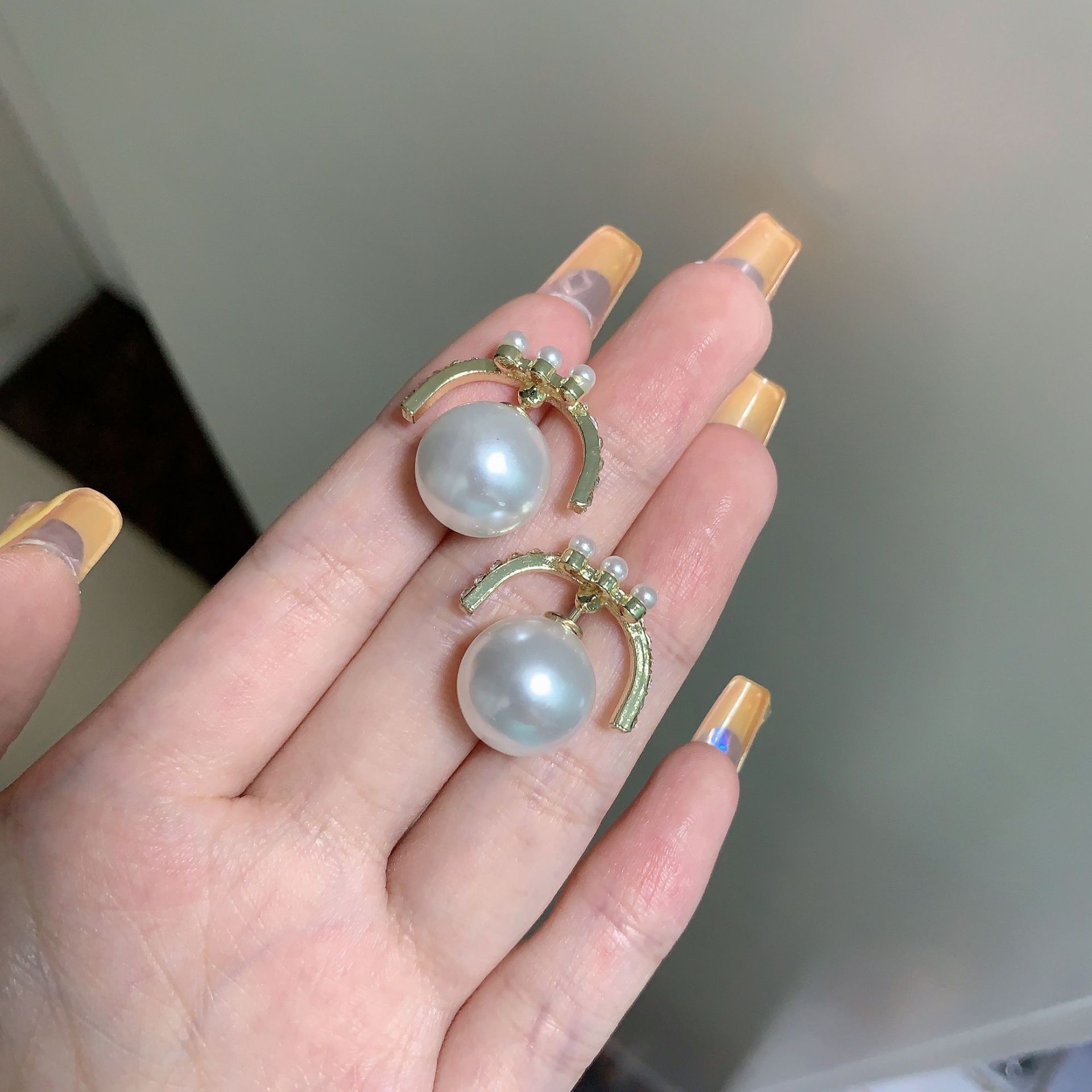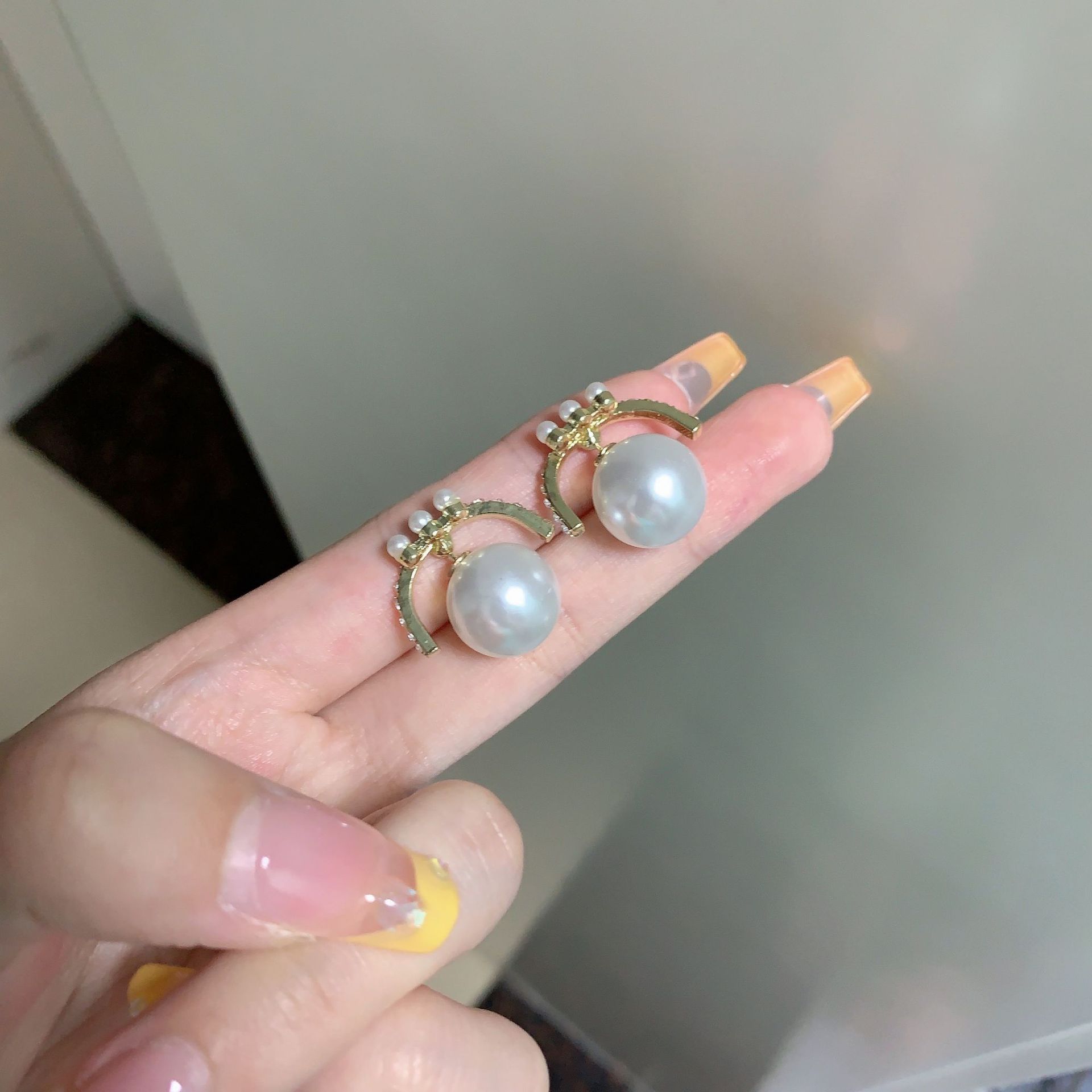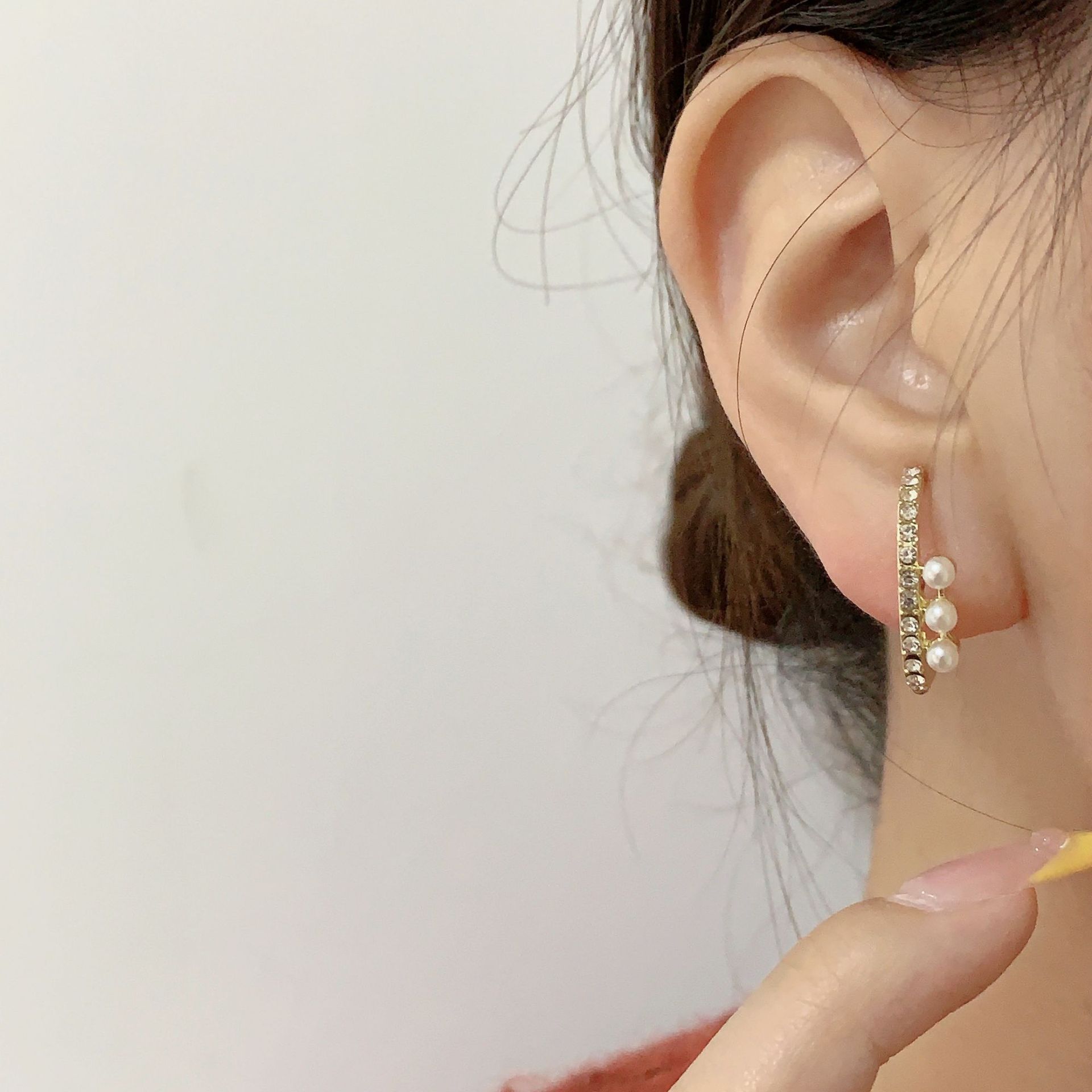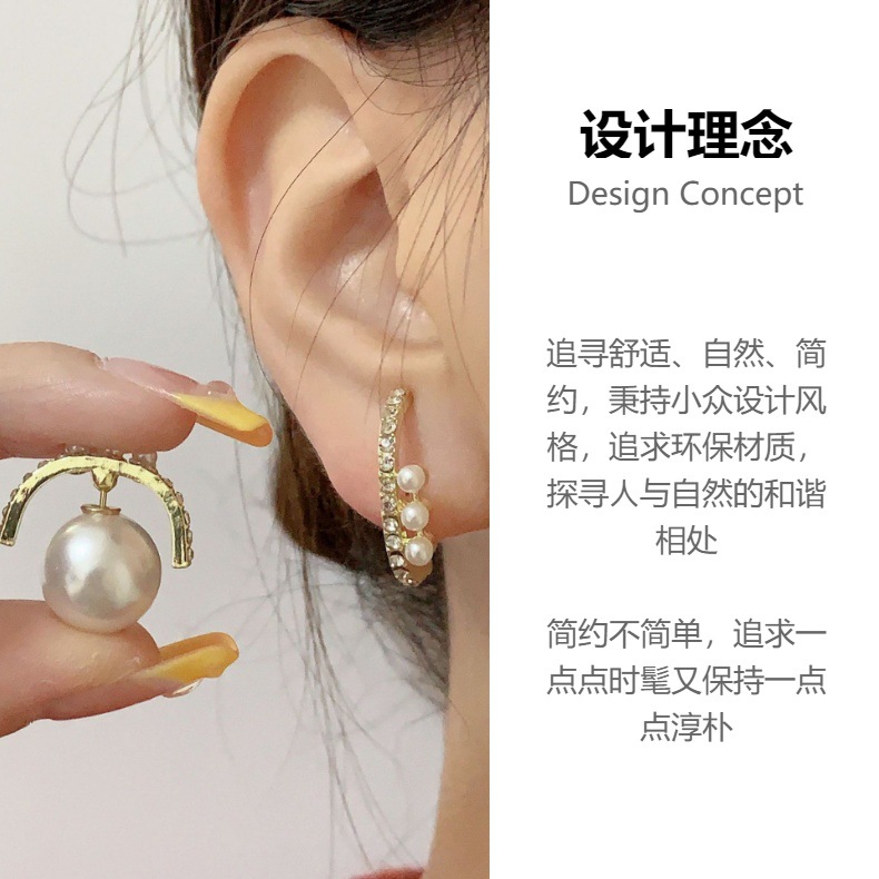 小众设计感S925银针韩国弧形镶钻珍珠耳环女轻奢高级感耳钉耳饰品
