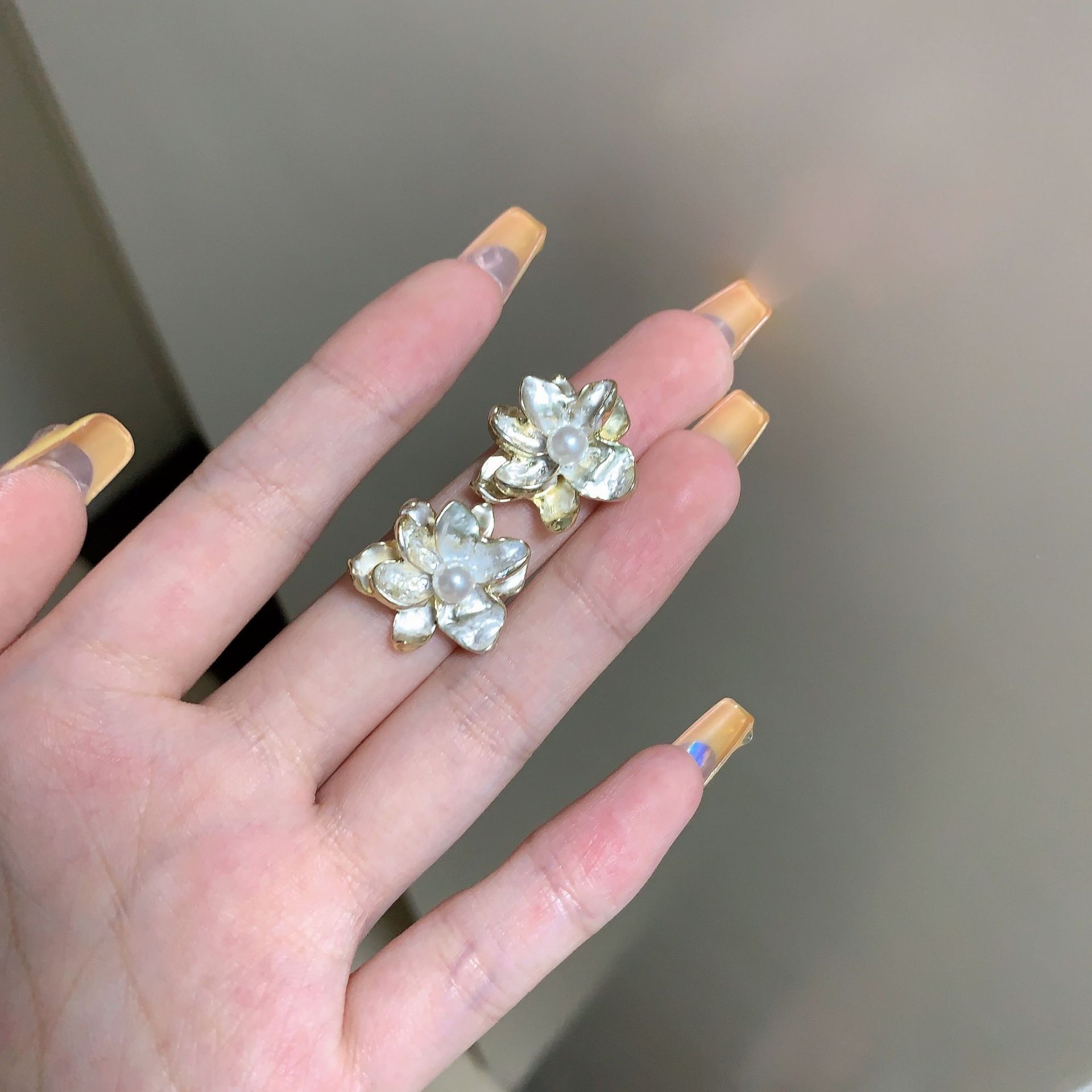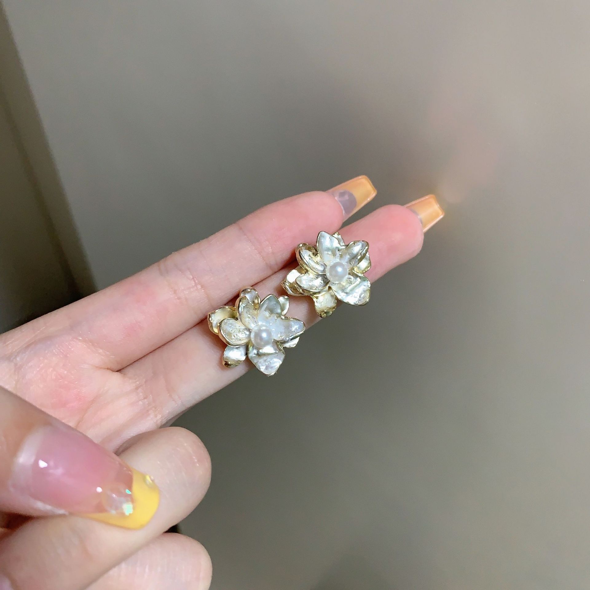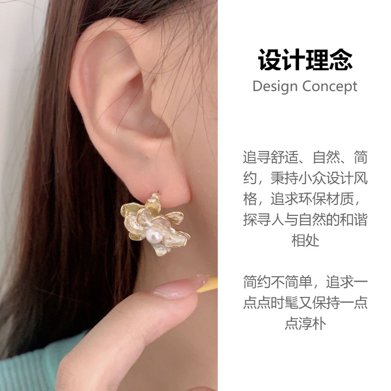 甜美优雅气质S925银针小清新珍珠花朵耳环法式耳钉设计感时尚耳饰