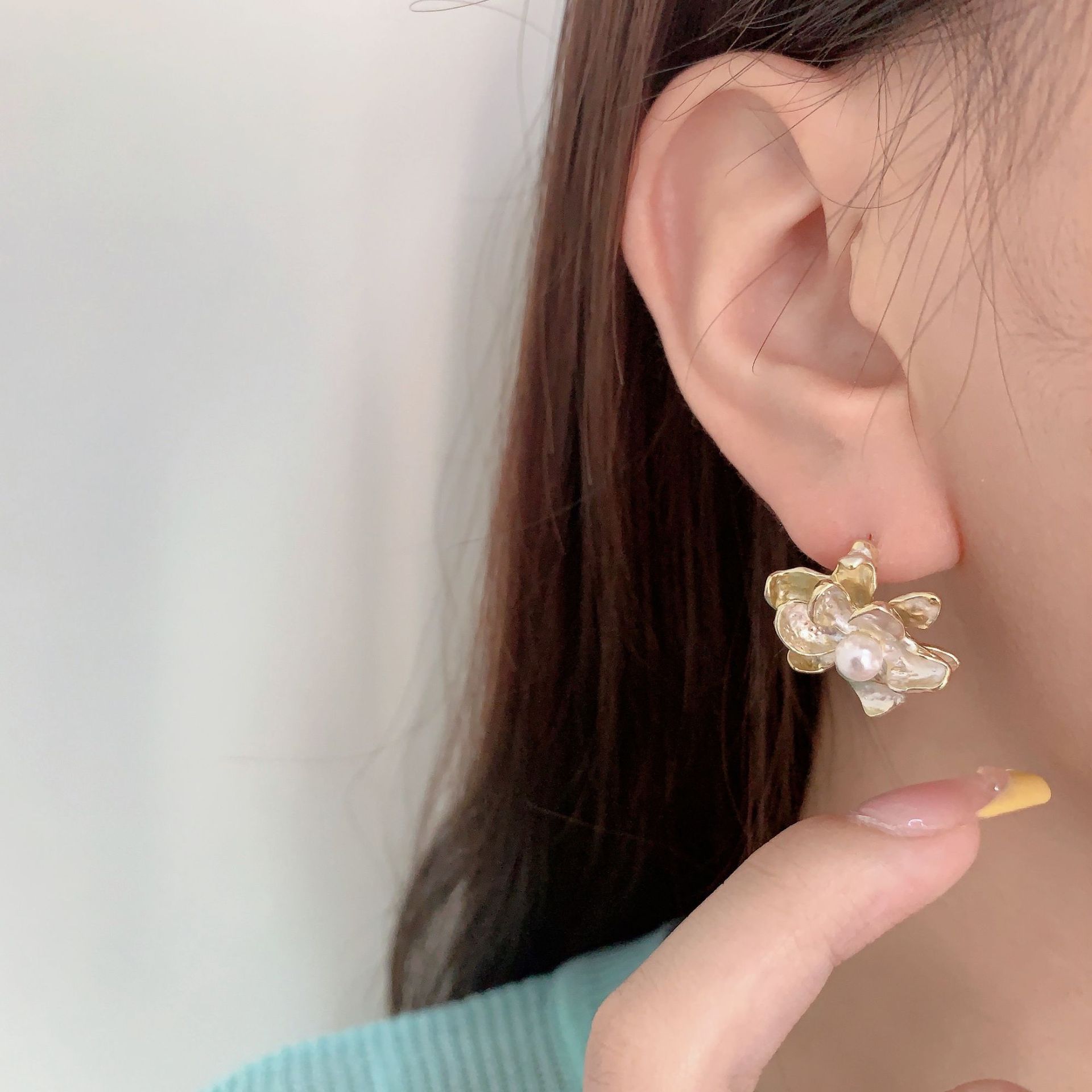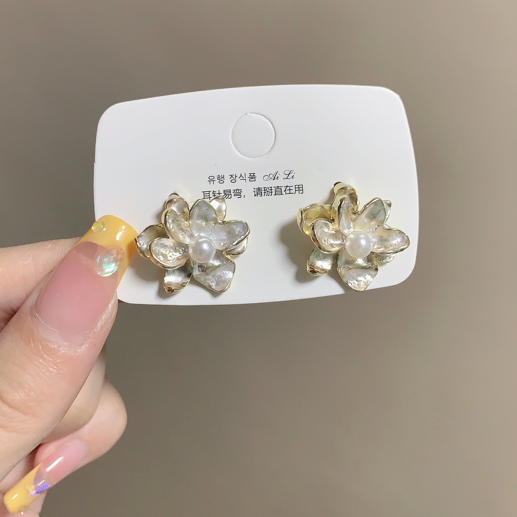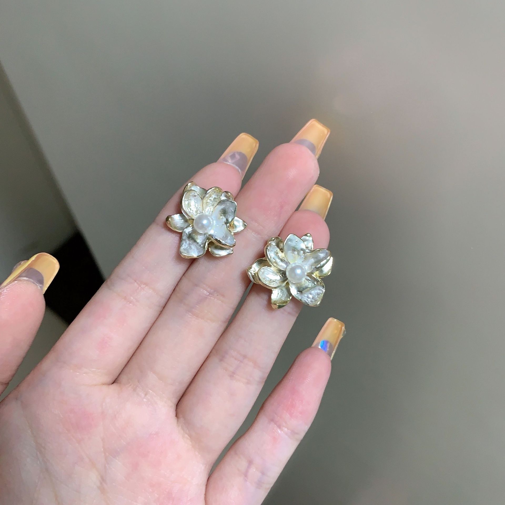 甜美优雅气质S925银针小清新珍珠花朵耳环法式耳钉设计感时尚耳饰
