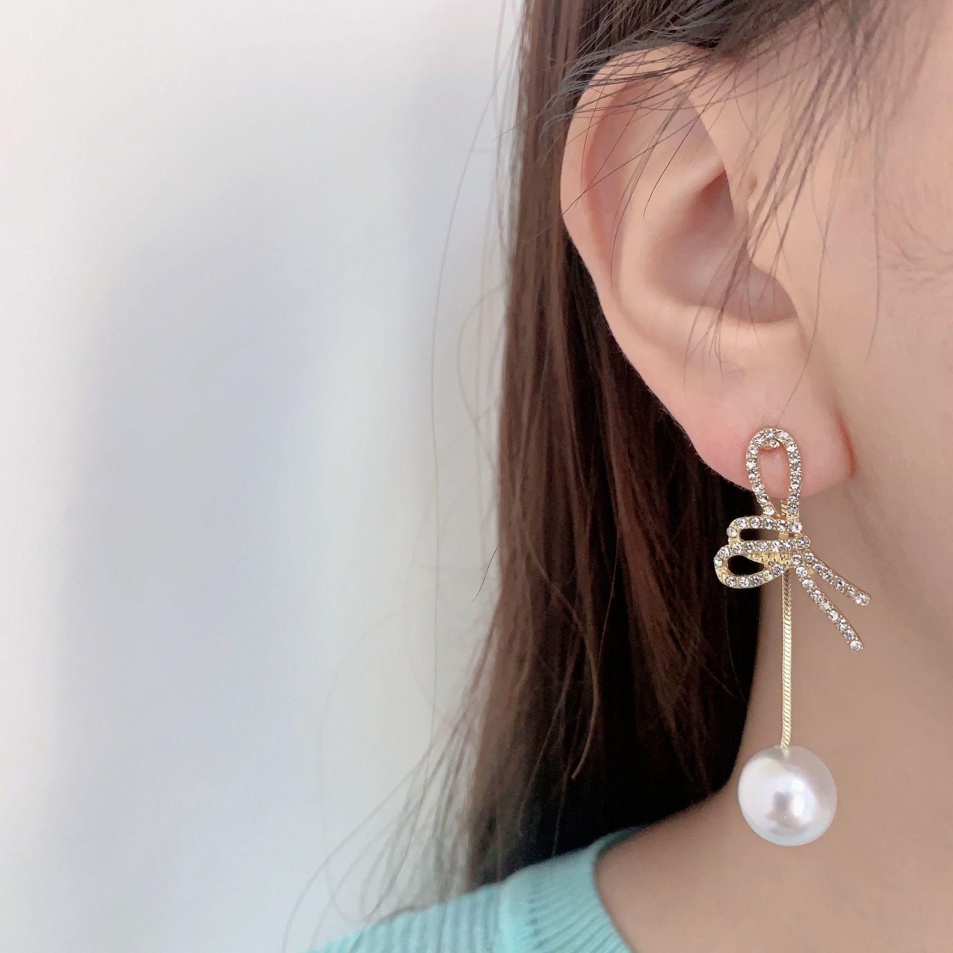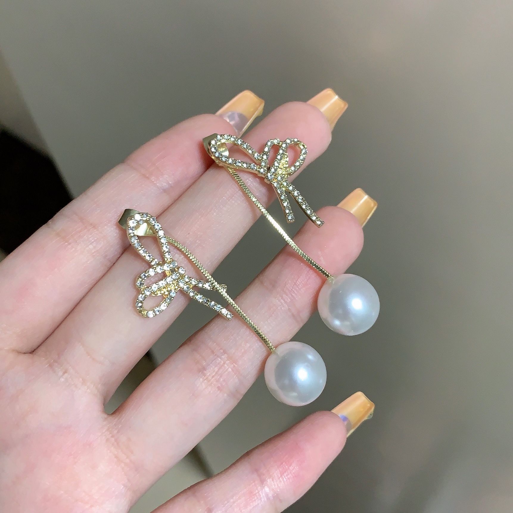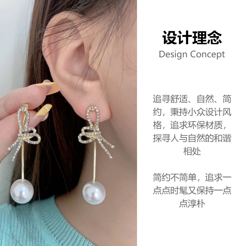 蝴蝶结珍珠2024年新款潮秋冬耳坠法式小众设计感高级网红耳钉耳饰