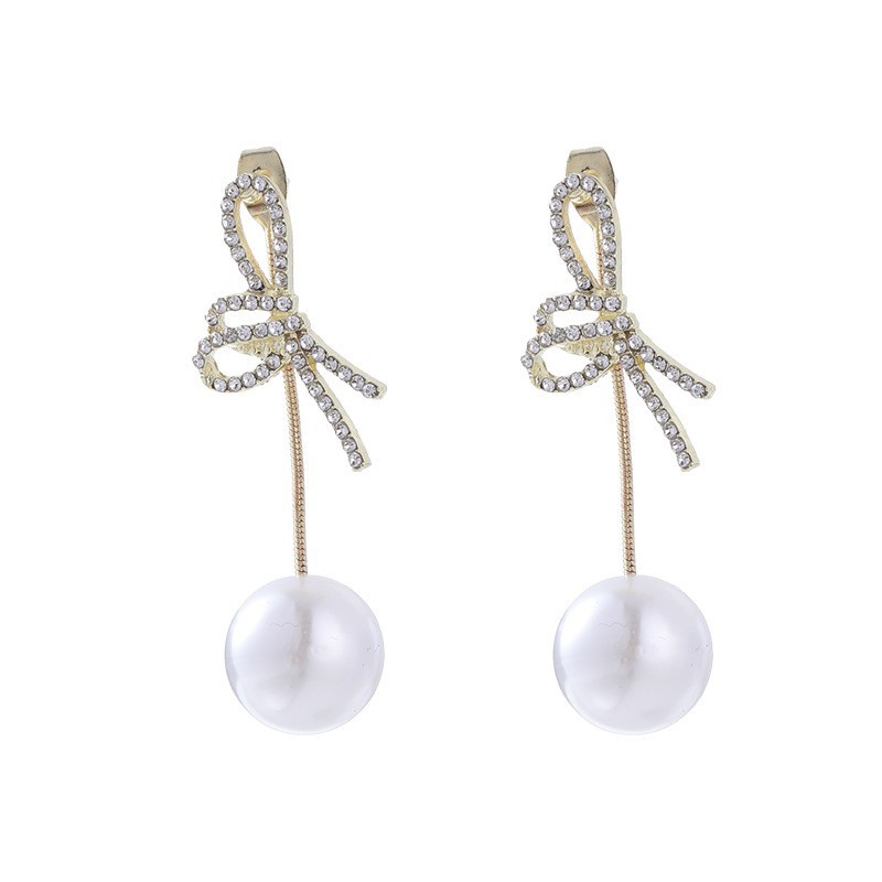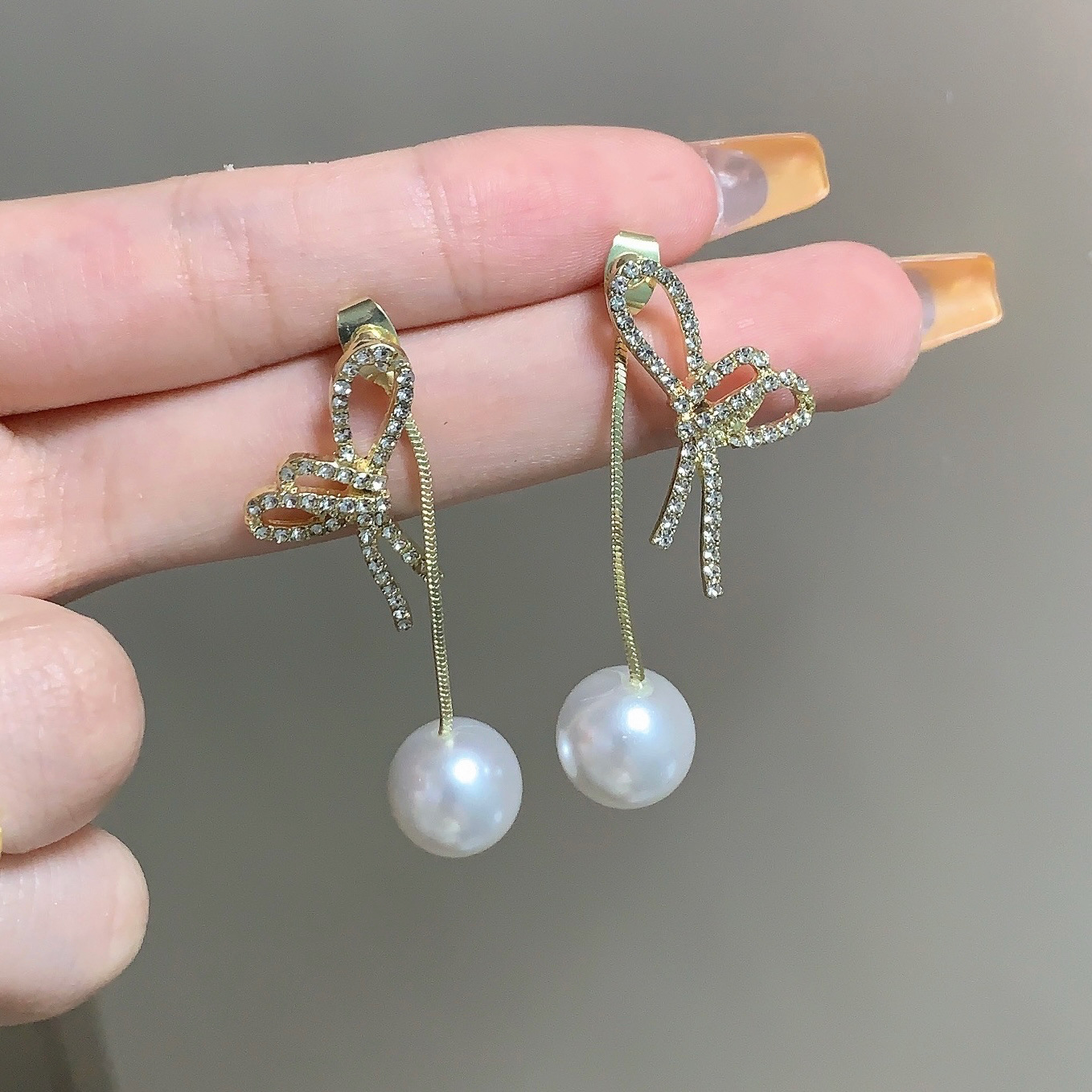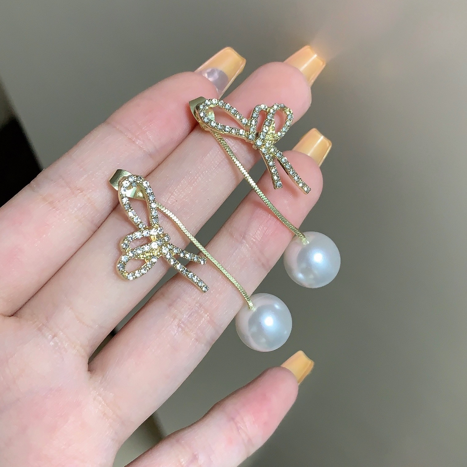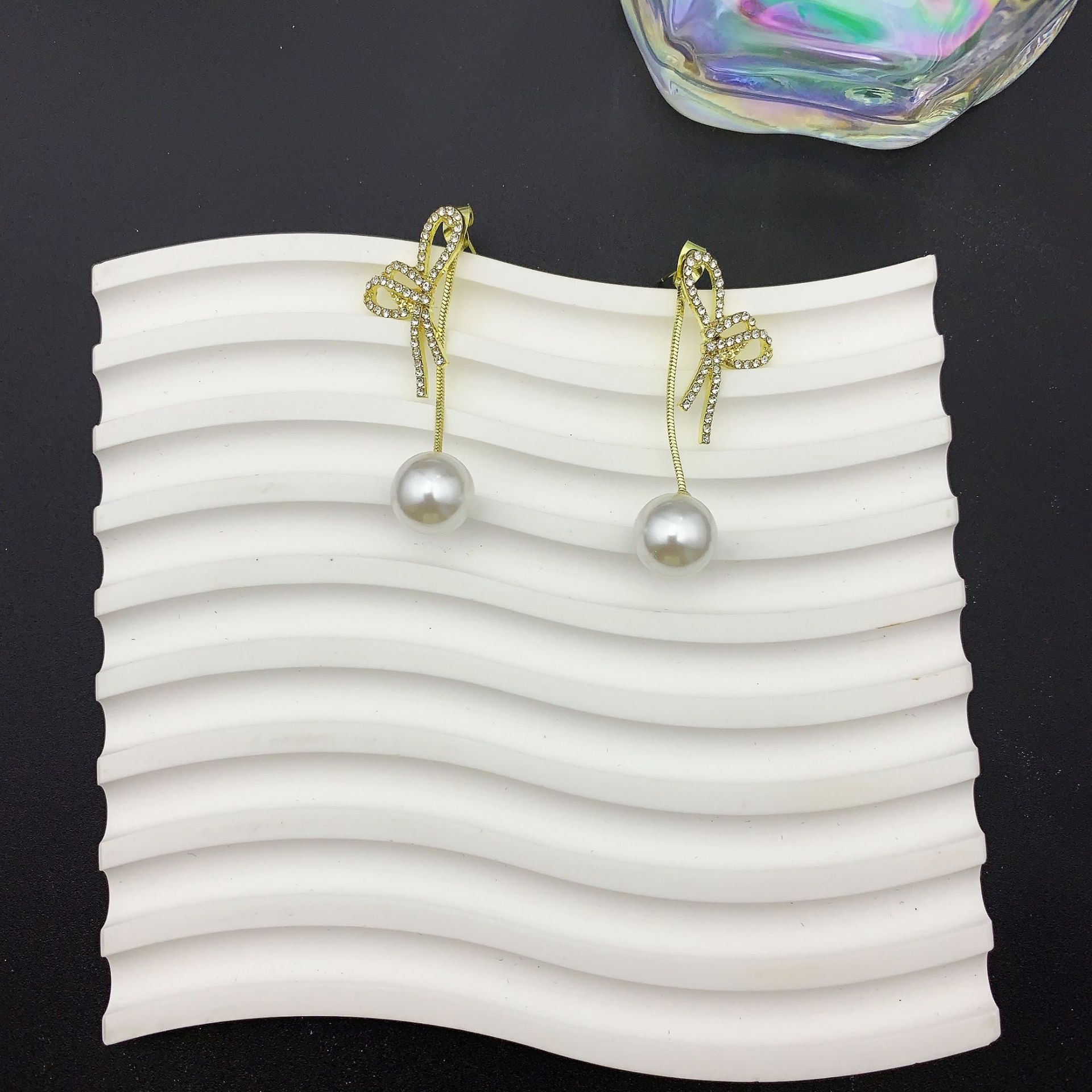 蝴蝶结珍珠2024年新款潮秋冬耳坠法式小众设计感高级网红耳钉耳饰