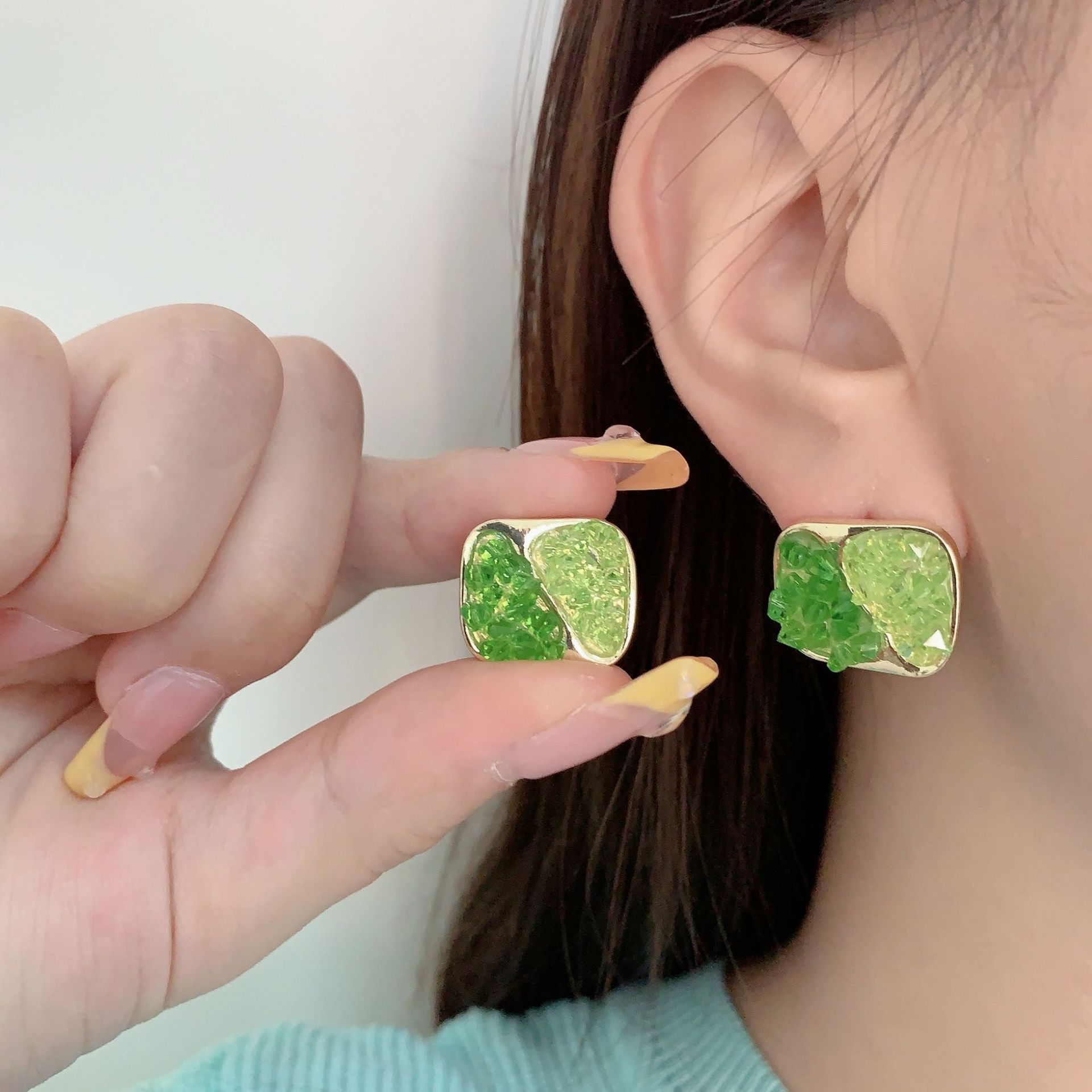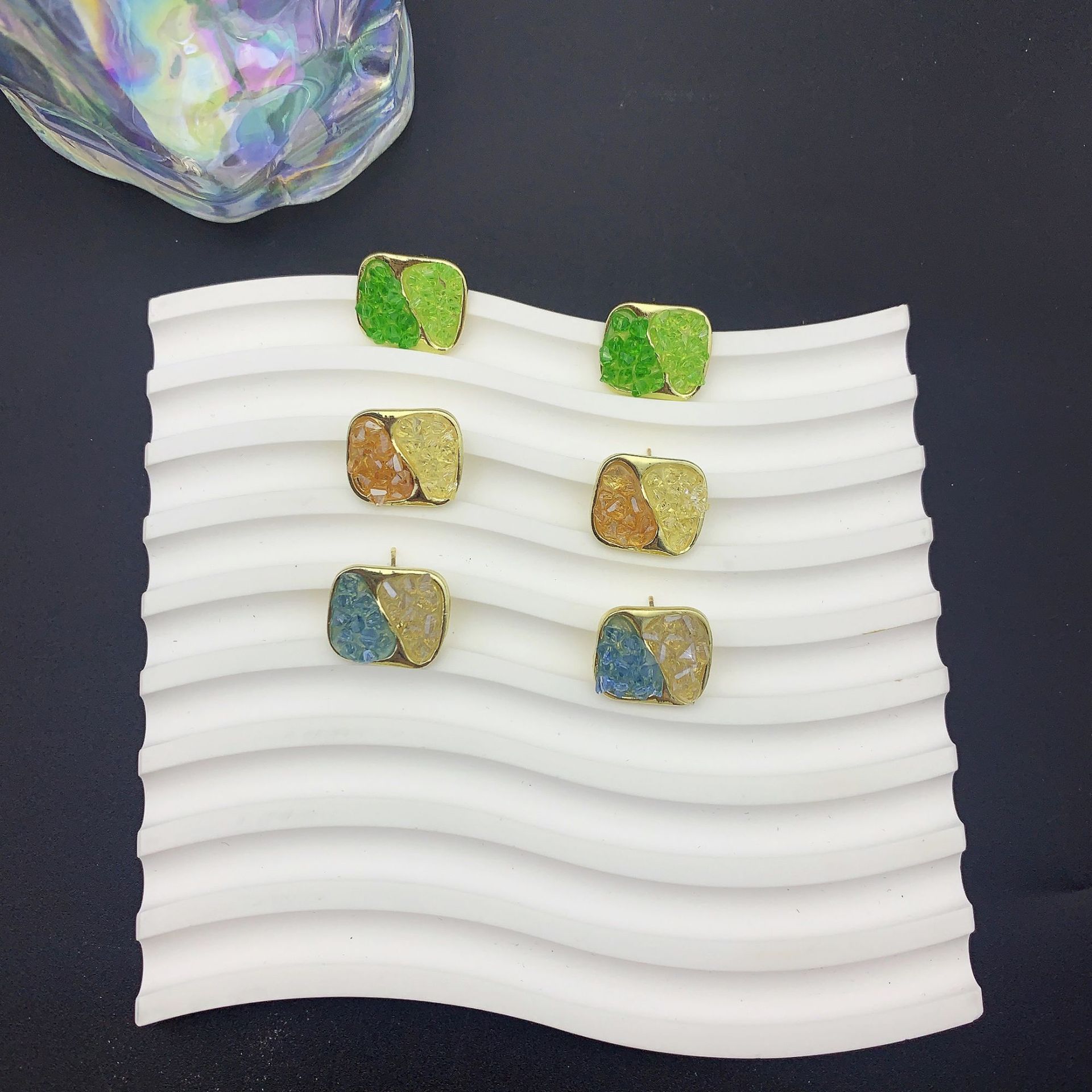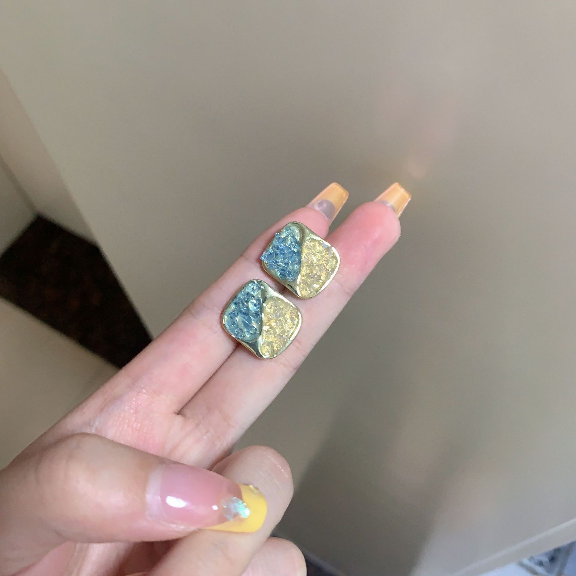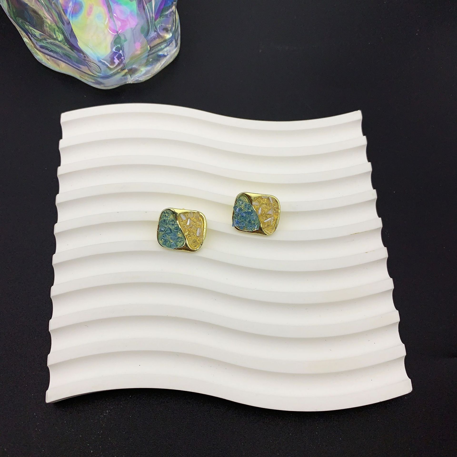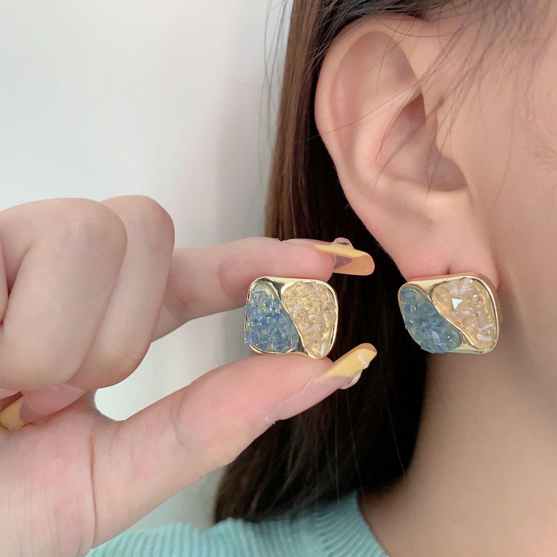 几何方形耳饰超闪法式复古水晶拼色耳夹女轻奢小众设计感高级耳环