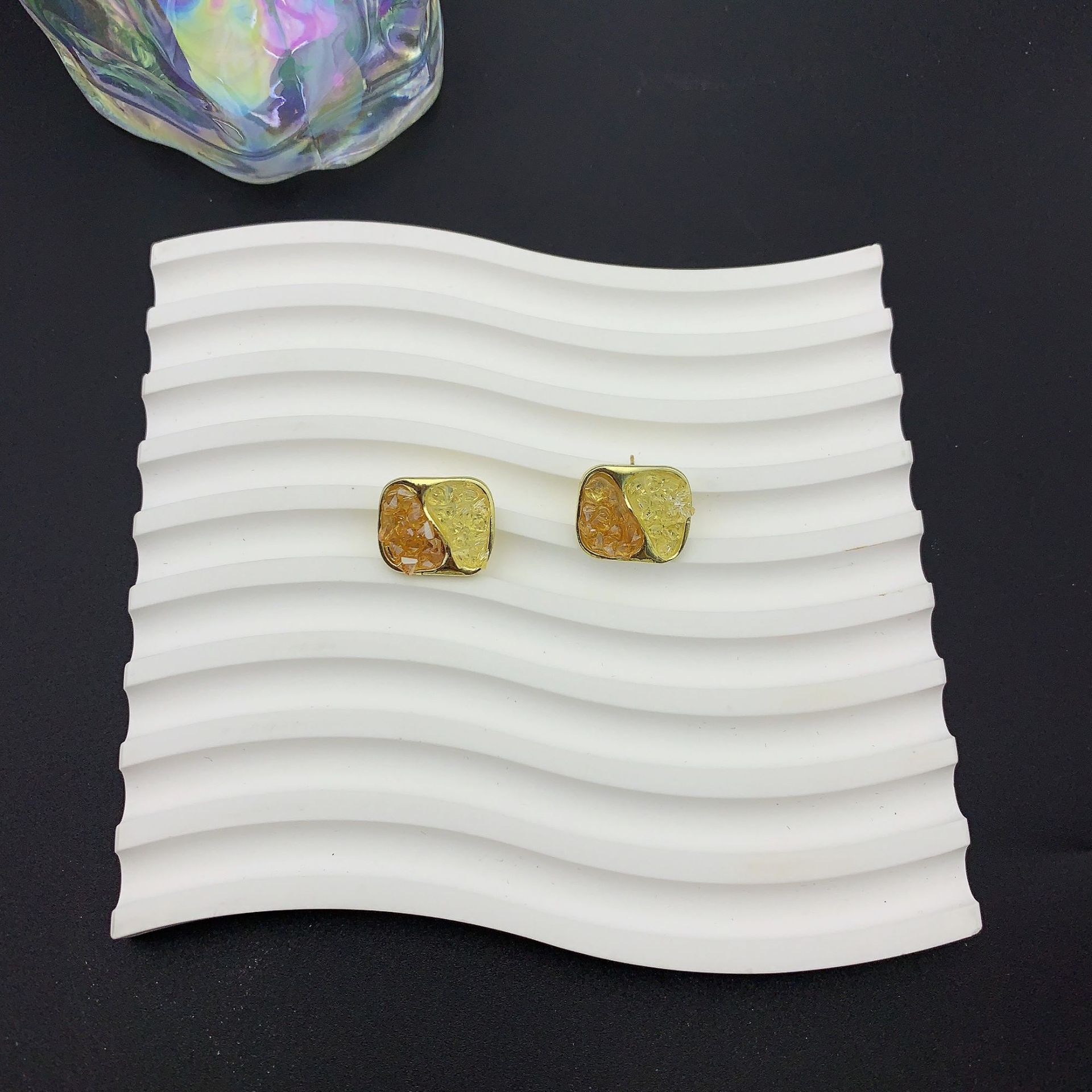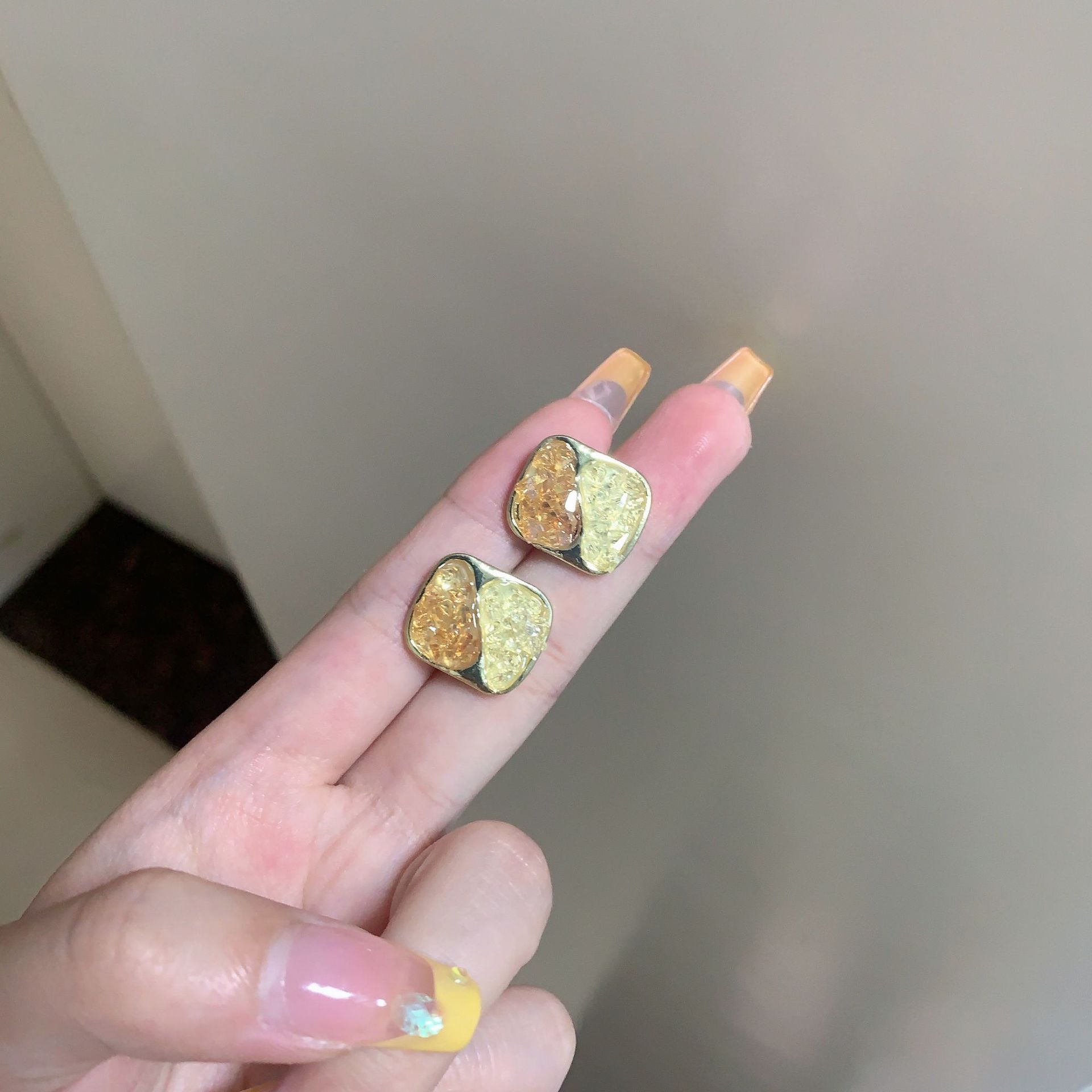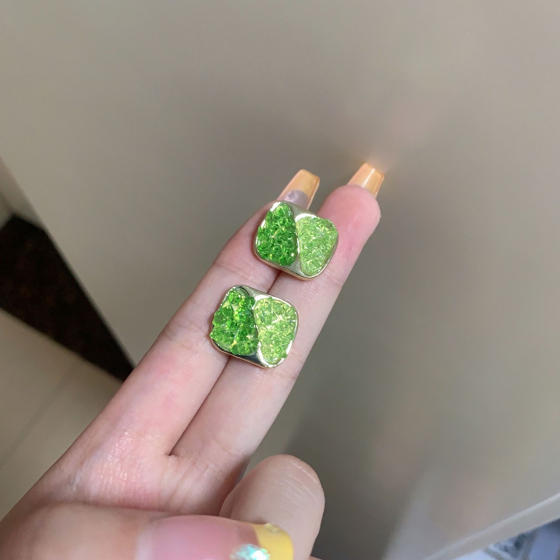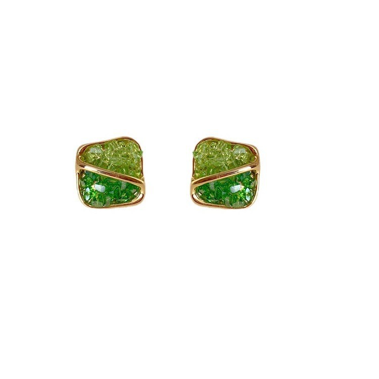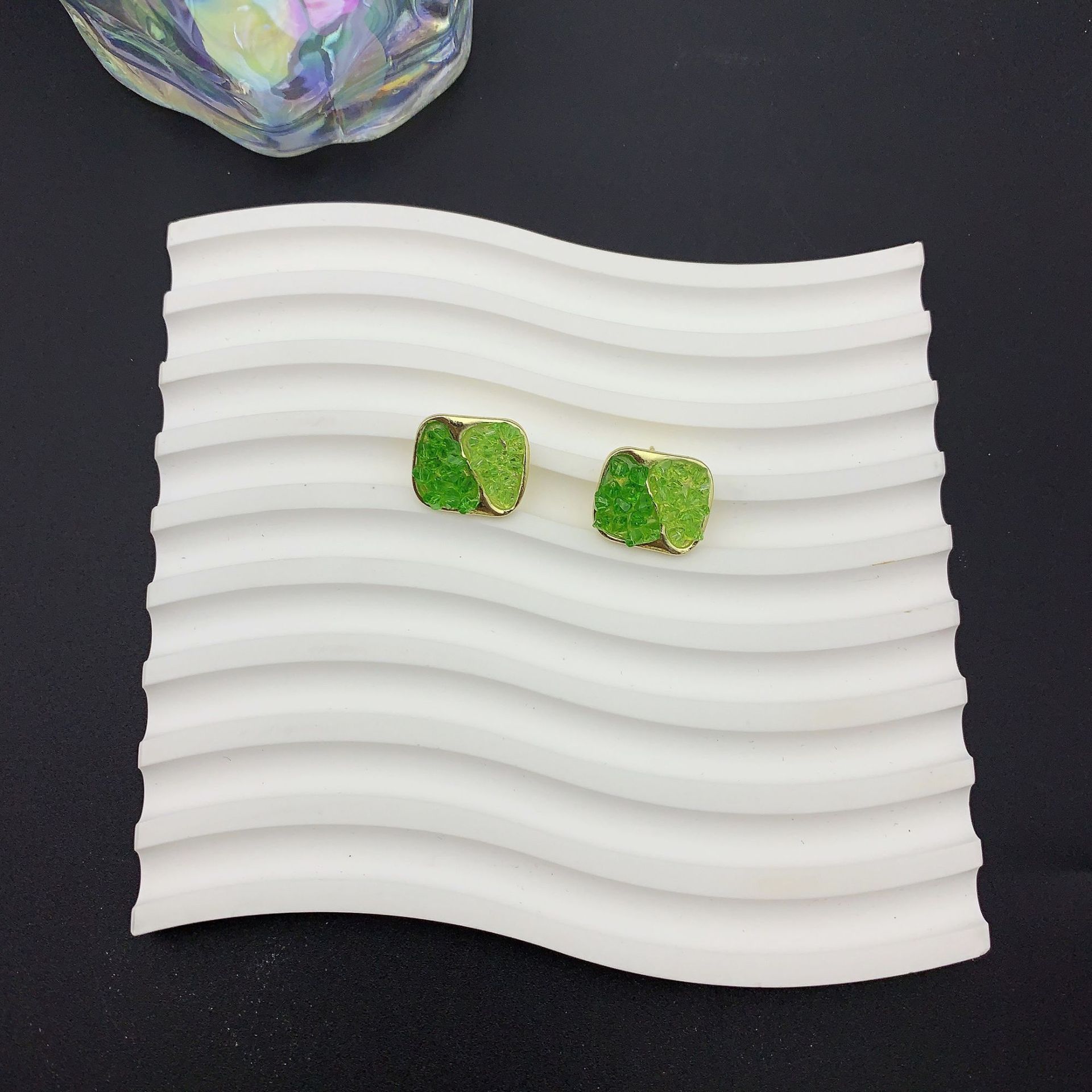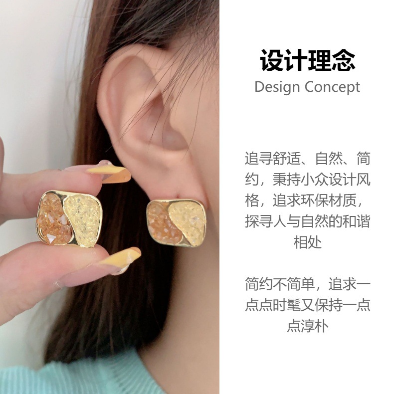 几何方形耳饰超闪法式复古水晶拼色耳夹女轻奢小众设计感高级耳环