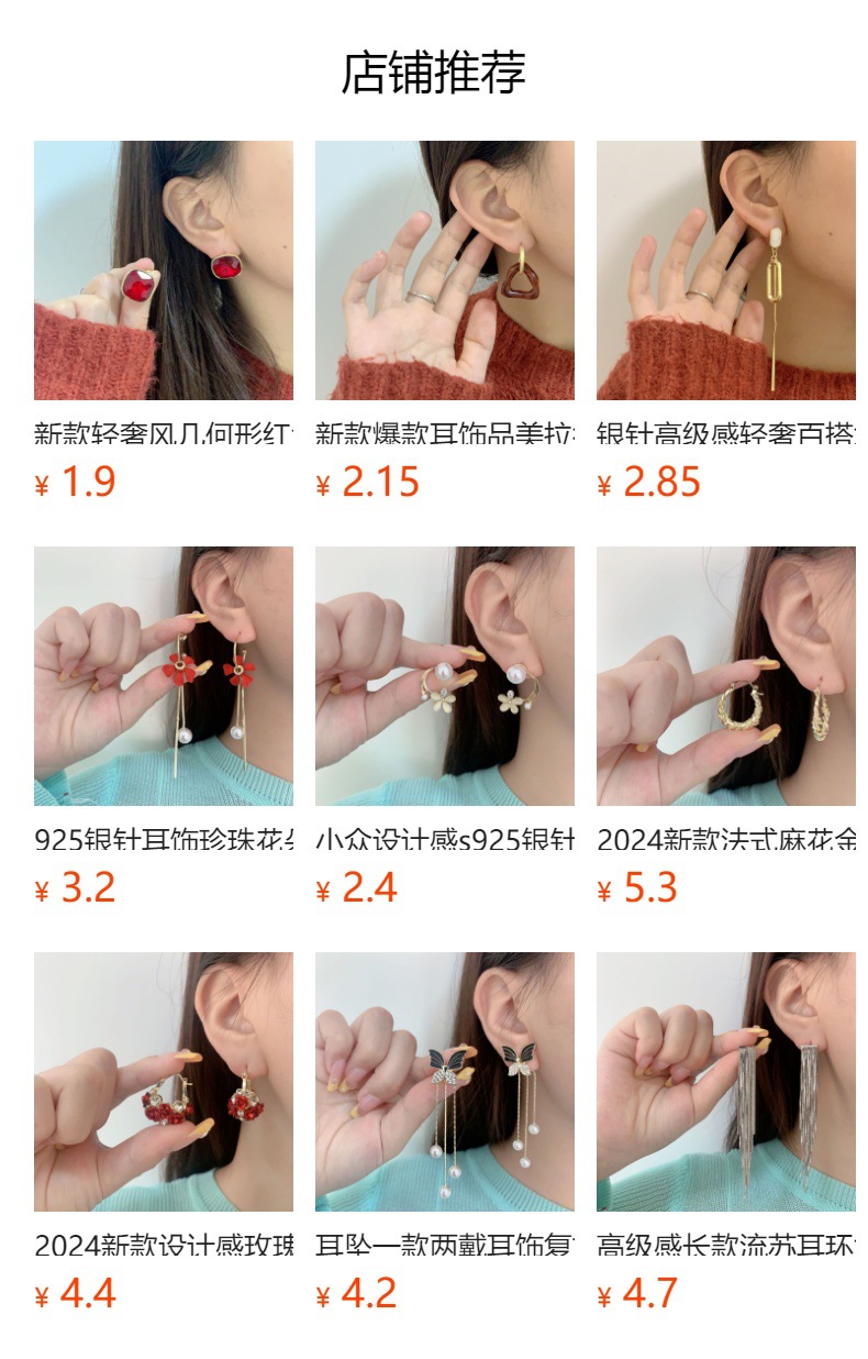 2024新款轻奢气质百搭网红耳饰链条方形耳钉 时尚复古高级感耳环