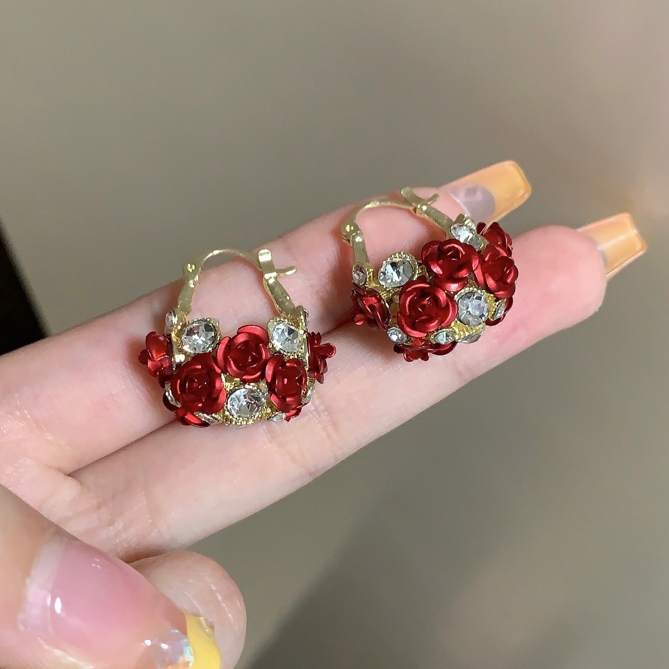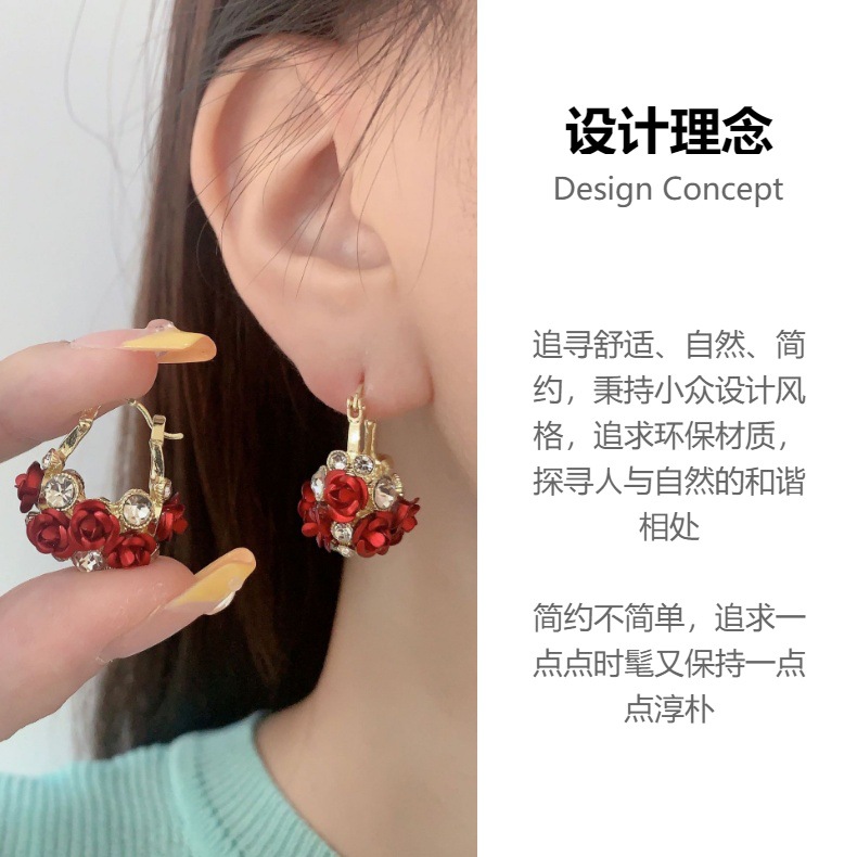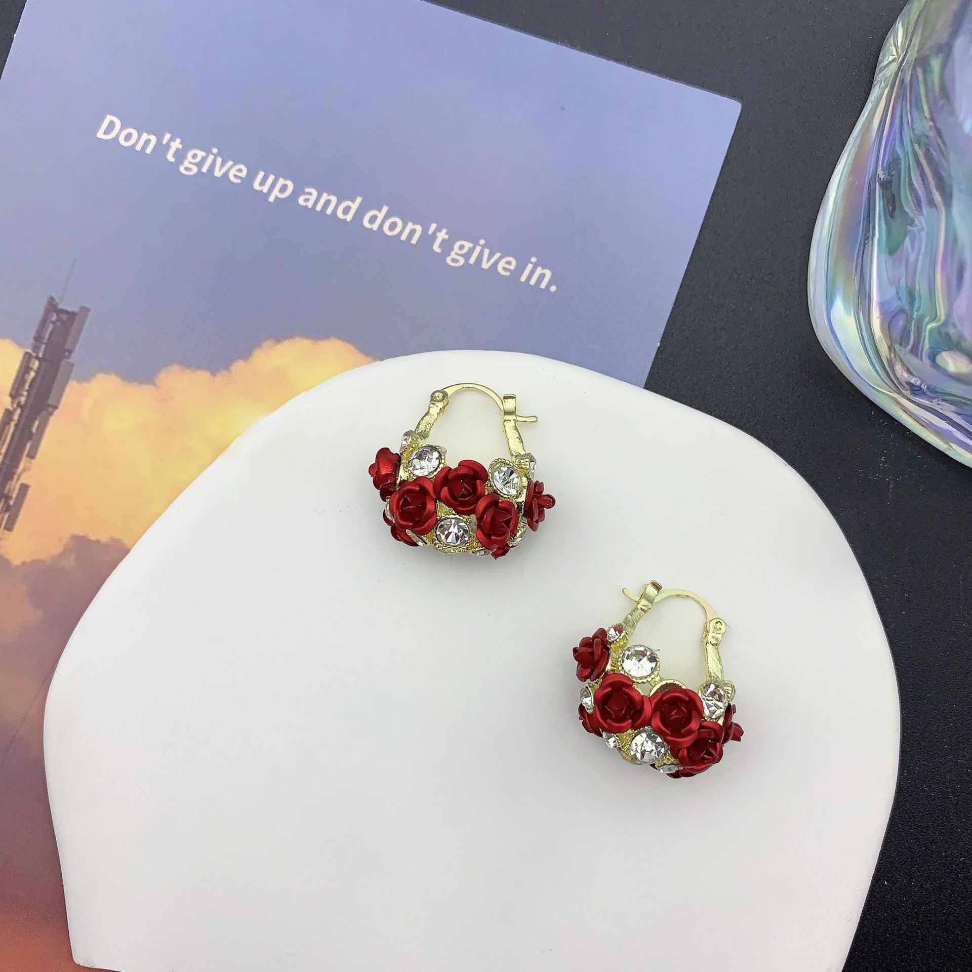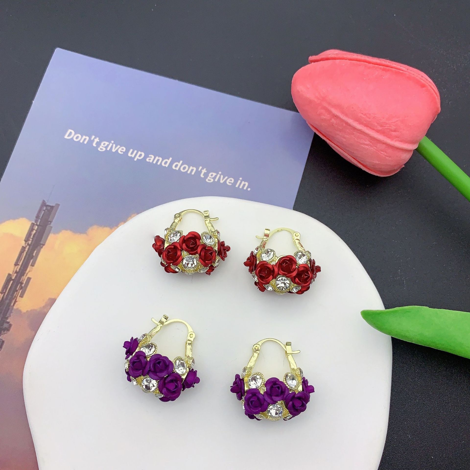 2024新款设计感玫瑰花花篮耳扣时尚简约百搭精致镶钻耳环耳饰品女