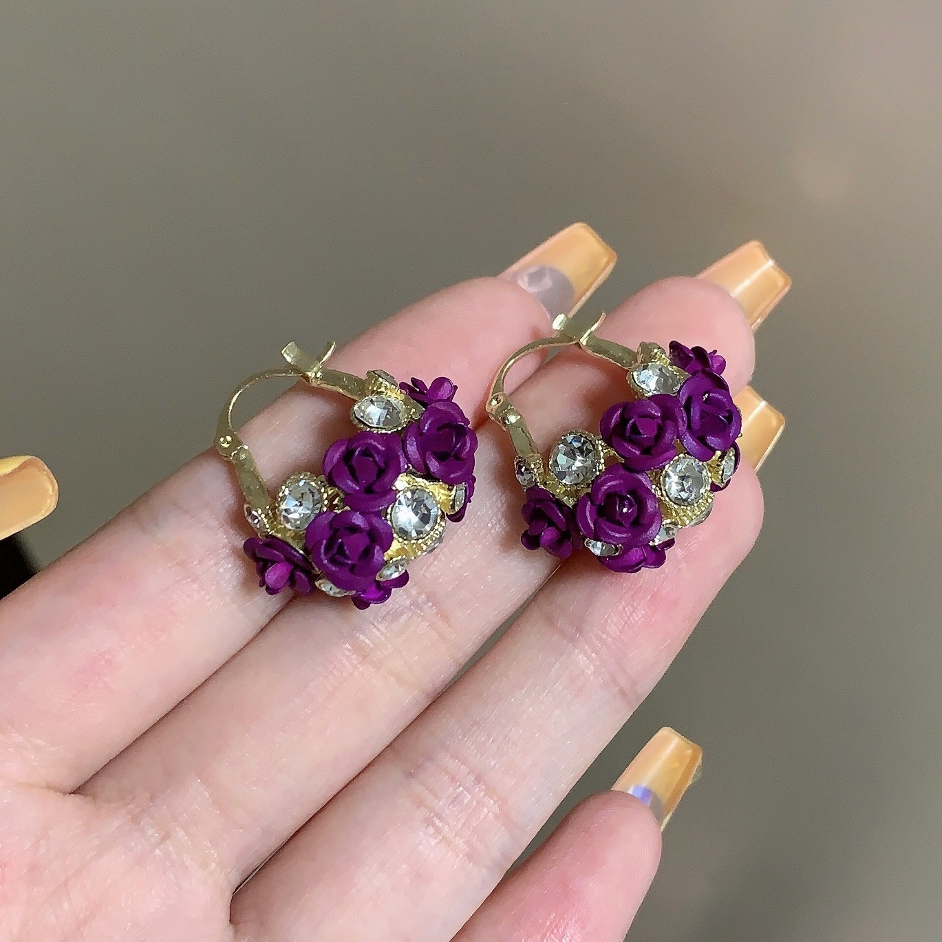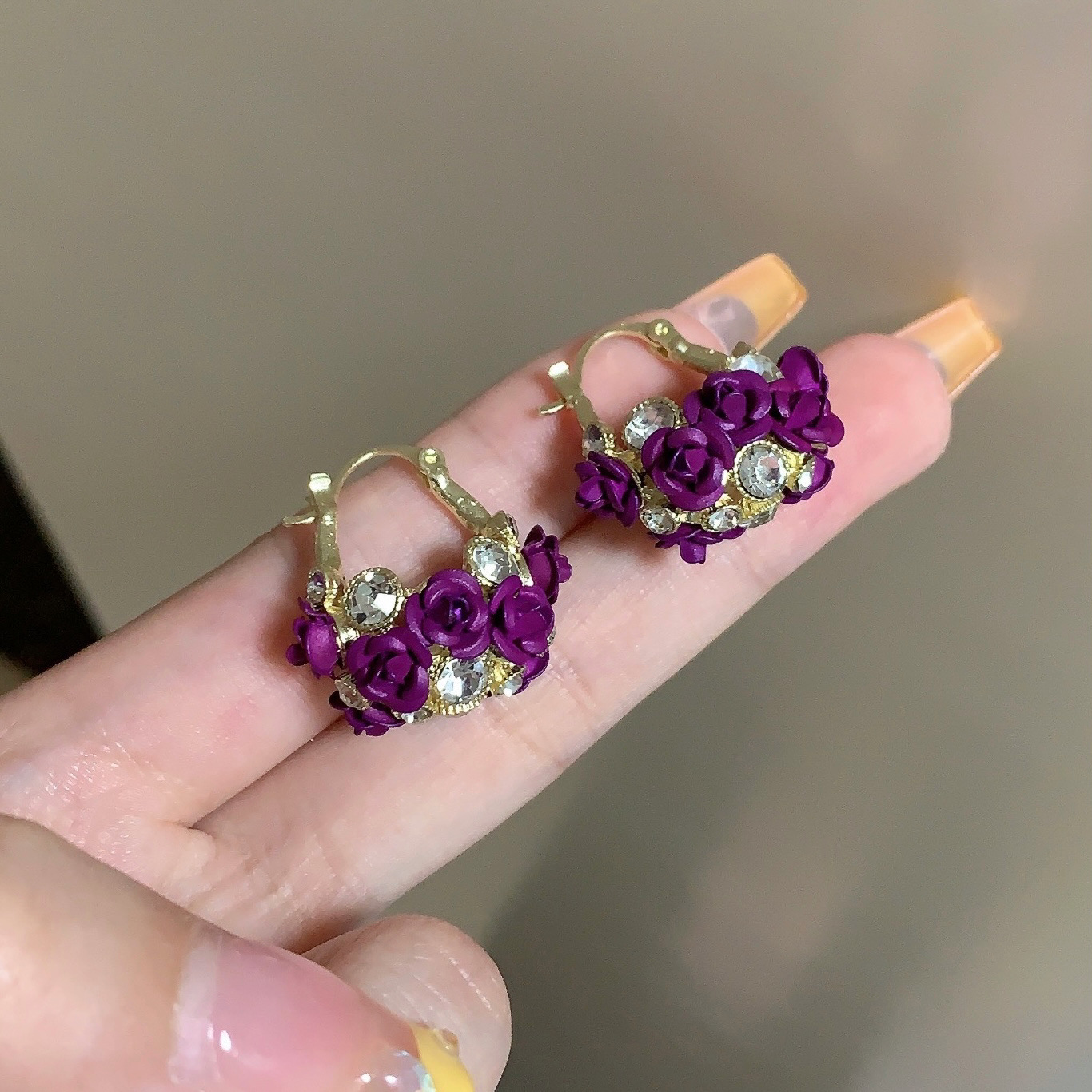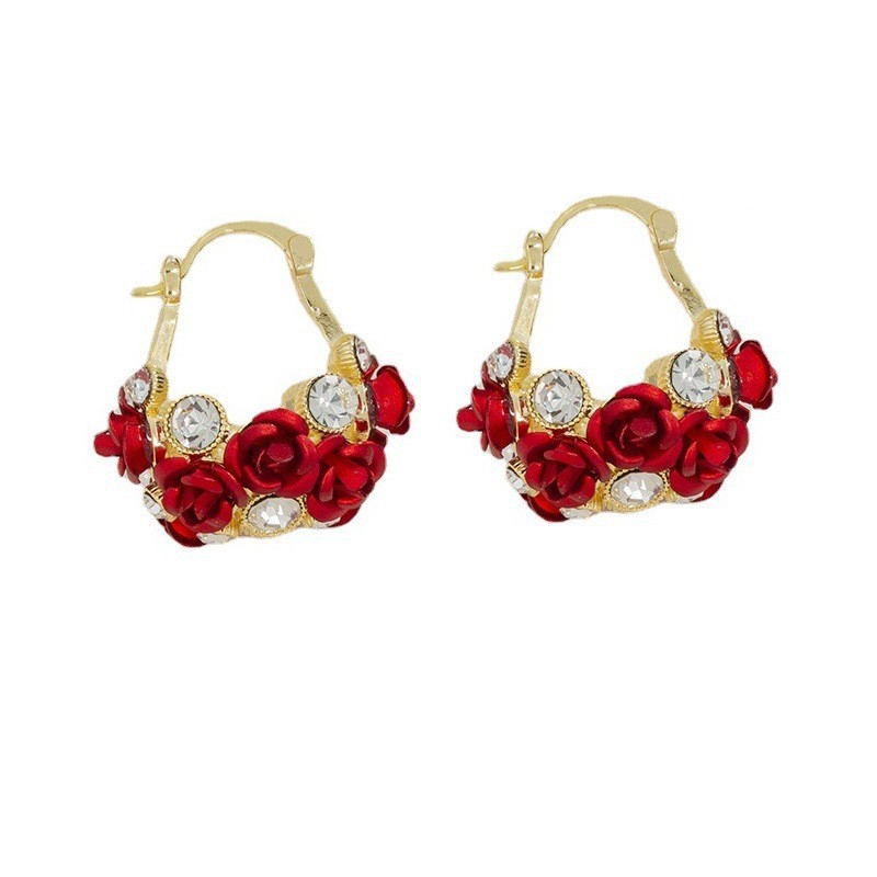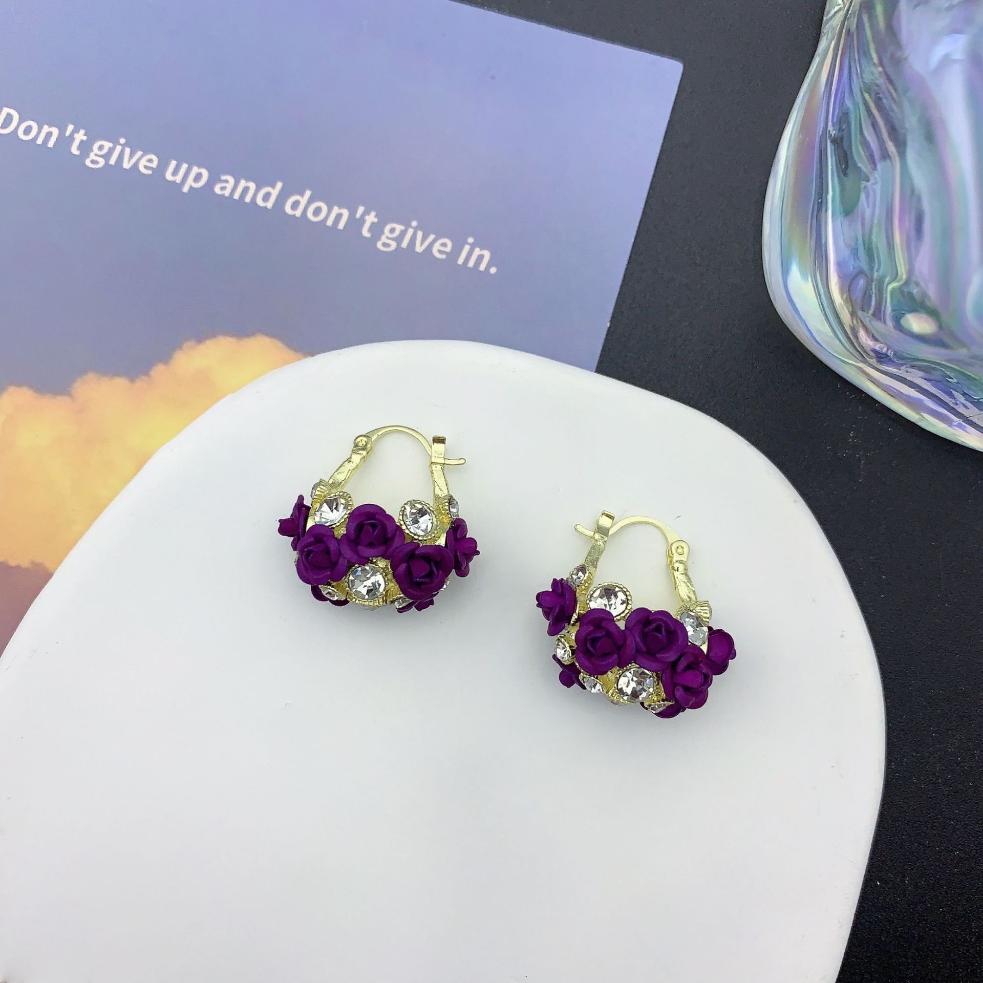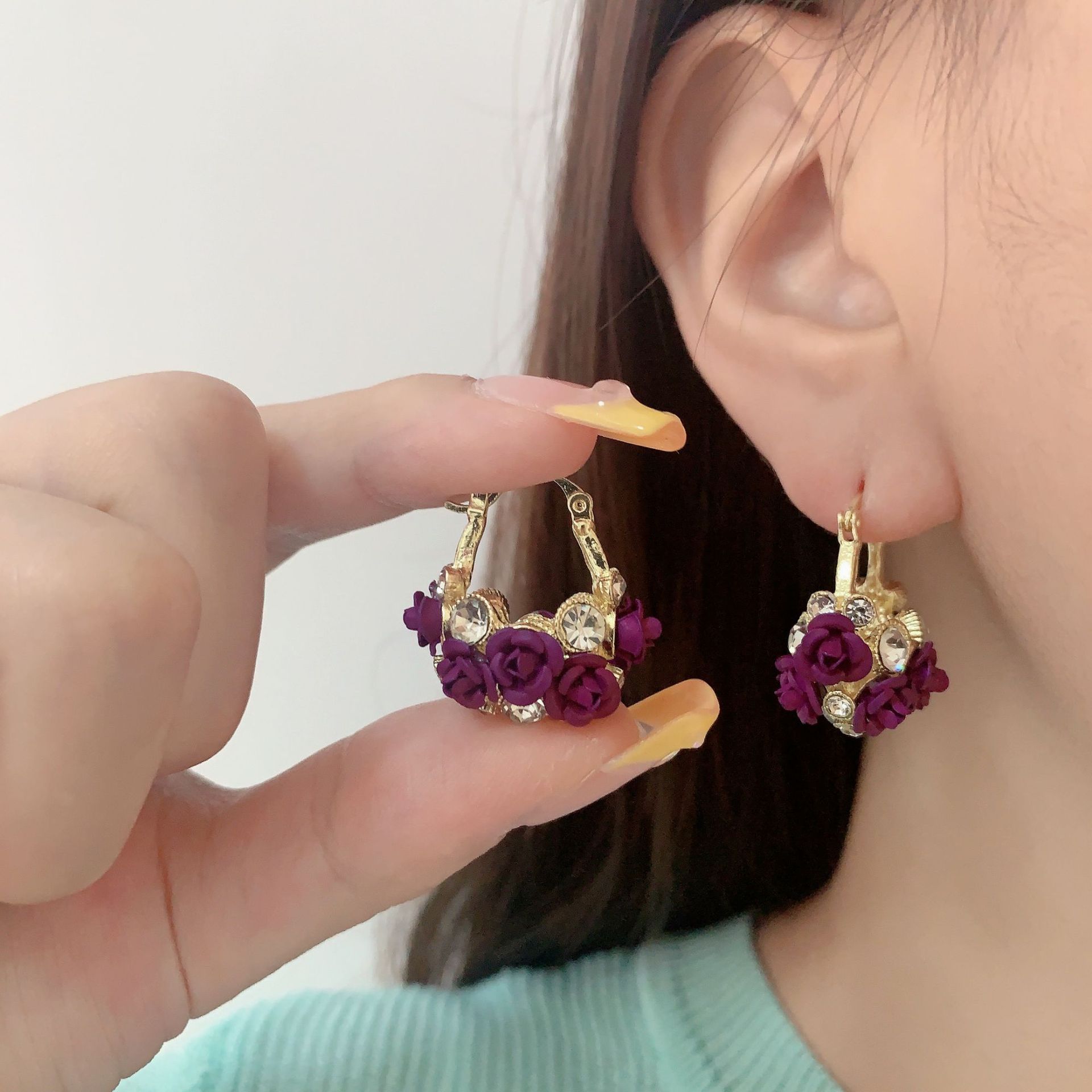 2024新款设计感玫瑰花花篮耳扣时尚简约百搭精致镶钻耳环耳饰品女