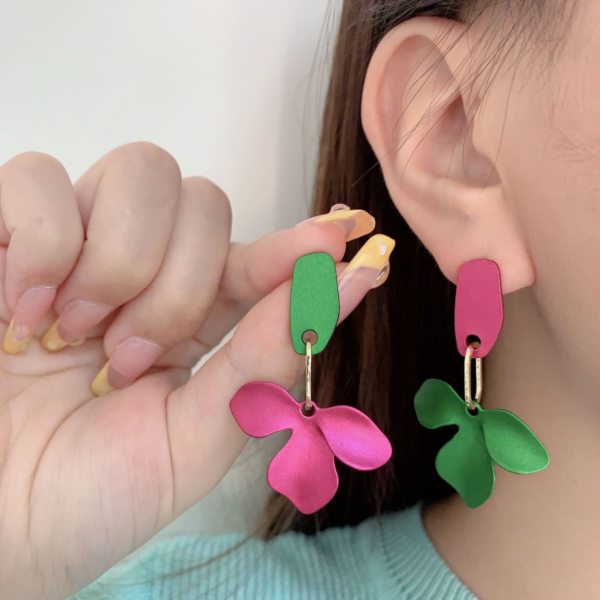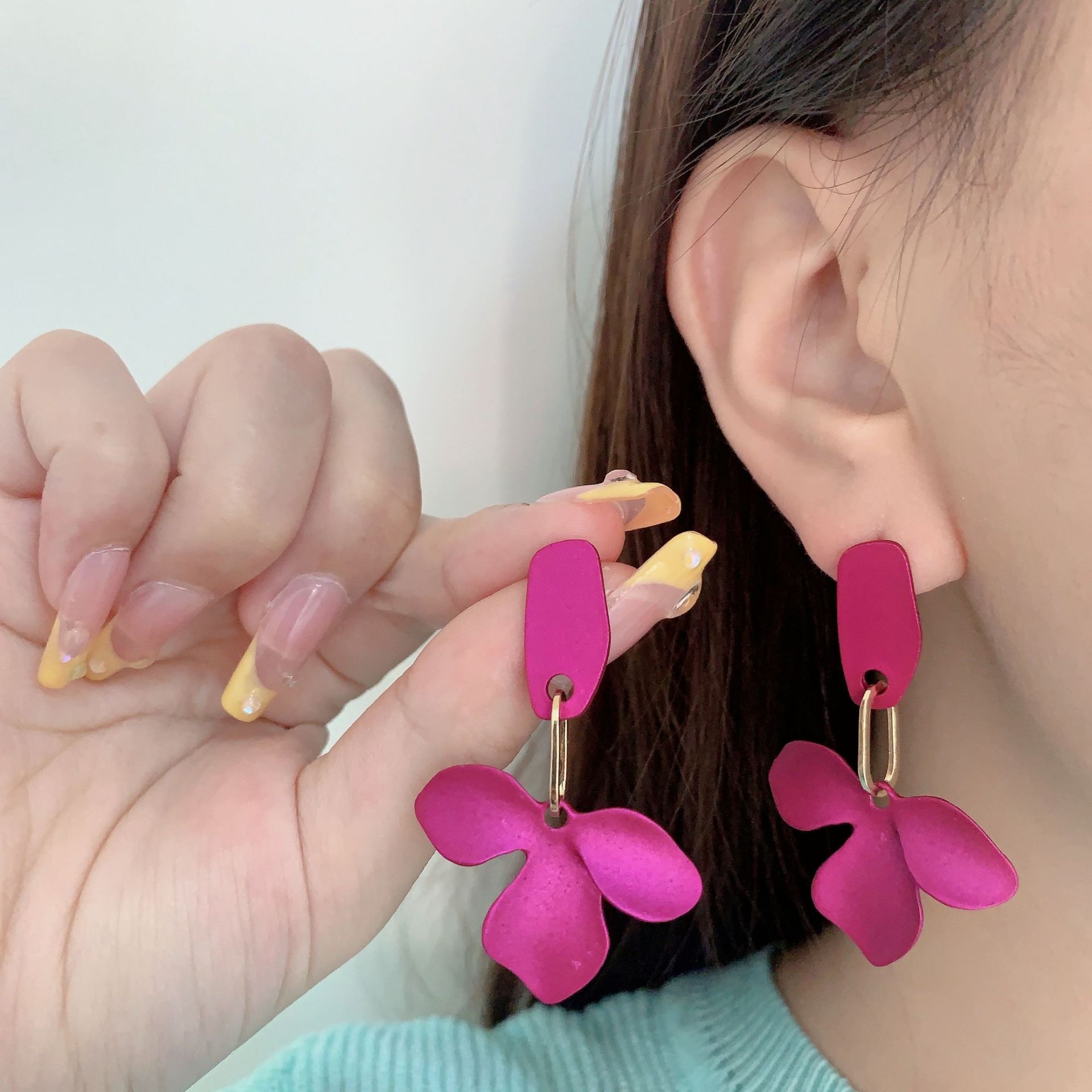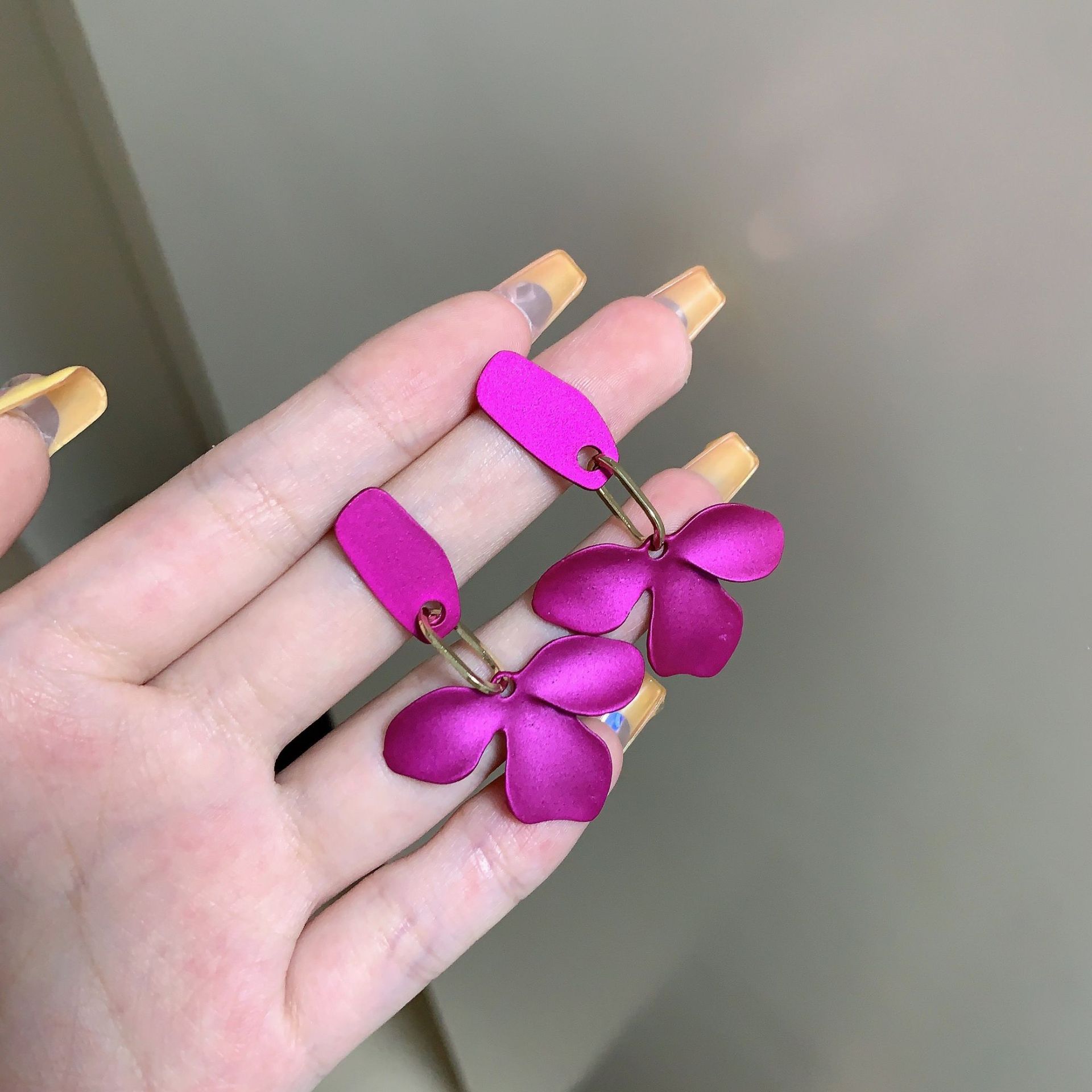 新款夸张高级感耳环气质设计感紫色花瓣耳坠耳饰潮流款女独特大气