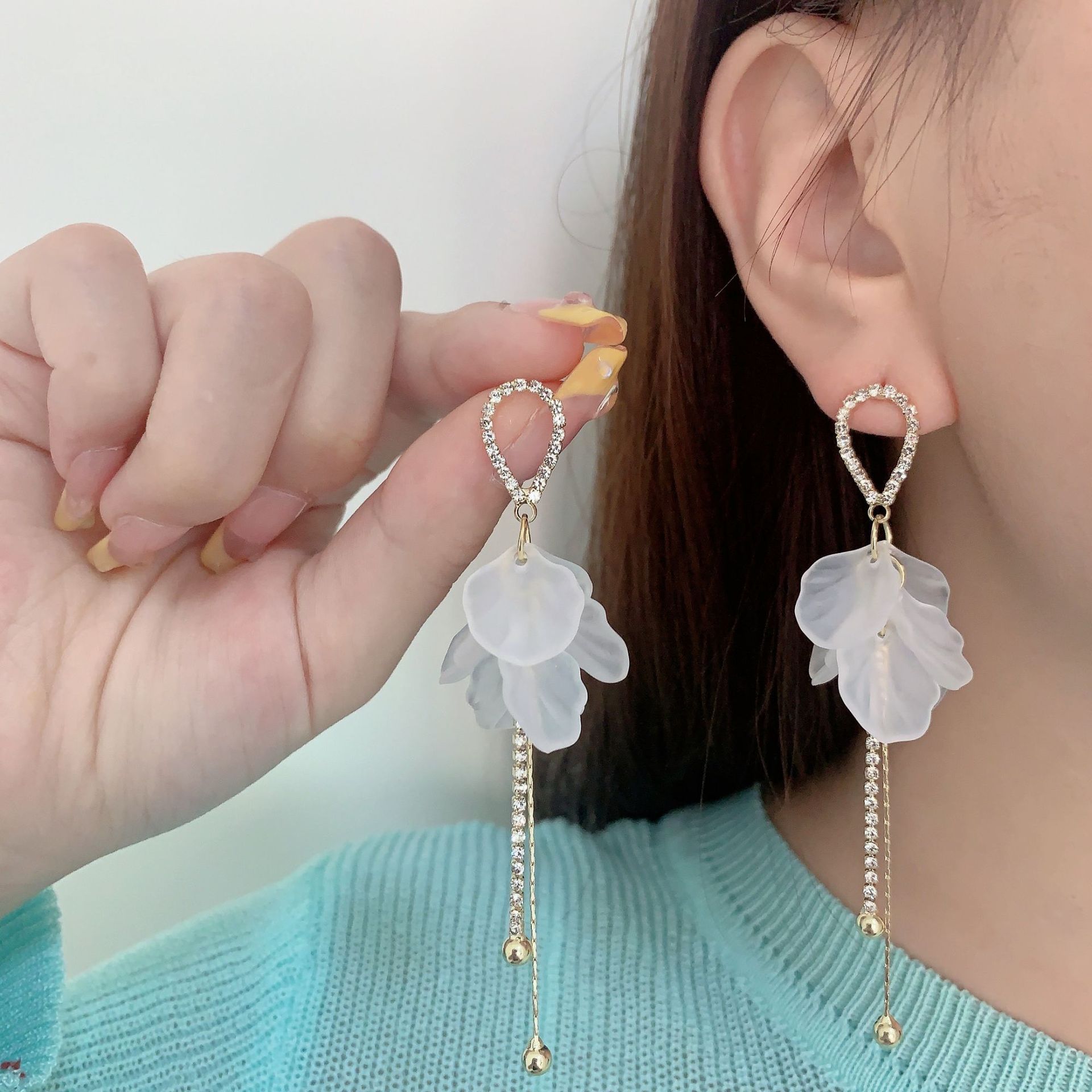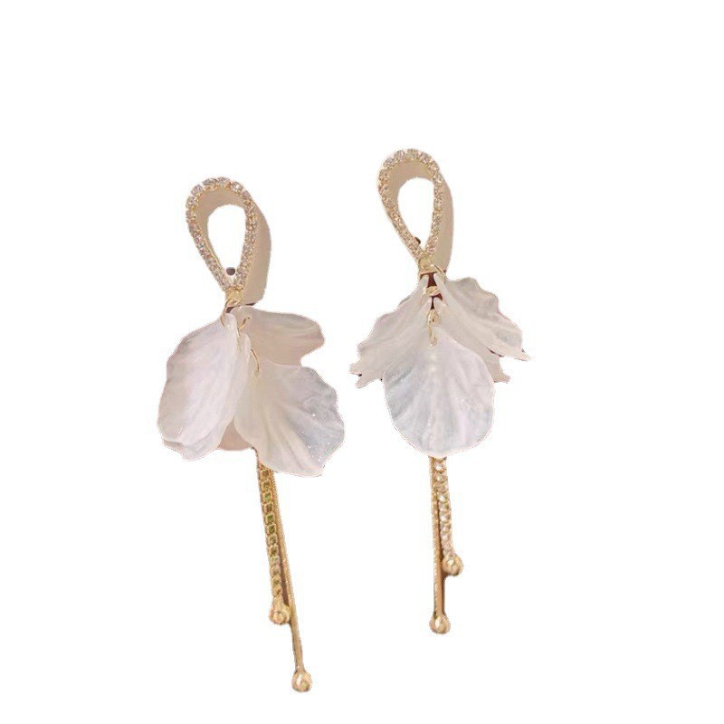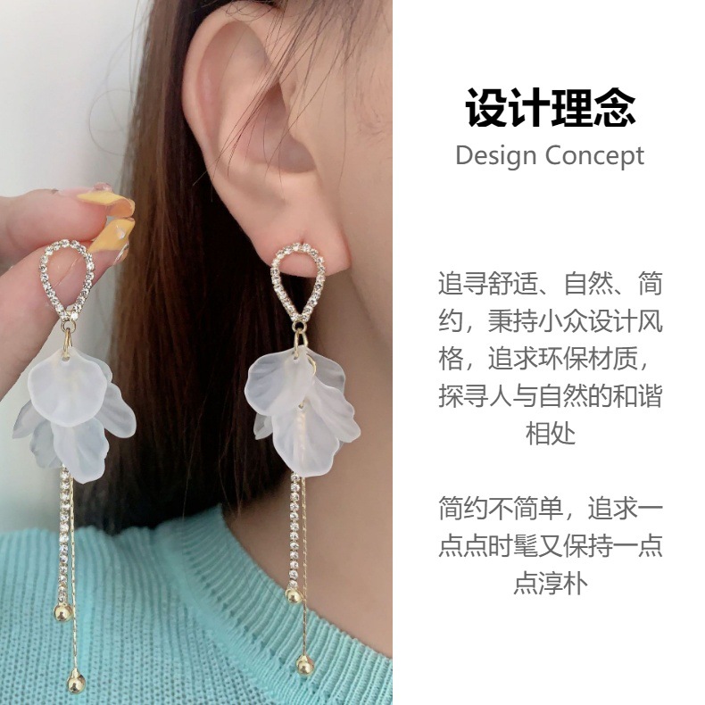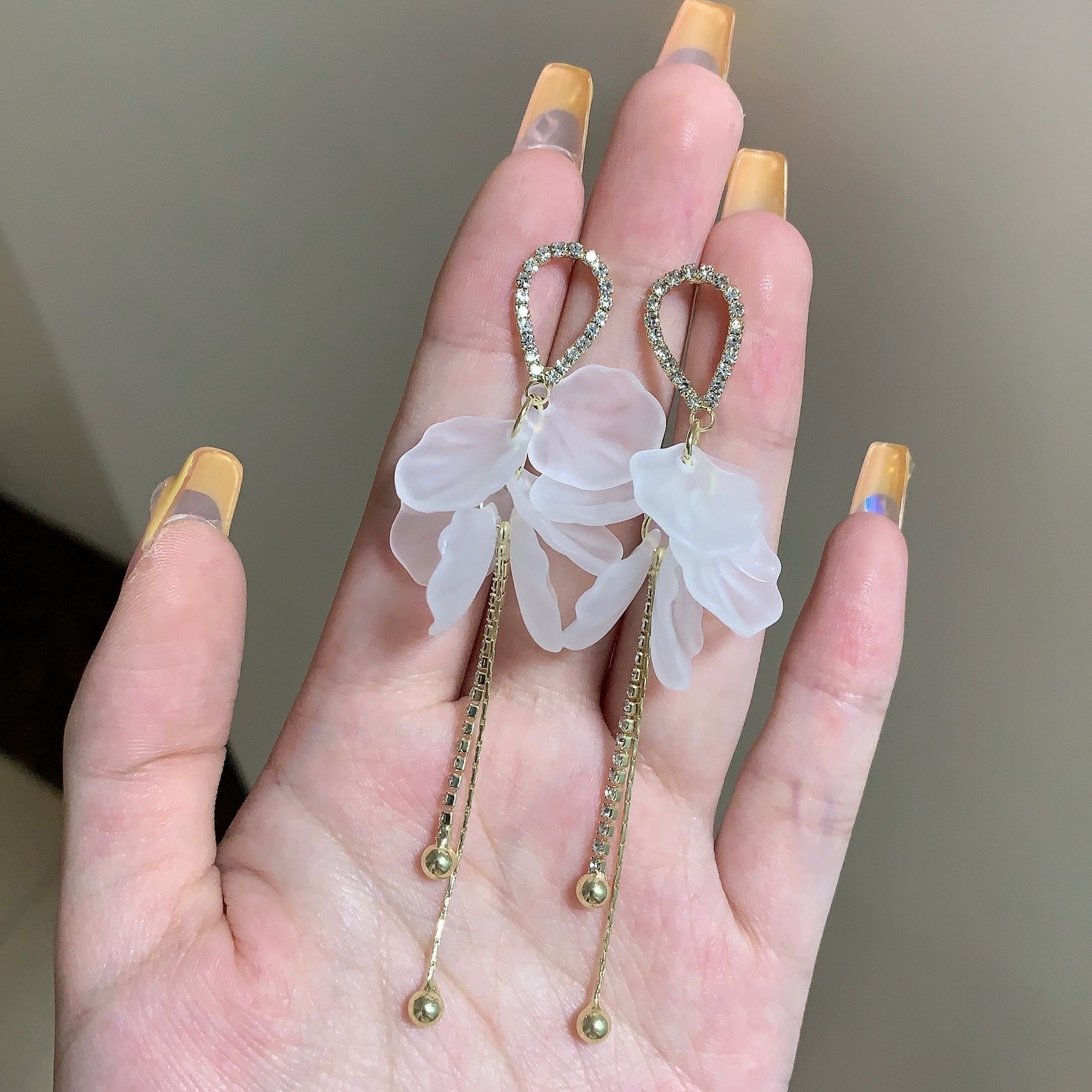 韩国白花瓣流苏气质时尚长款耳环甜美超仙简约小清新银针耳钉耳饰