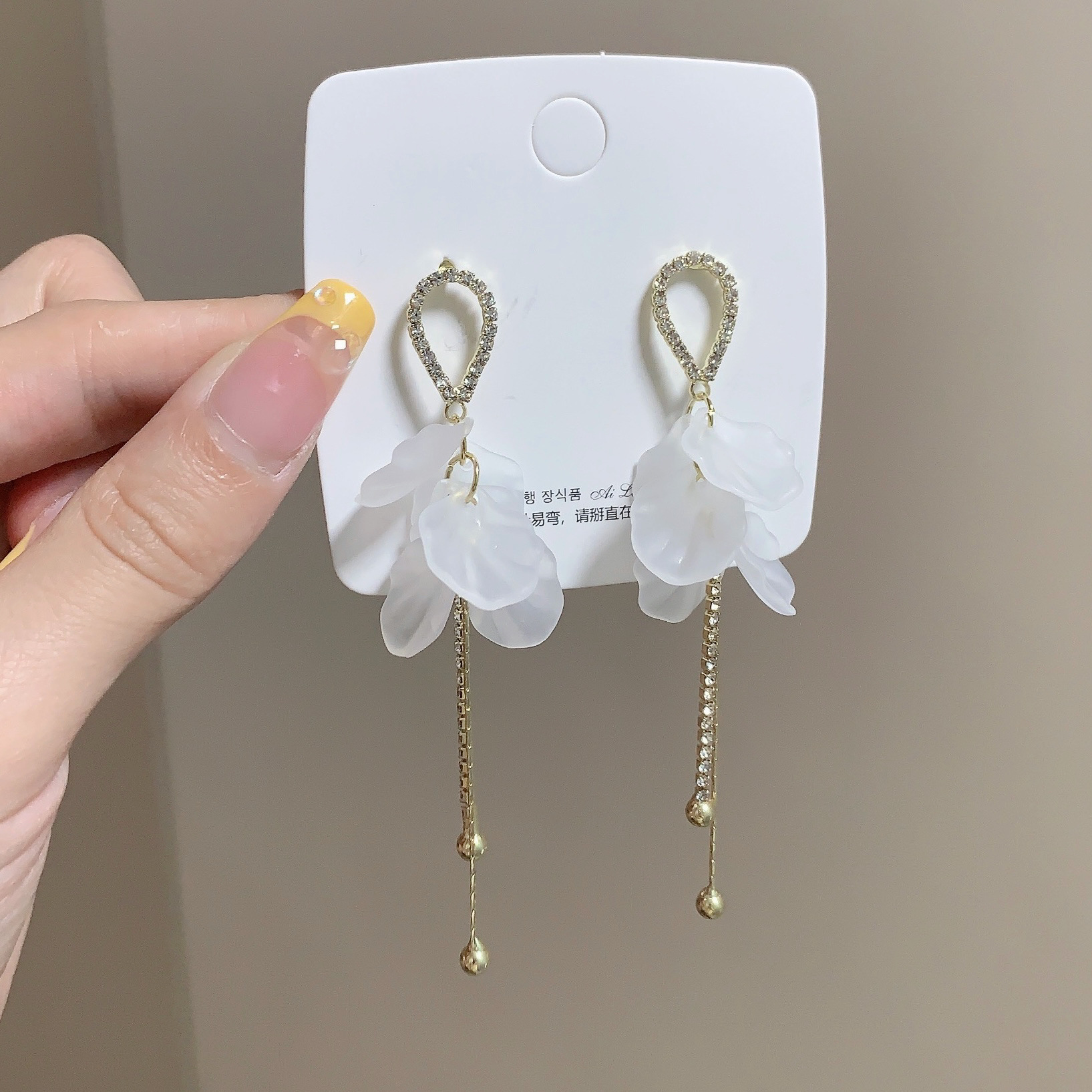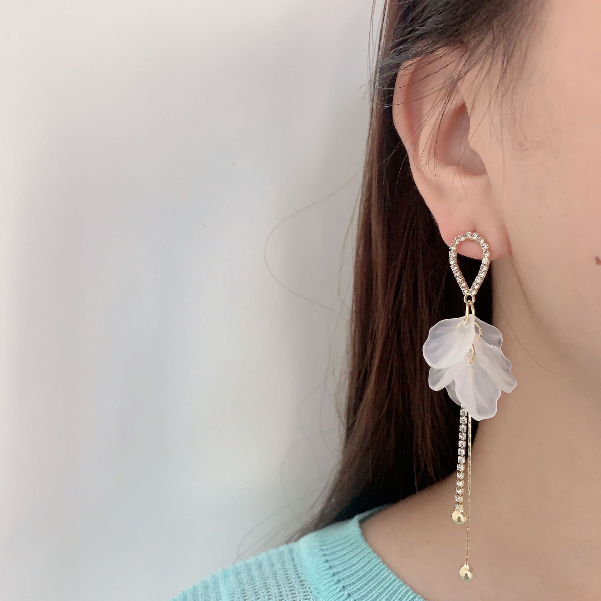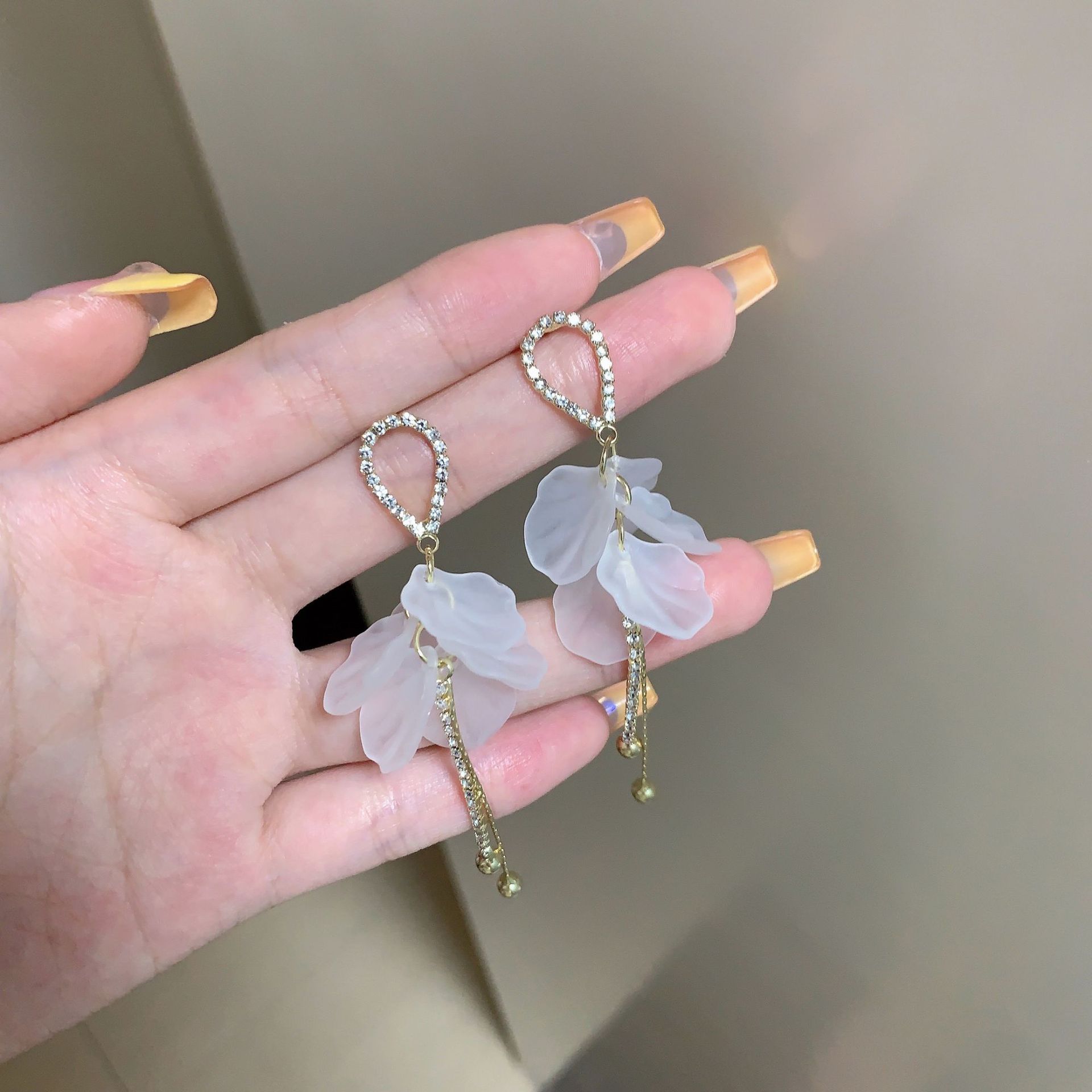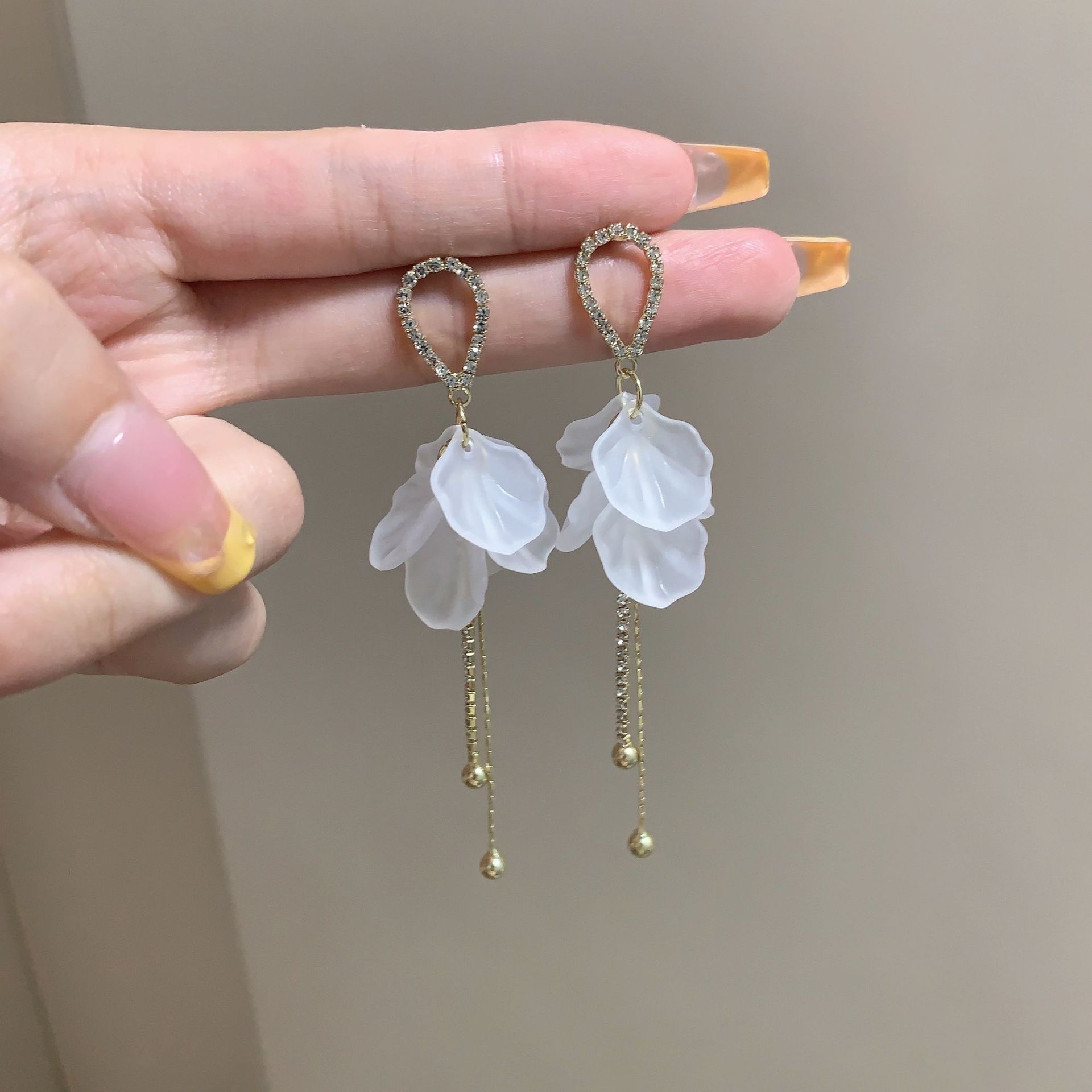 韩国白花瓣流苏气质时尚长款耳环甜美超仙简约小清新银针耳钉耳饰