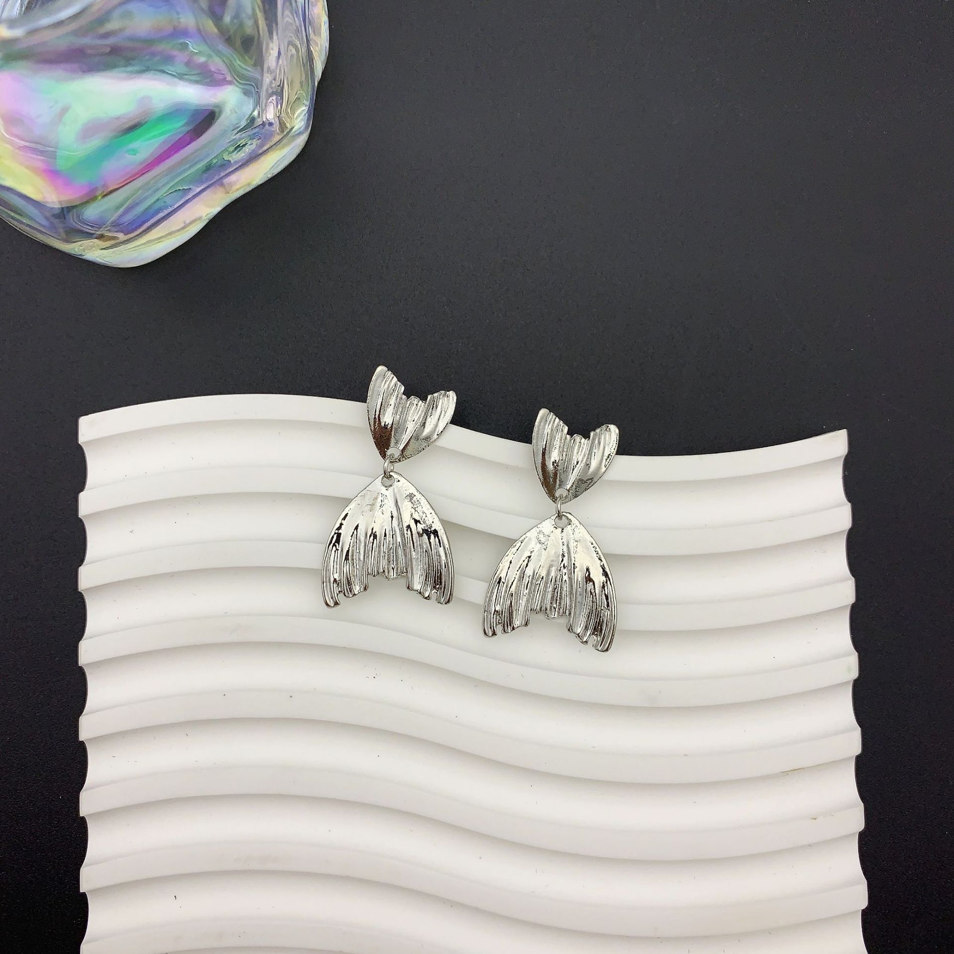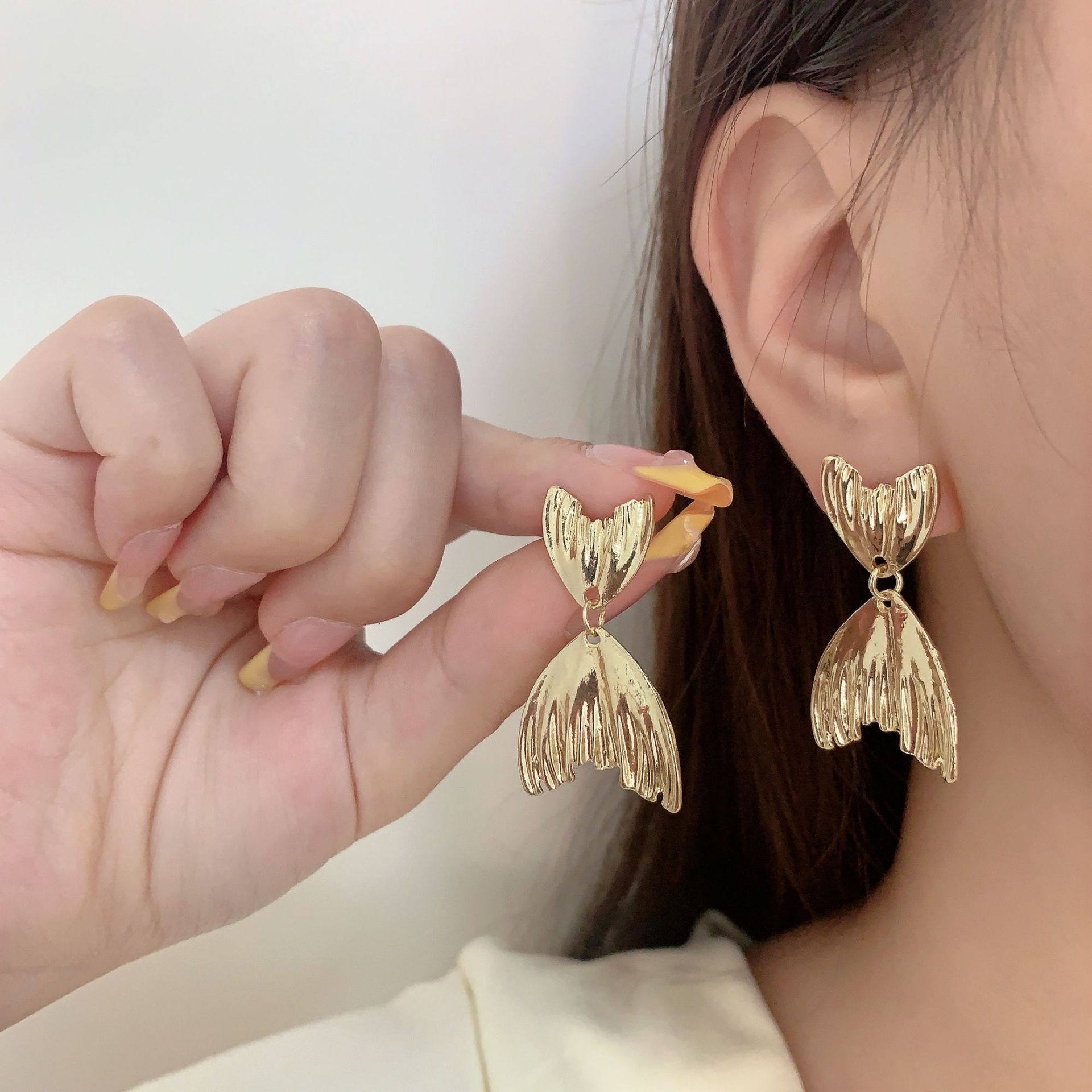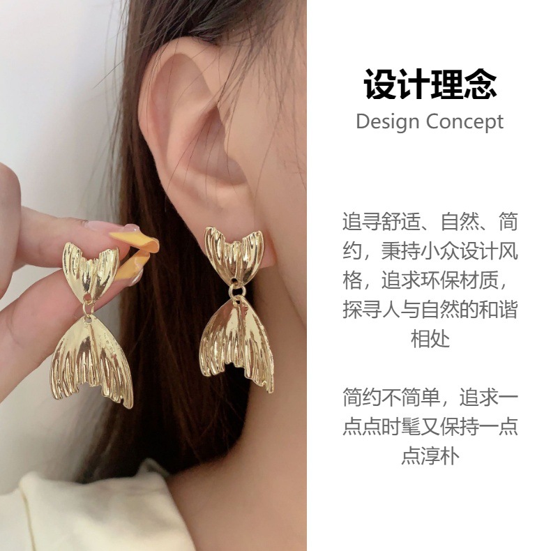 银针个性冷淡风鱼尾耳环时尚潮小众设计感耳钉简约百搭耳饰批发女