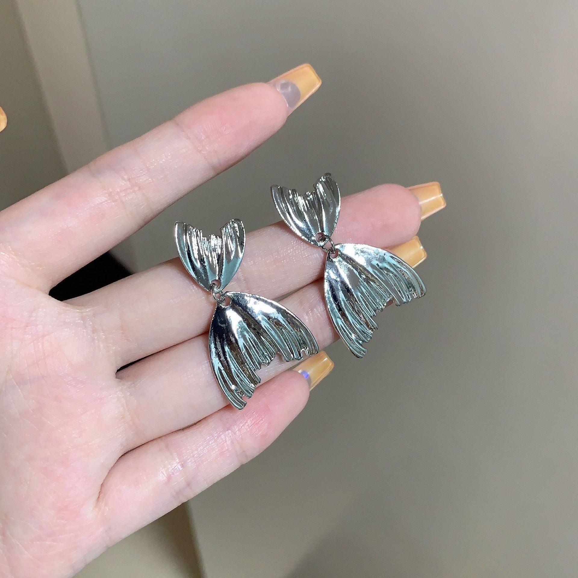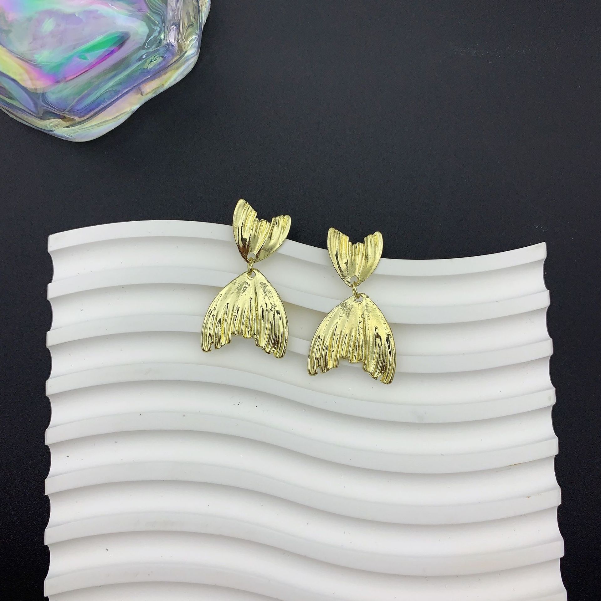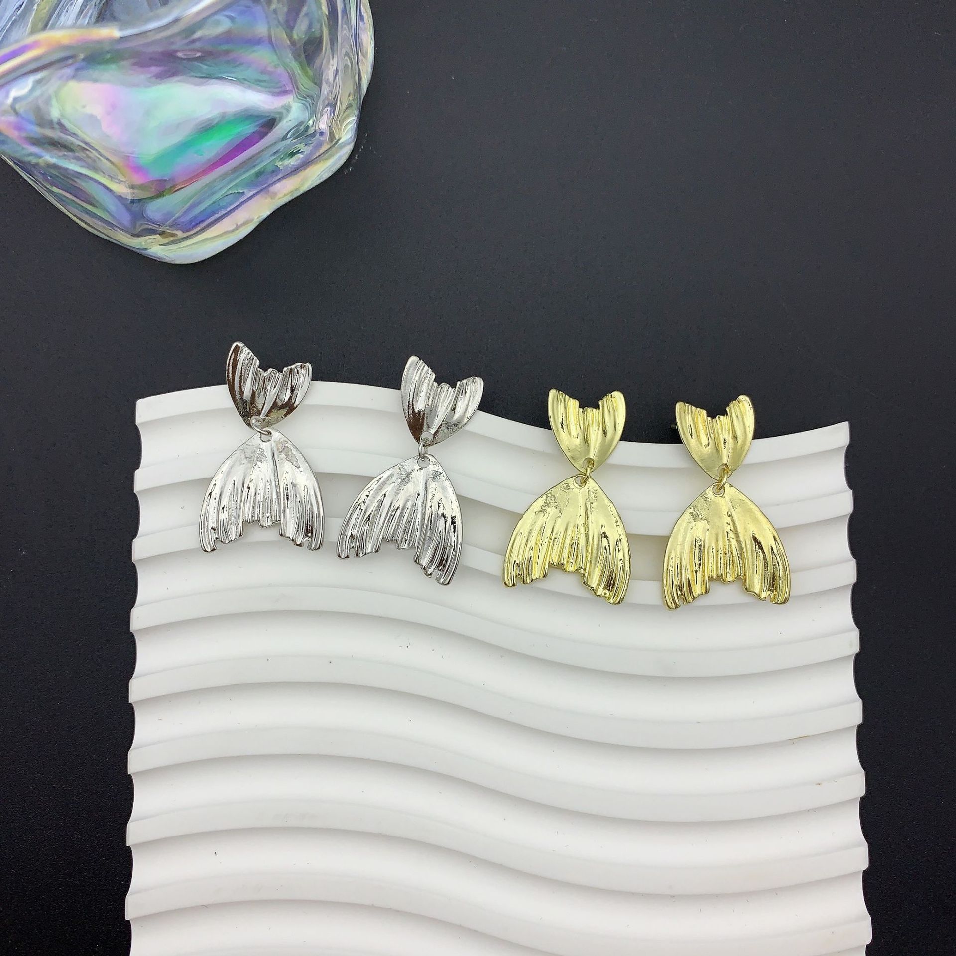 银针个性冷淡风鱼尾耳环时尚潮小众设计感耳钉简约百搭耳饰批发女