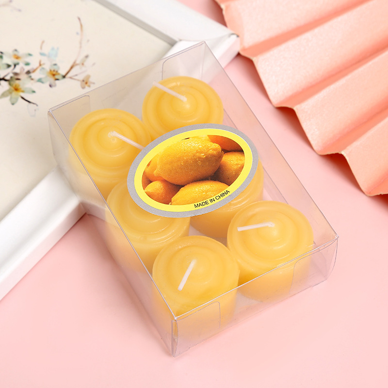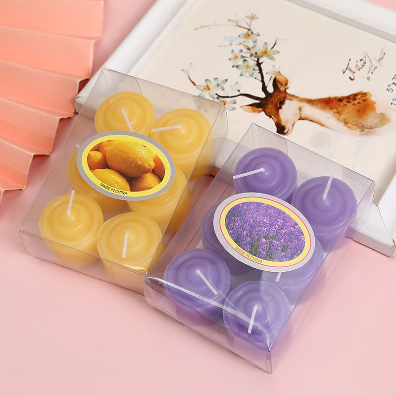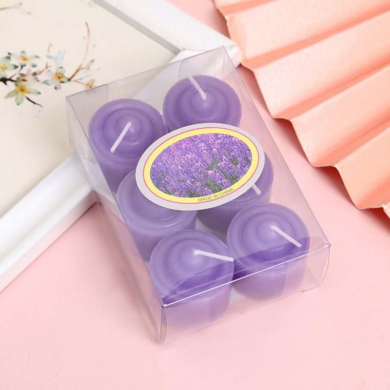 厂家批发小杯蜡烛浪漫尖头杯蜡pvc6盒装注蜡香味蜡烛批发酒店用蜡