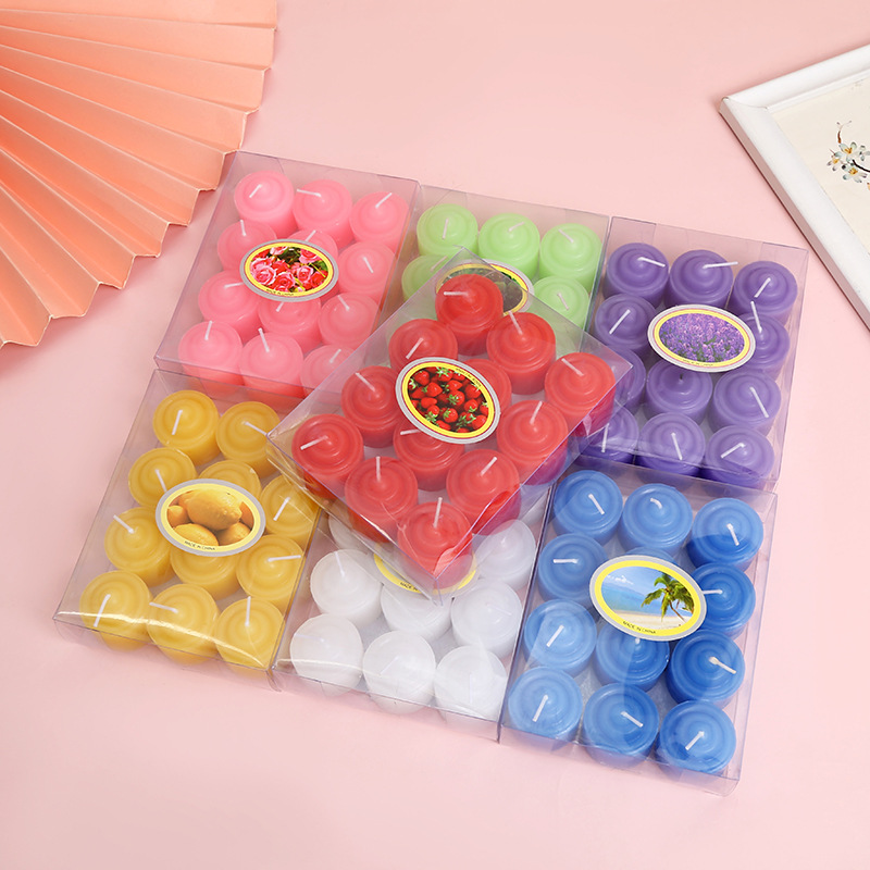 厂家批发圆形小杯蜡烛浪漫摆图无烟婚庆表白装饰石蜡透明包装