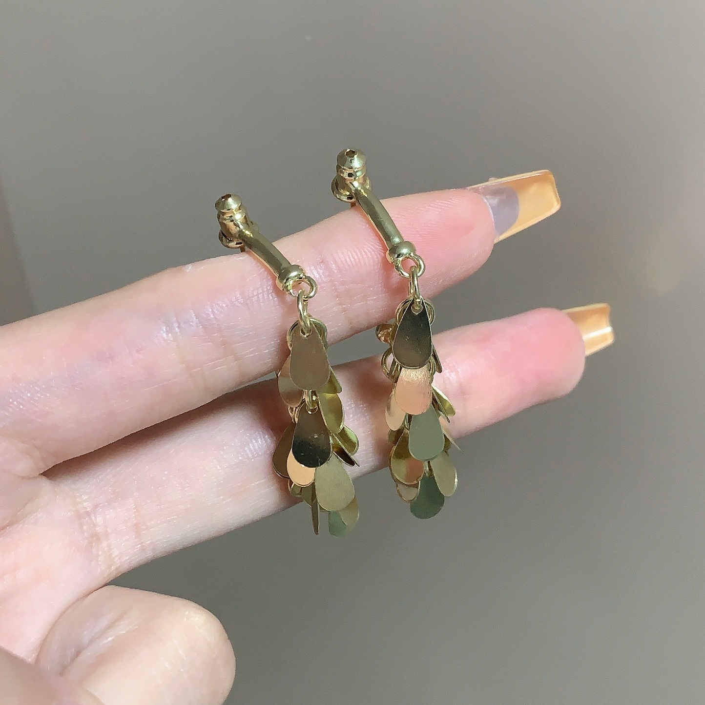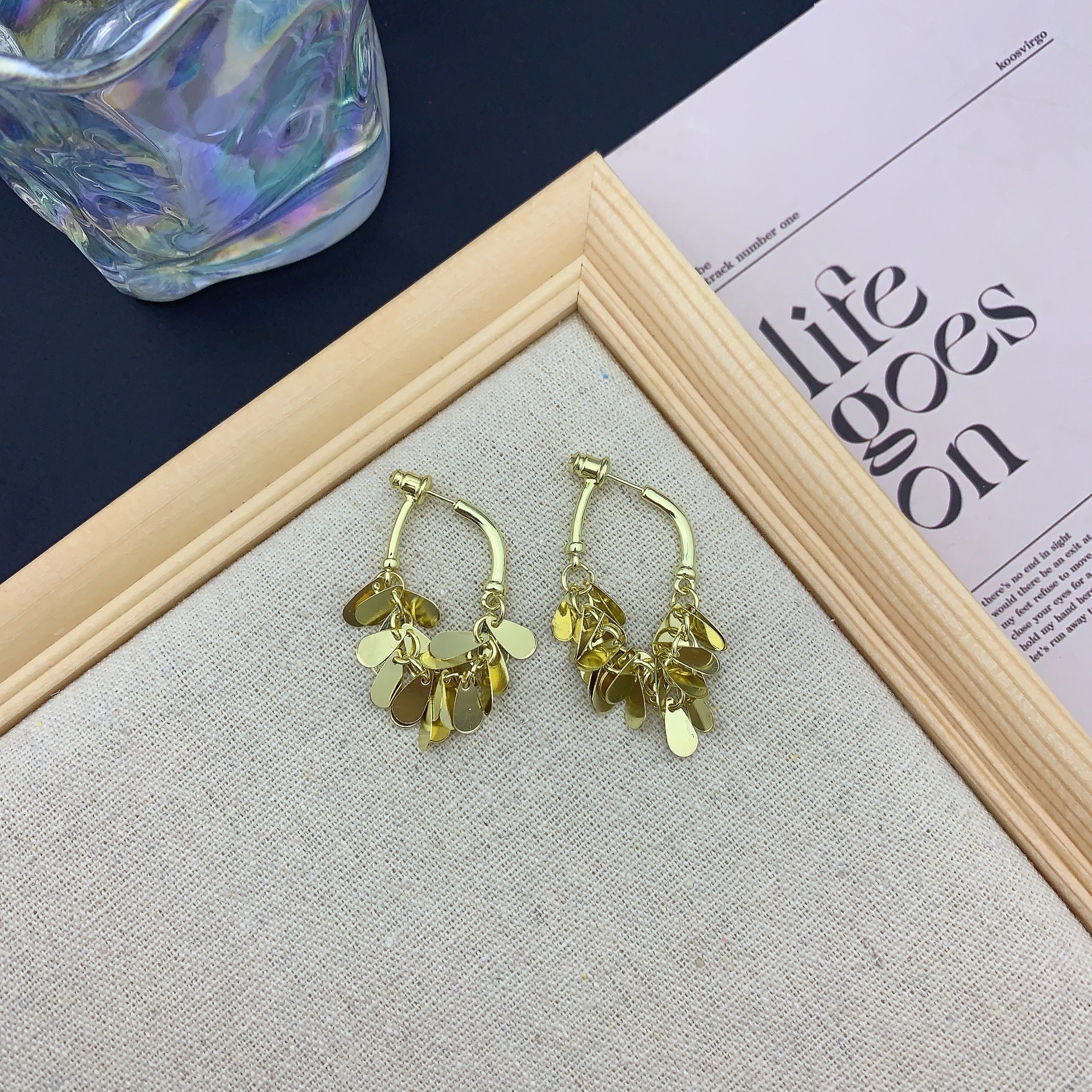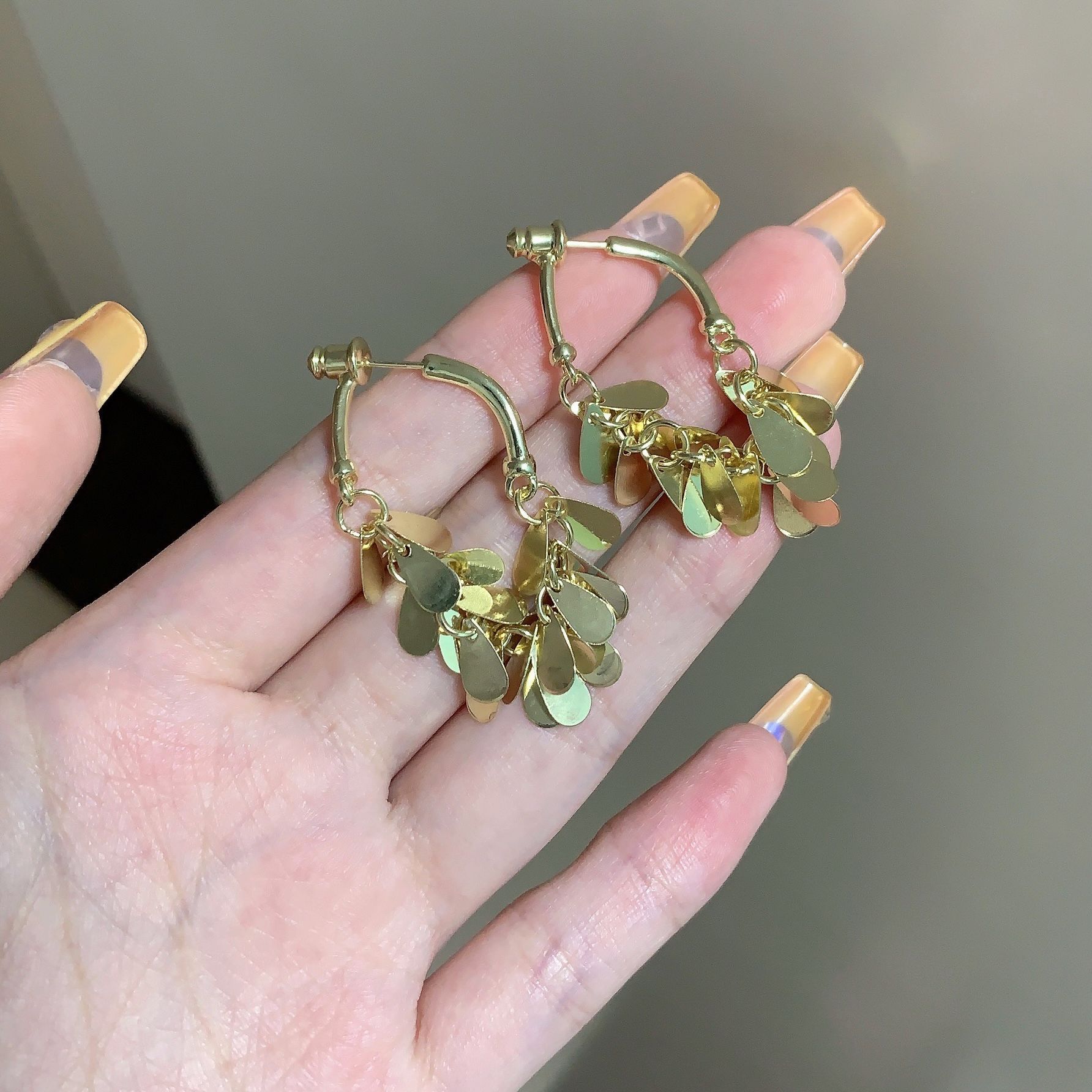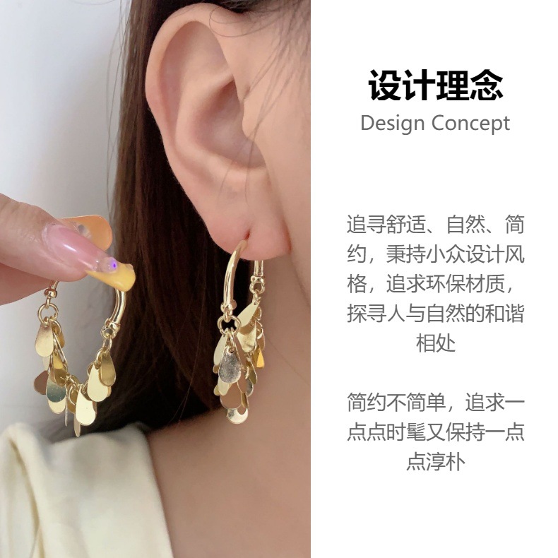 小众设计时尚气质百搭高级感显瘦亮片流苏耳钉金色流苏水滴耳环女