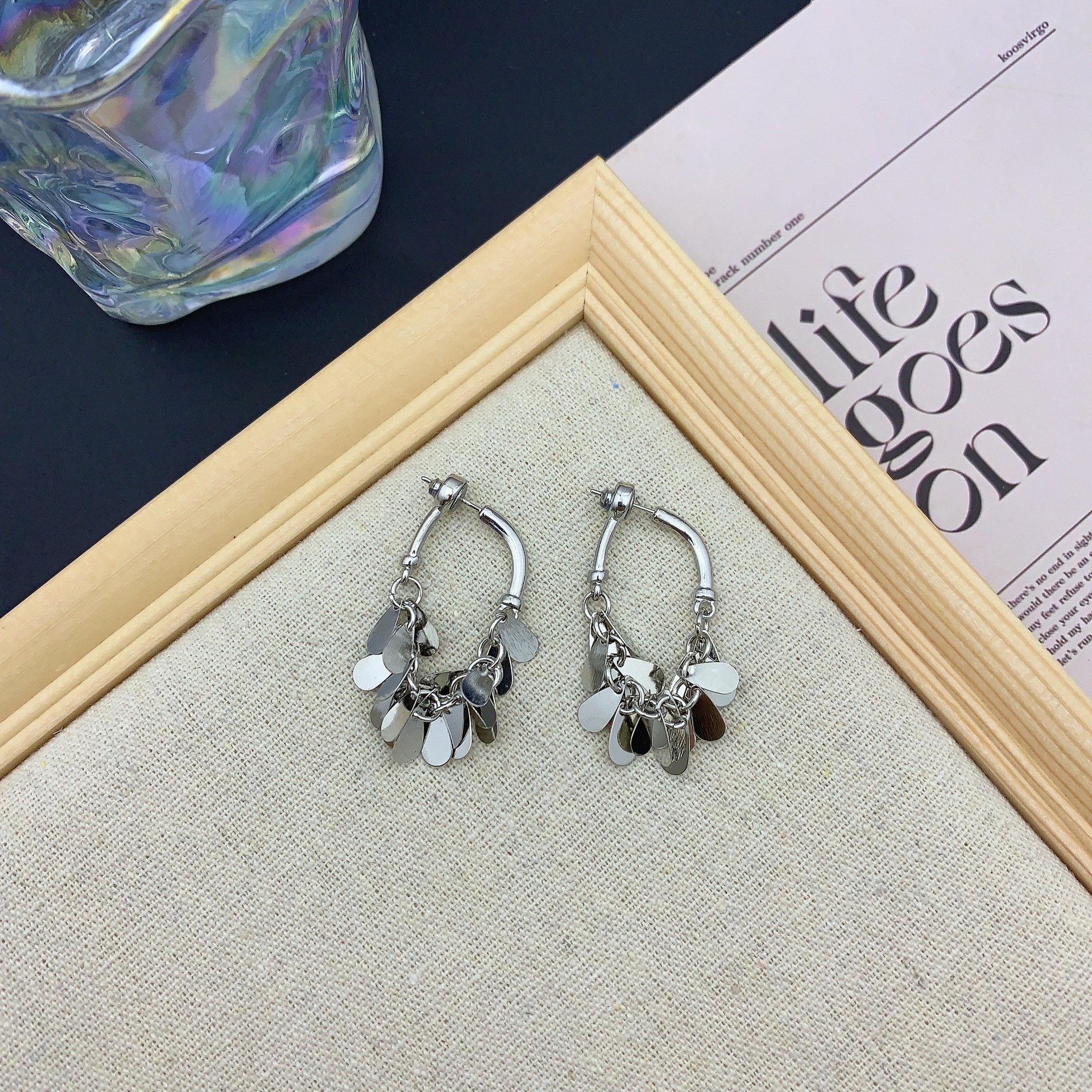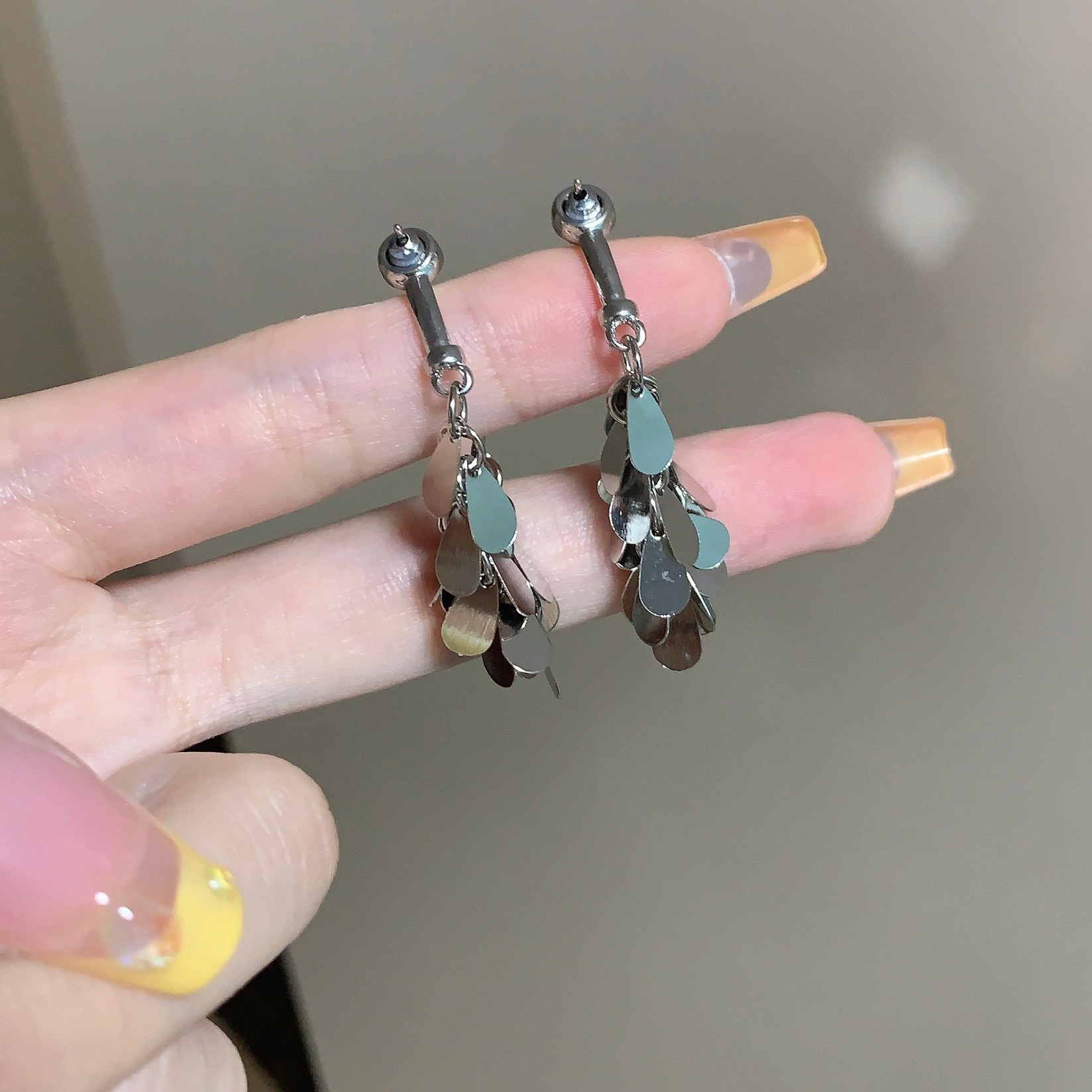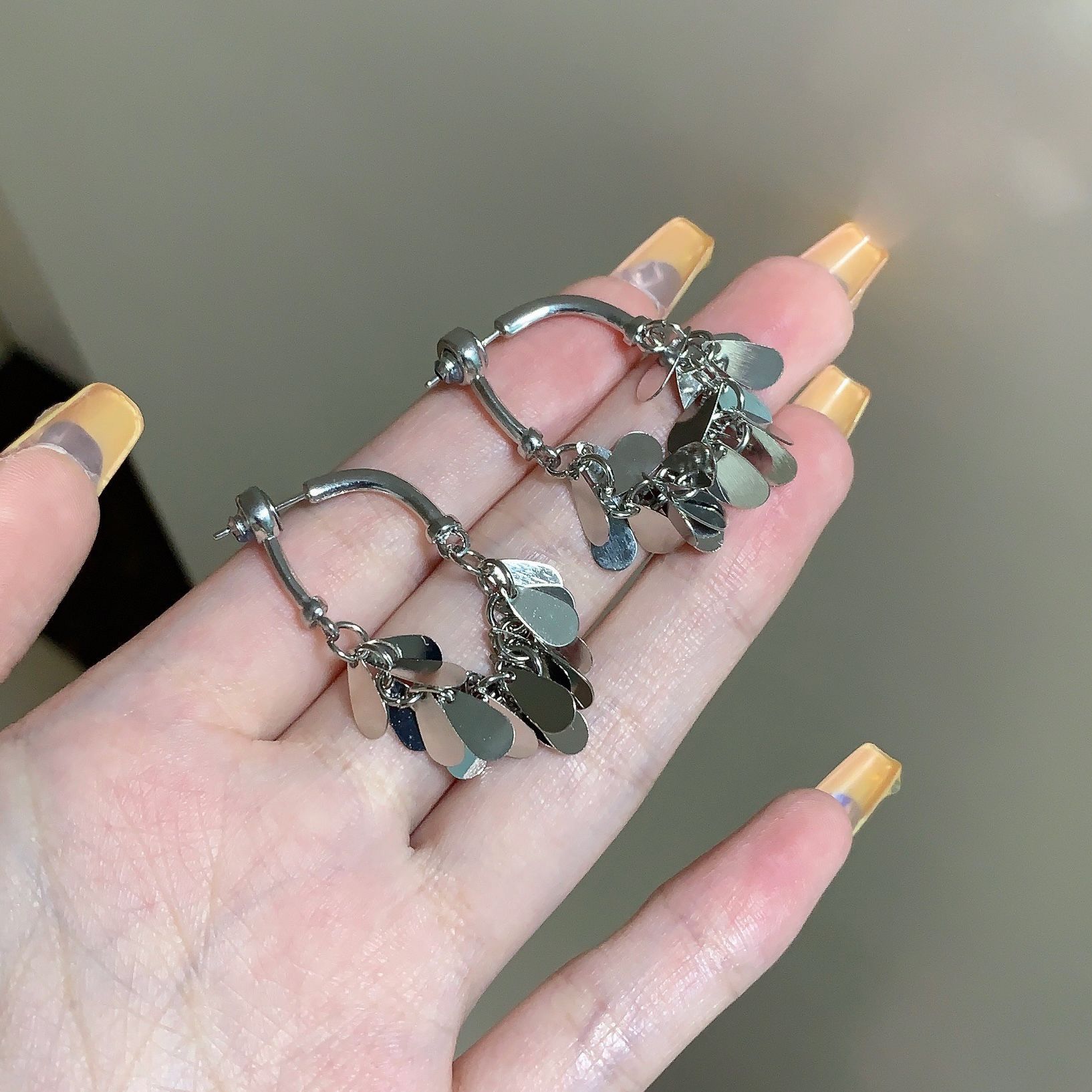 小众设计时尚气质百搭高级感显瘦亮片流苏耳钉金色流苏水滴耳环女