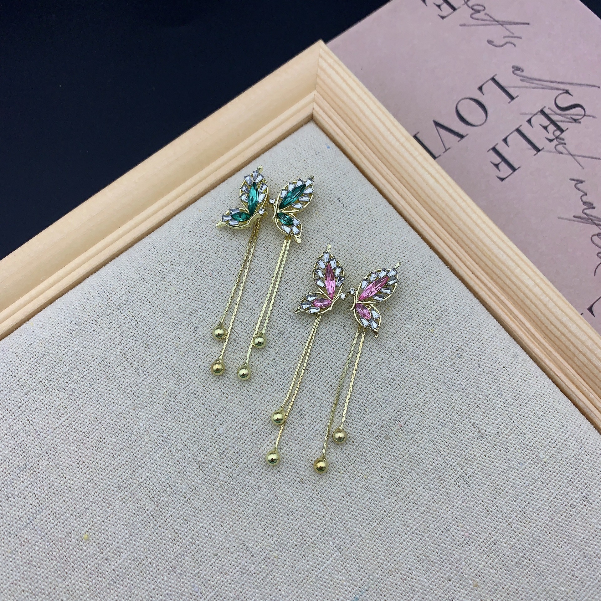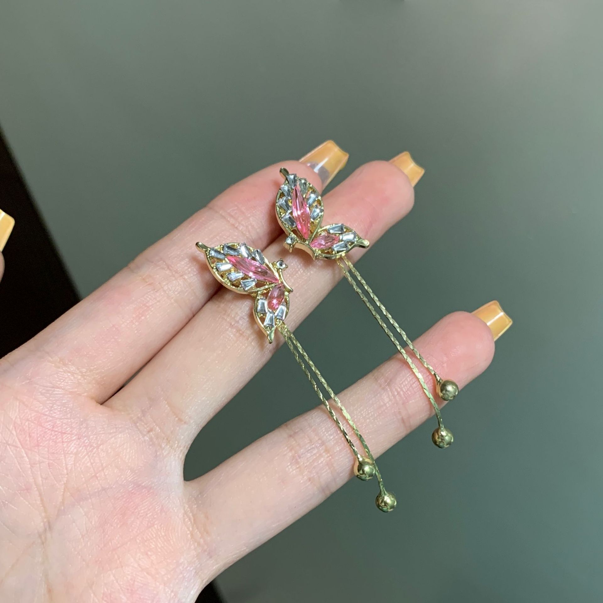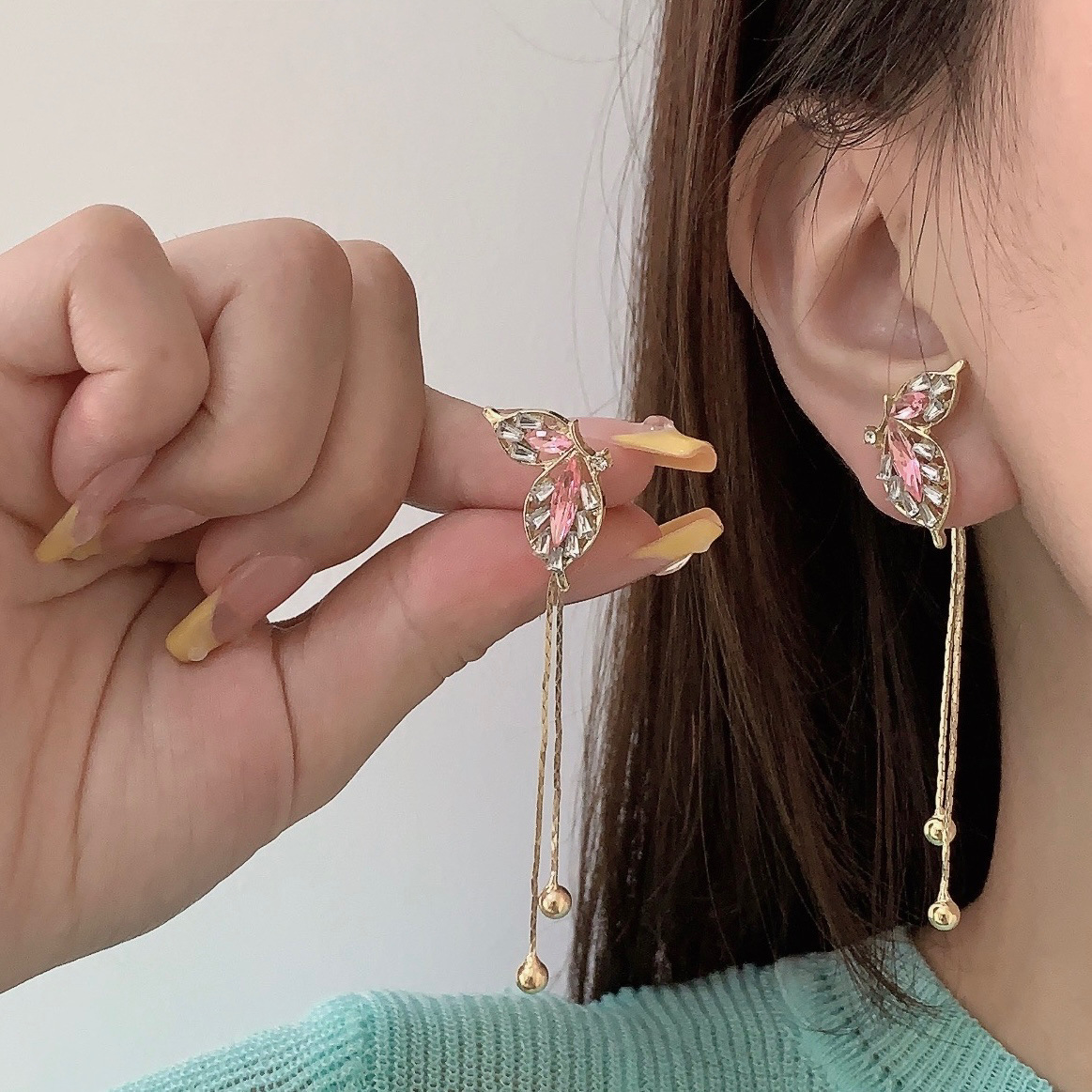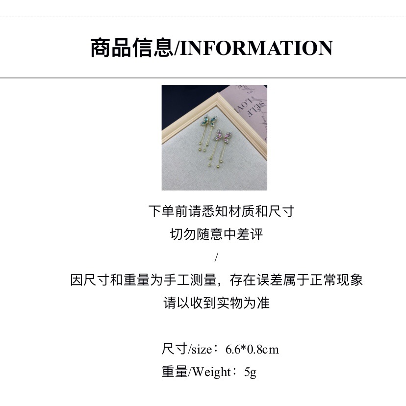 设计感韩式新款气质时尚耳饰s925银针绿色蝴蝶翅膀流苏耳钉女耳环