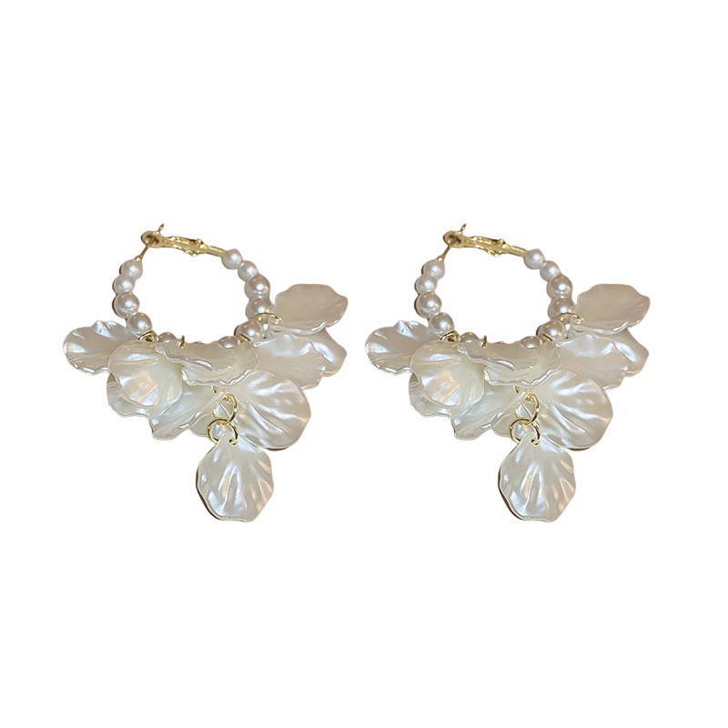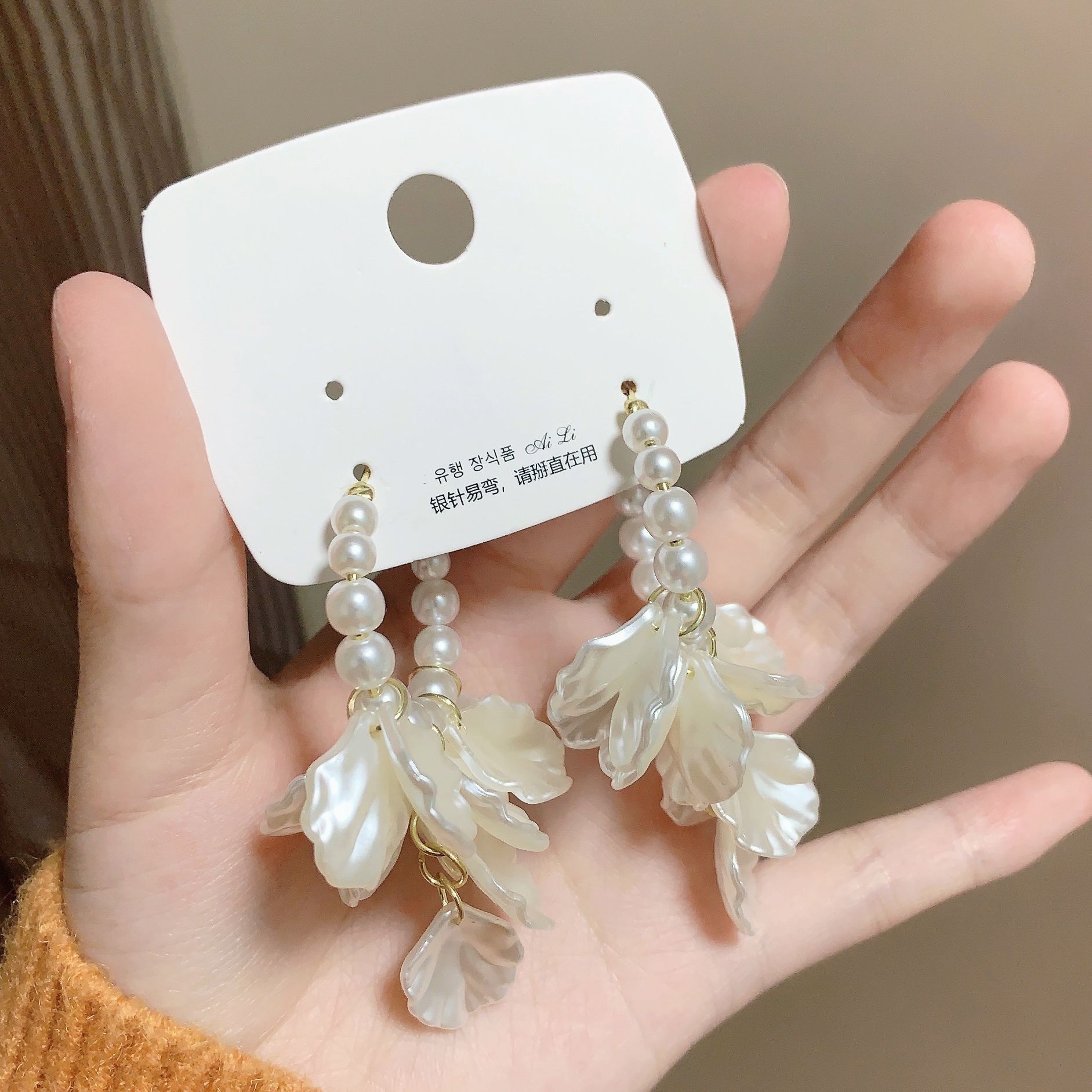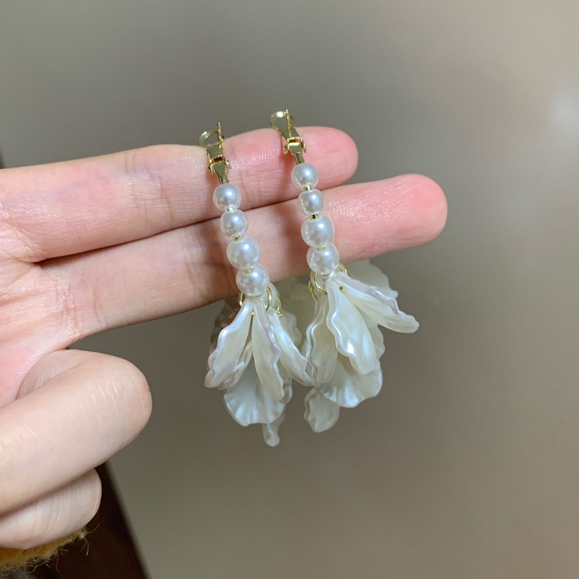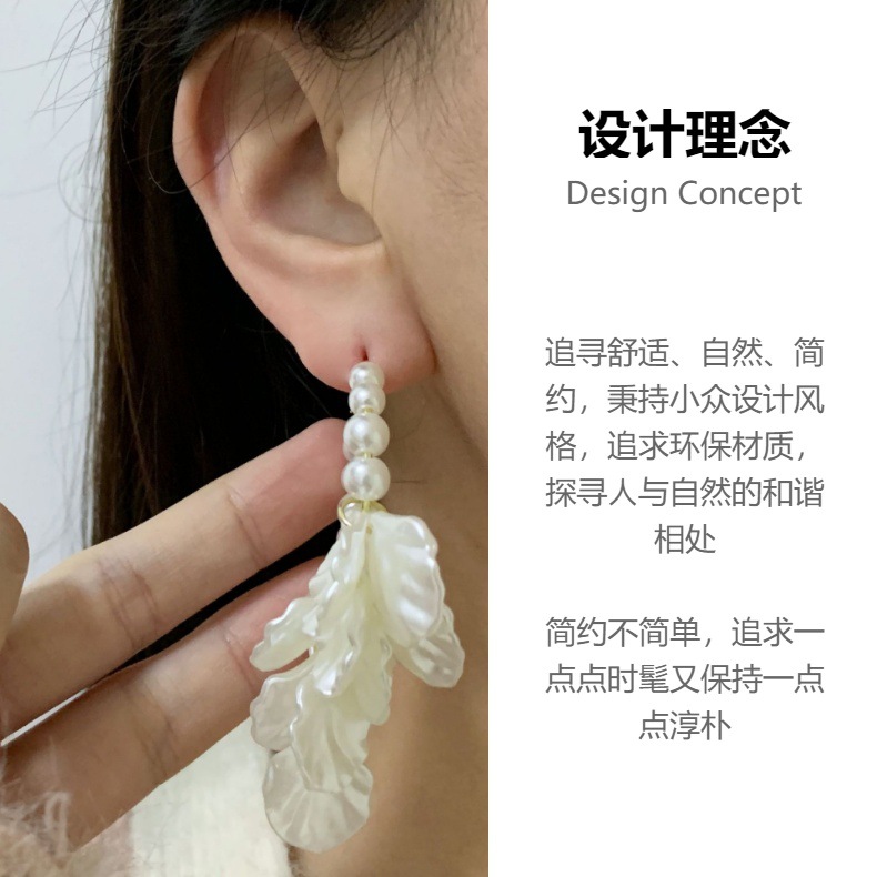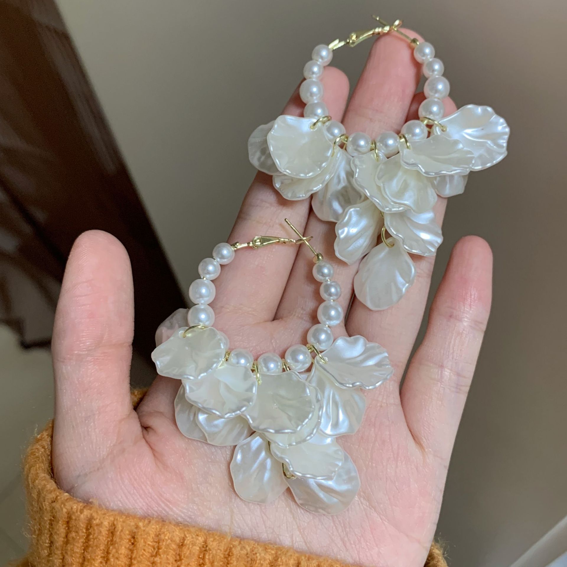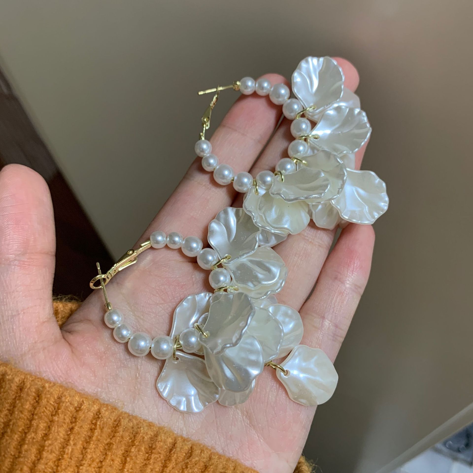 复古珍珠花瓣流苏耳环轻奢高级感小众设计耳钉直播爆款潮超仙法式