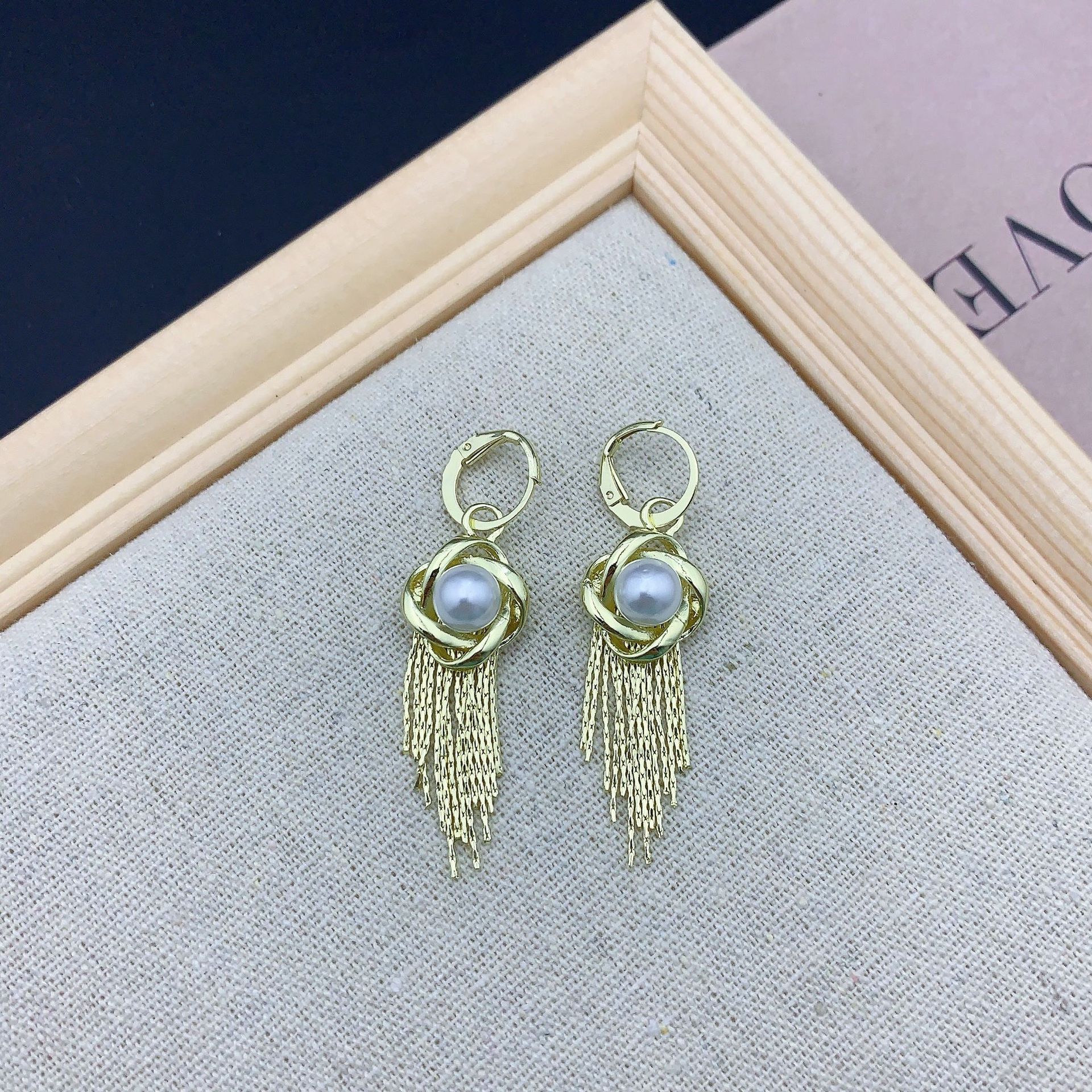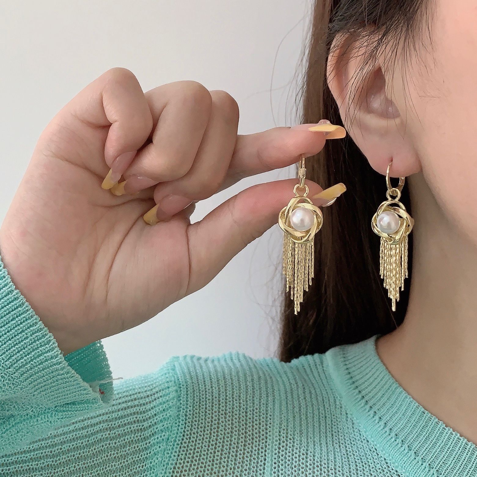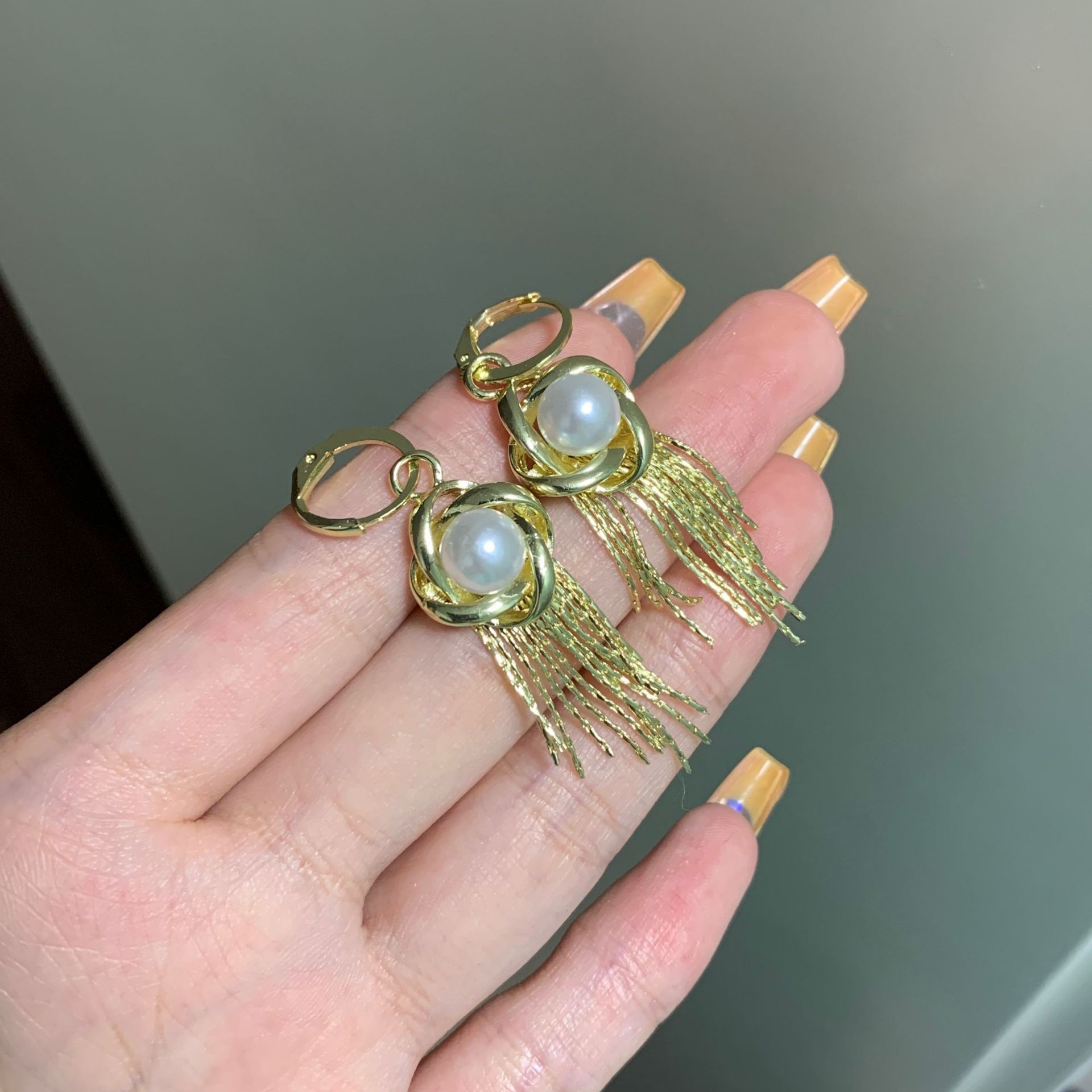 个性时尚轻奢欧美夸张金属流苏耳环女设计感缠绕花朵珍珠耳坠耳饰