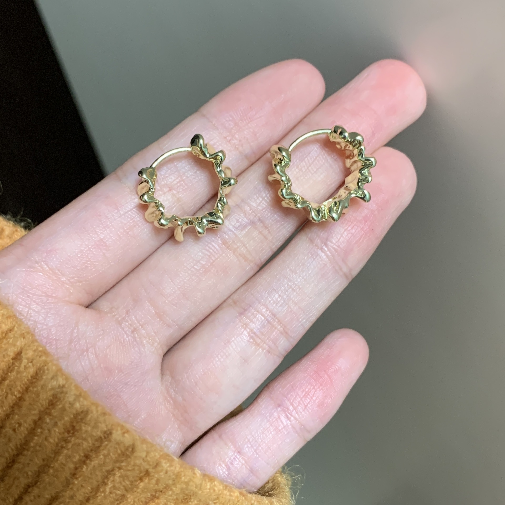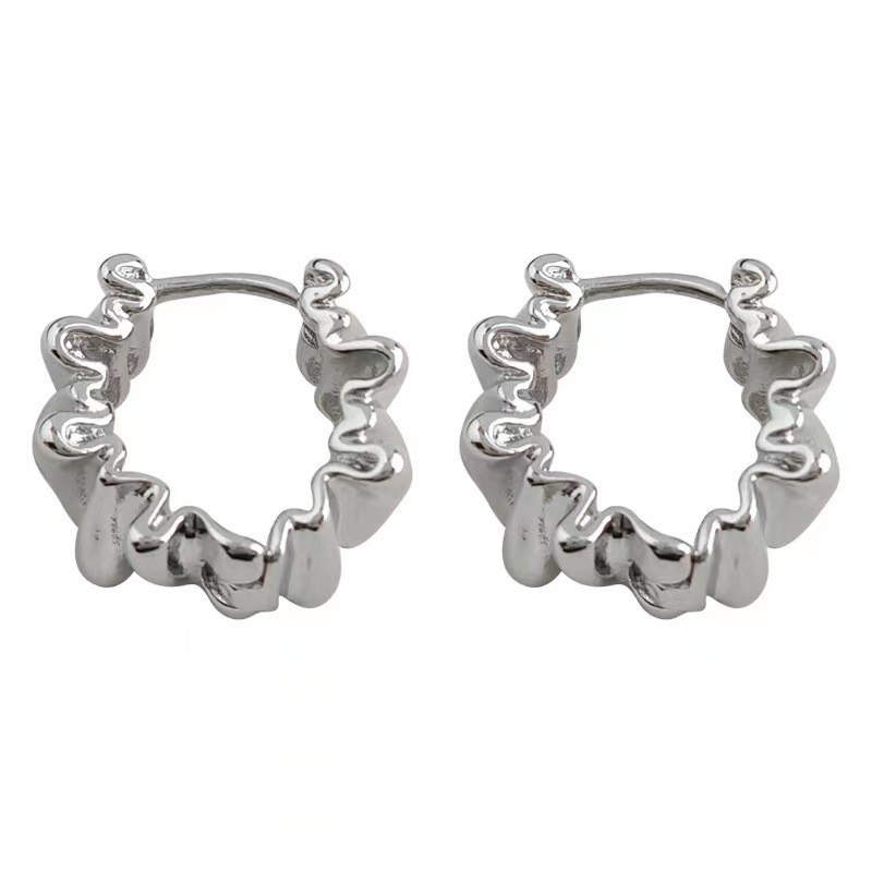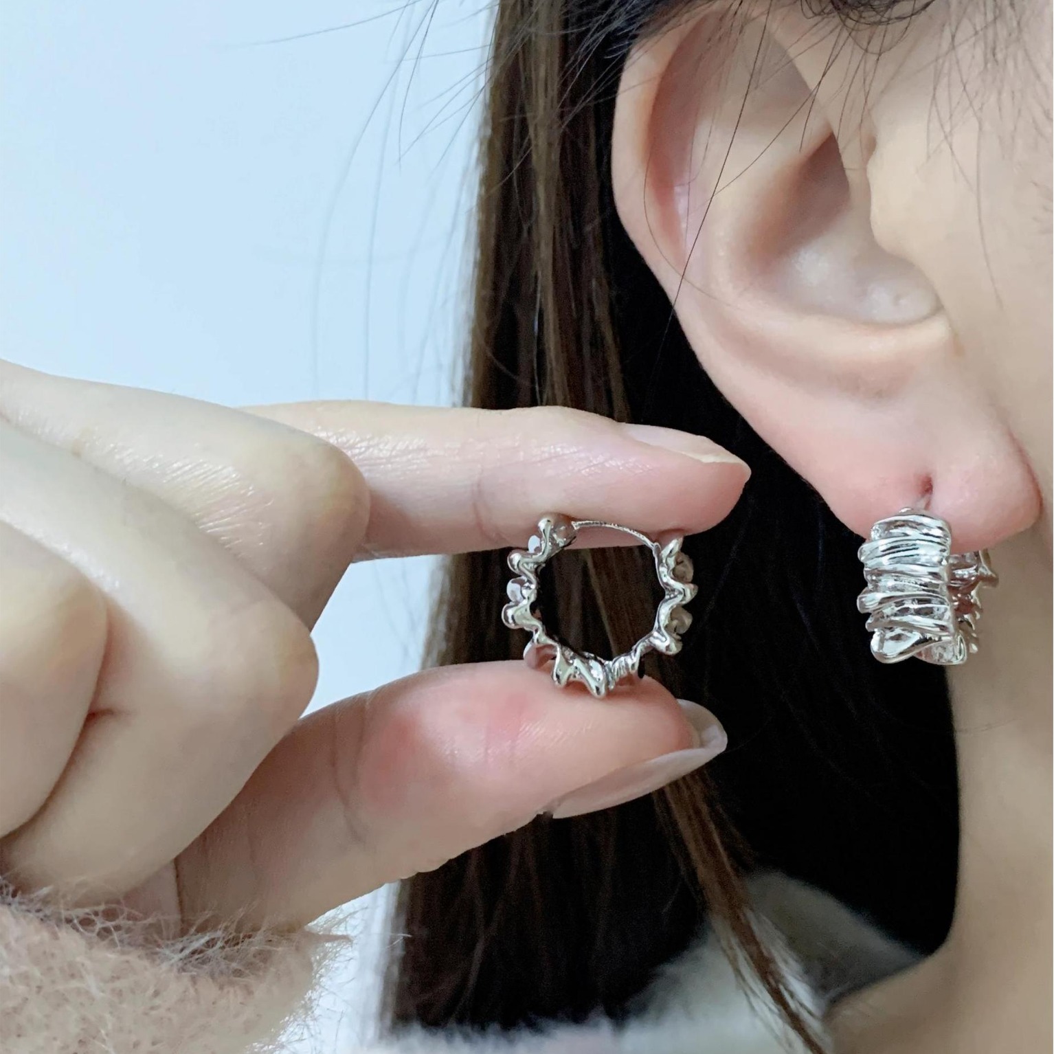 法式冷淡风小众金属嘻哈耳饰高级感不规则波浪褶皱耳圈2024新款潮