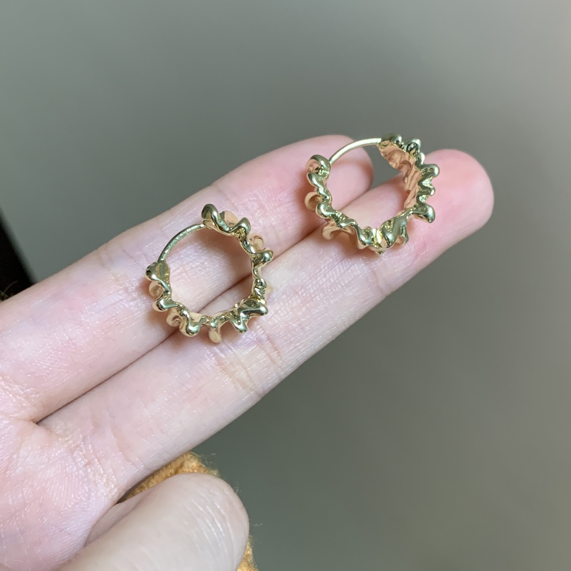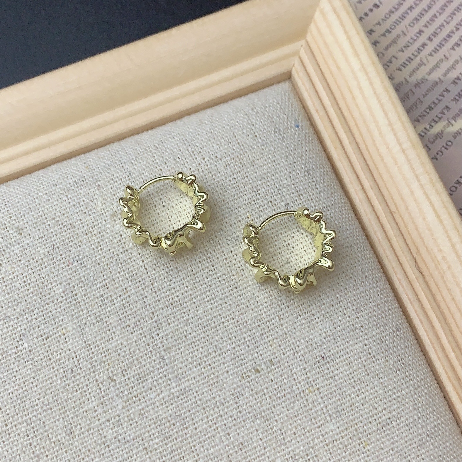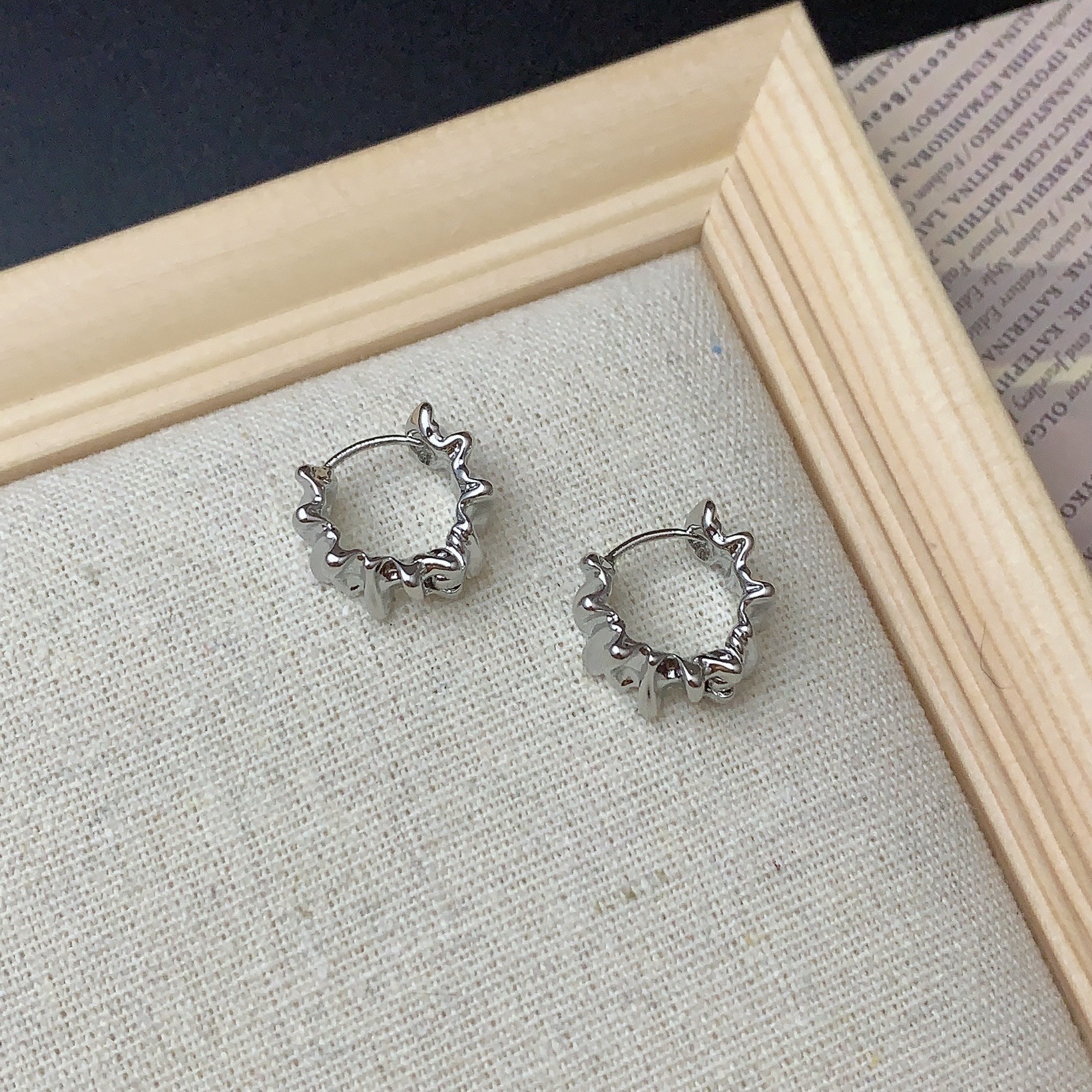 法式冷淡风小众金属嘻哈耳饰高级感不规则波浪褶皱耳圈2024新款潮