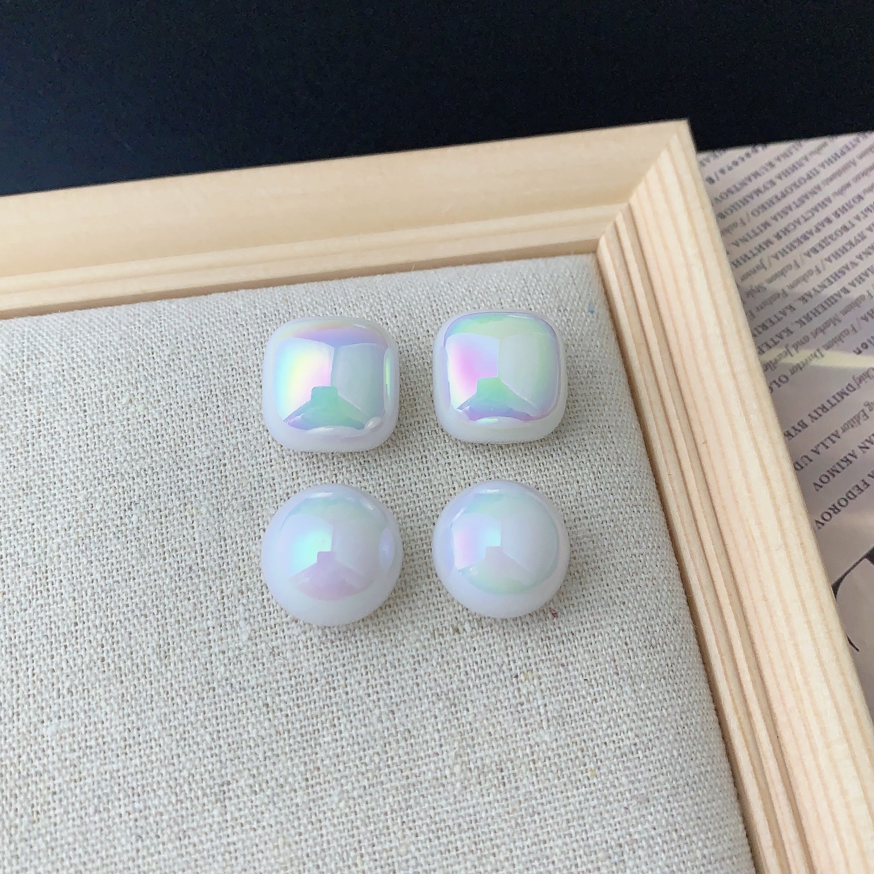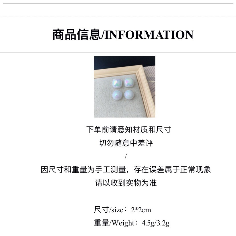 爆款高级感百搭耳环法式方形珍珠耳钉女轻奢独特气质耳饰2024新款