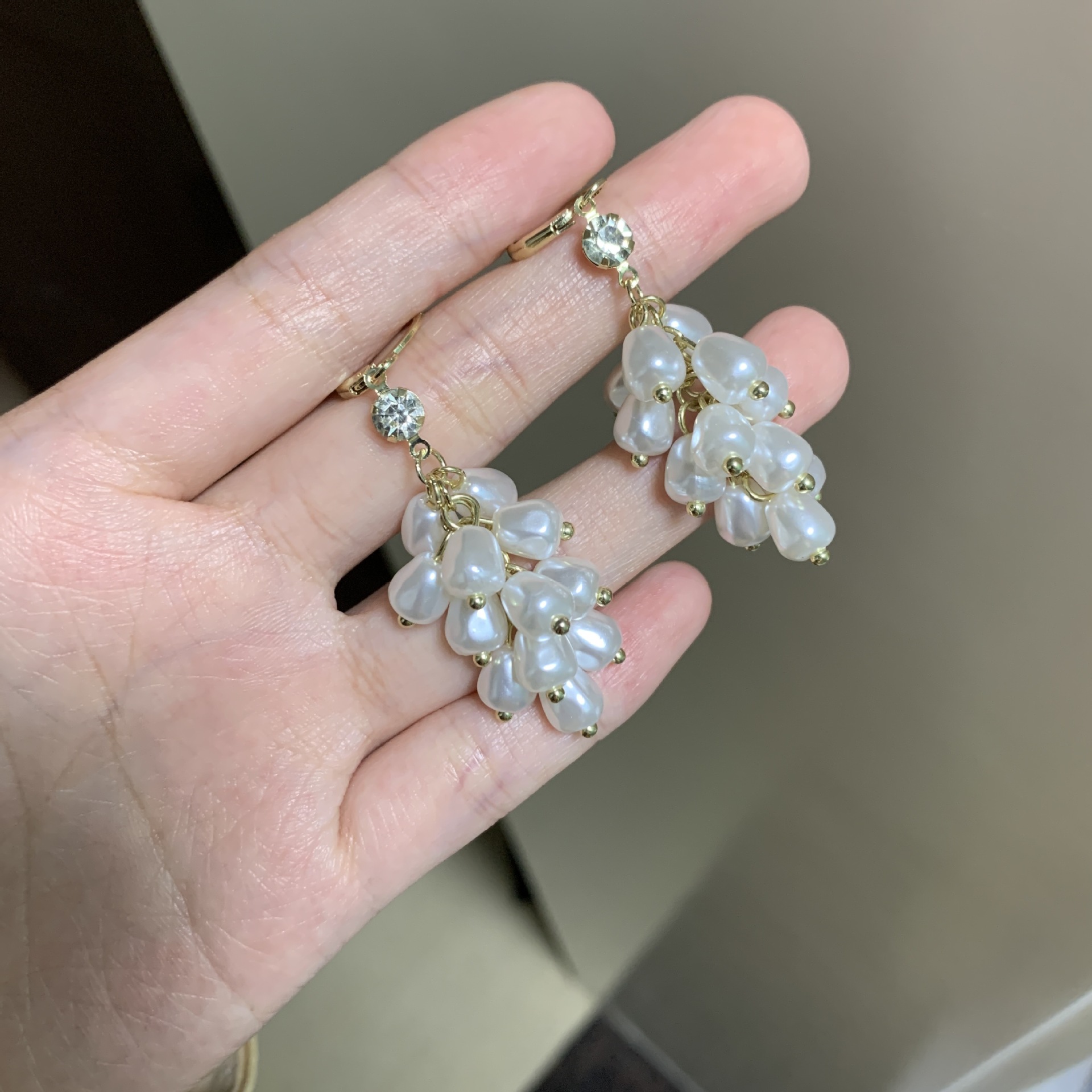 2024年新款葡萄珍珠耳环女夸张气质小众设计感潮高级气质大气耳坠