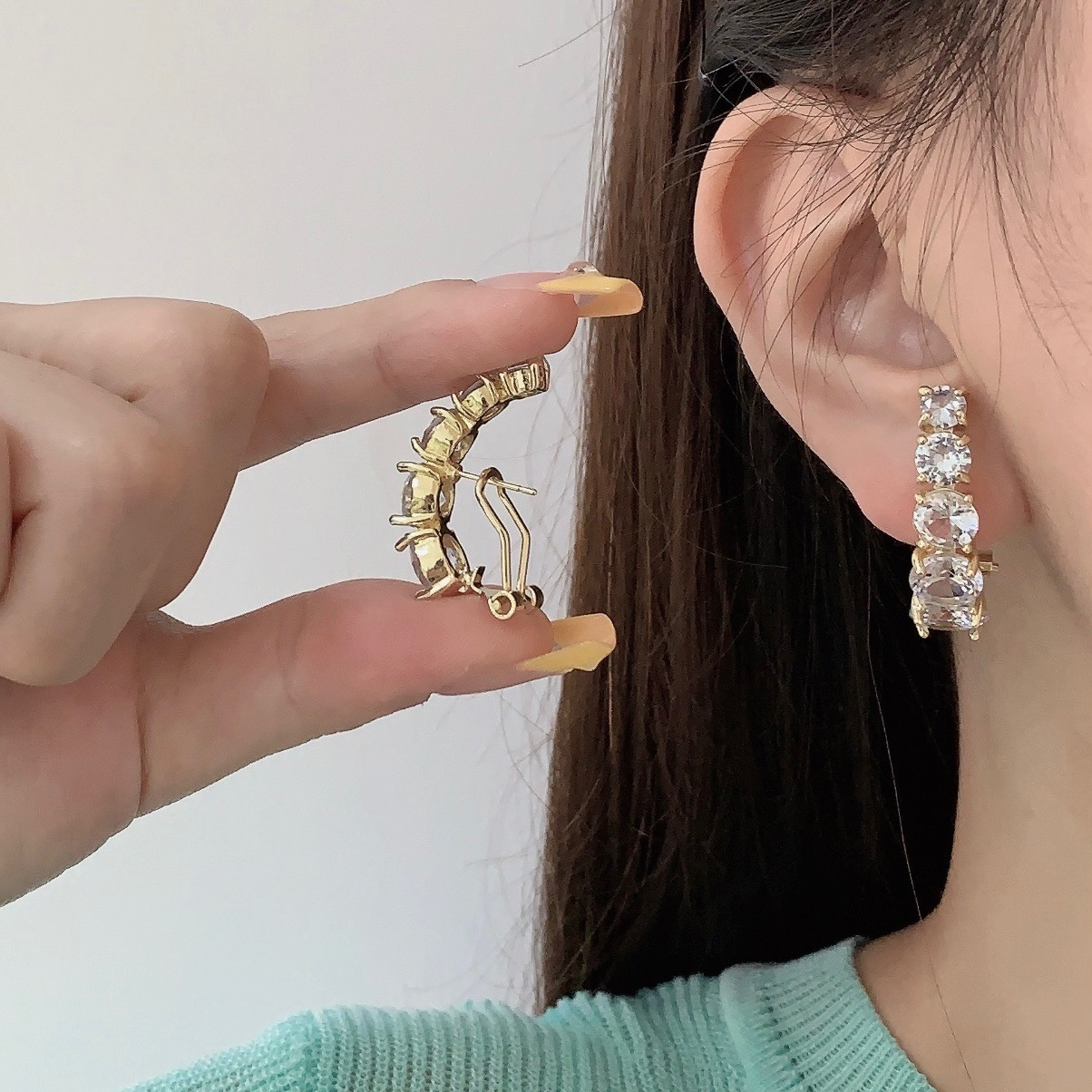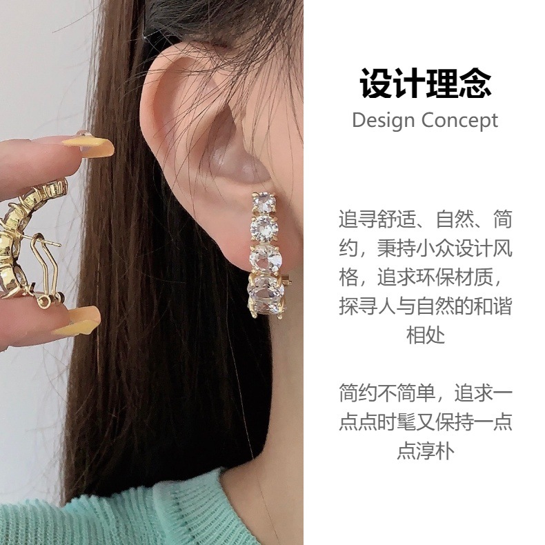 锆石耳钉冷性风气质独特耳环小众设计感高级感个性耳饰女2024新款