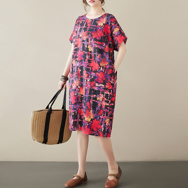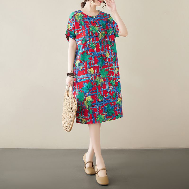 连衣裙女夏季新款外穿民族风宽松大码短袖时尚洋气妈妈装大摆裙