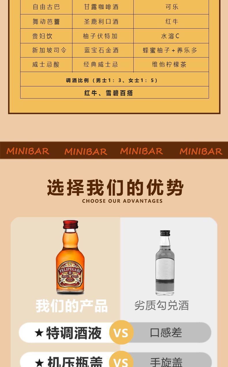 便利店调酒鸡尾酒摆摊小酒版威士忌伏特加调酒迷你小瓶洋酒鸡尾酒