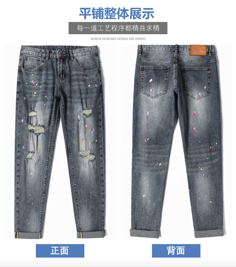 european goods summer thin men‘s jeans trendy splash-ink paint ripped men‘s denim skinny stretch washed trousers