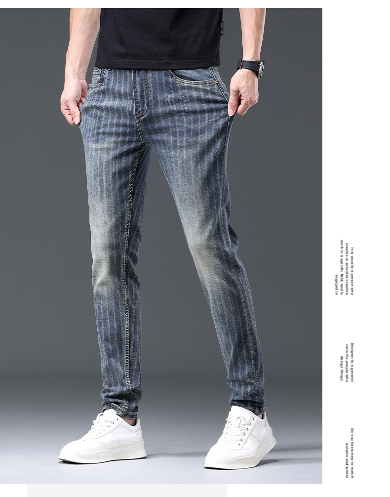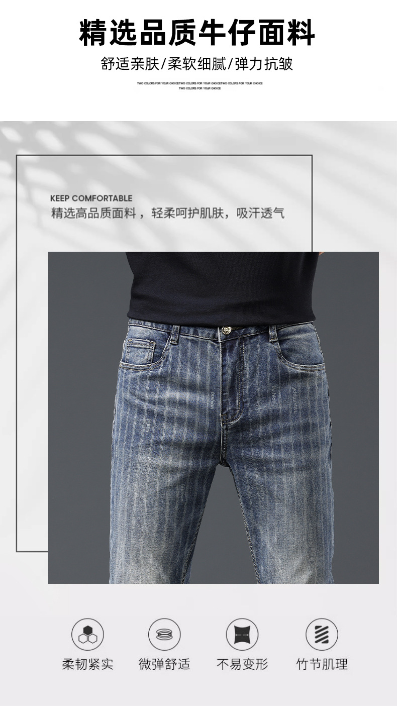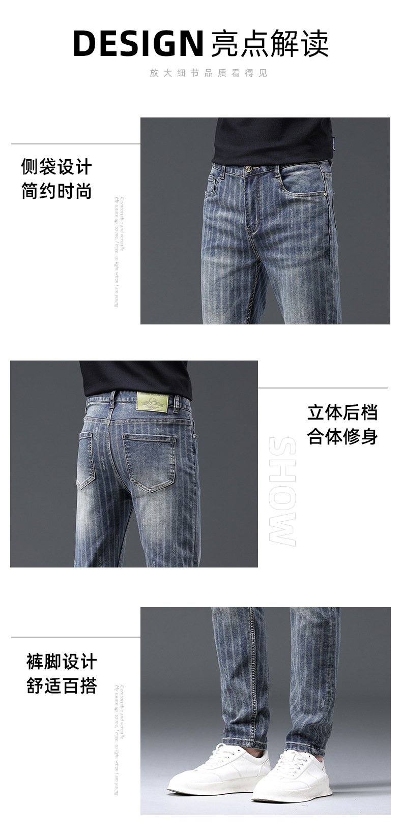 男士条纹印花牛仔裤潮牌2024新款春夏弹力商务休闲修身小直筒裤子