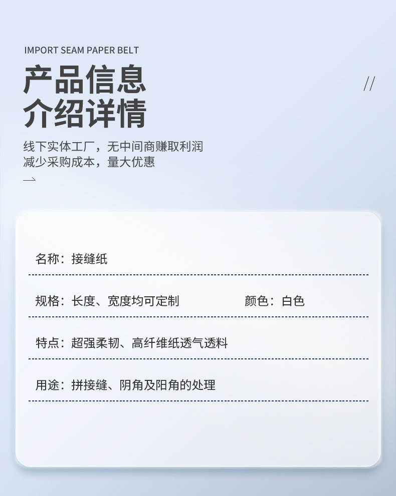 牛皮纸接缝带纤维纸石膏板吊顶接缝纸带轻薄抗裂嵌缝防裂绷带批发