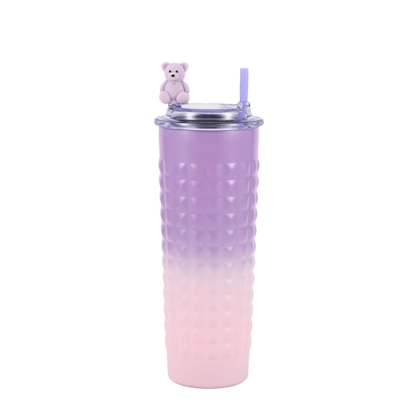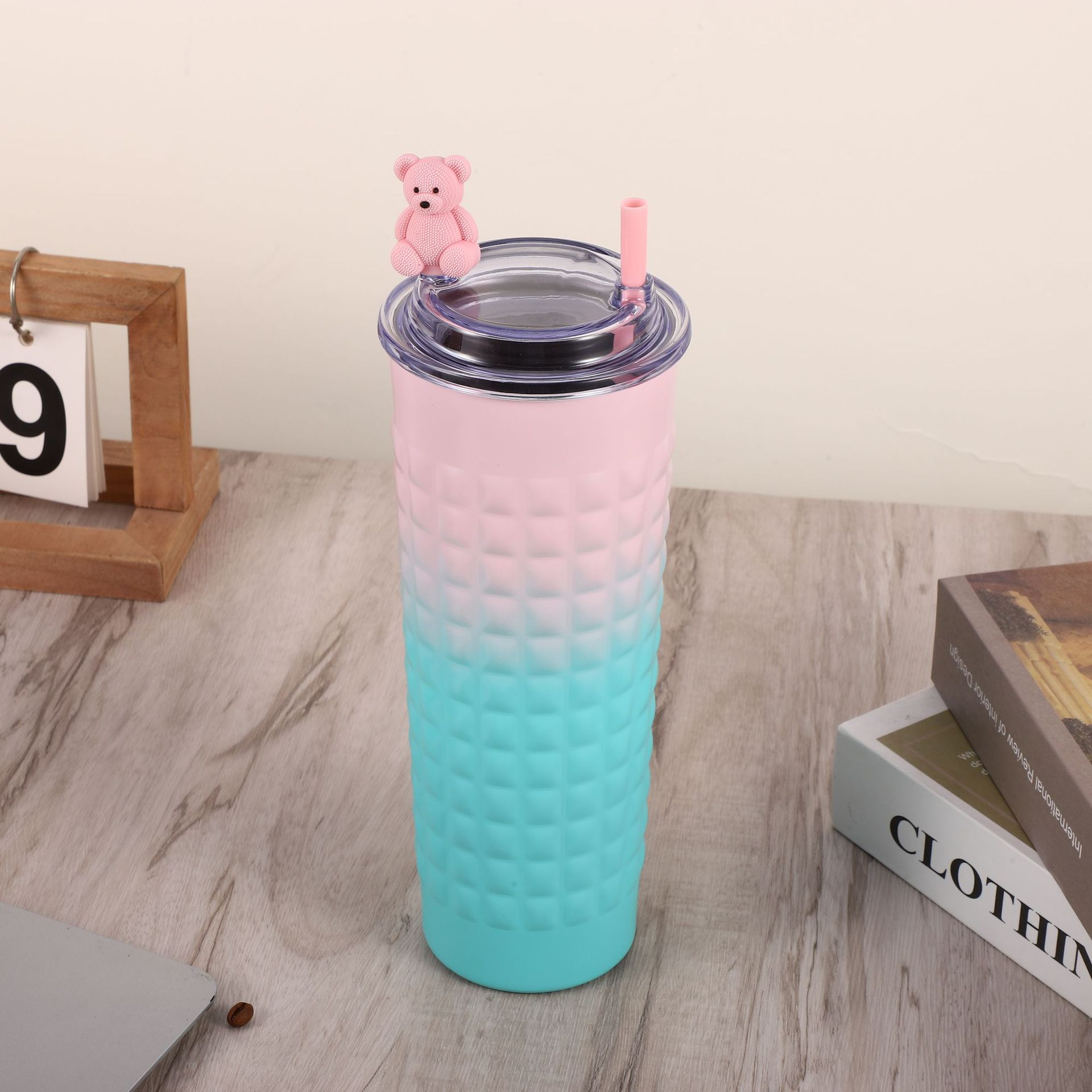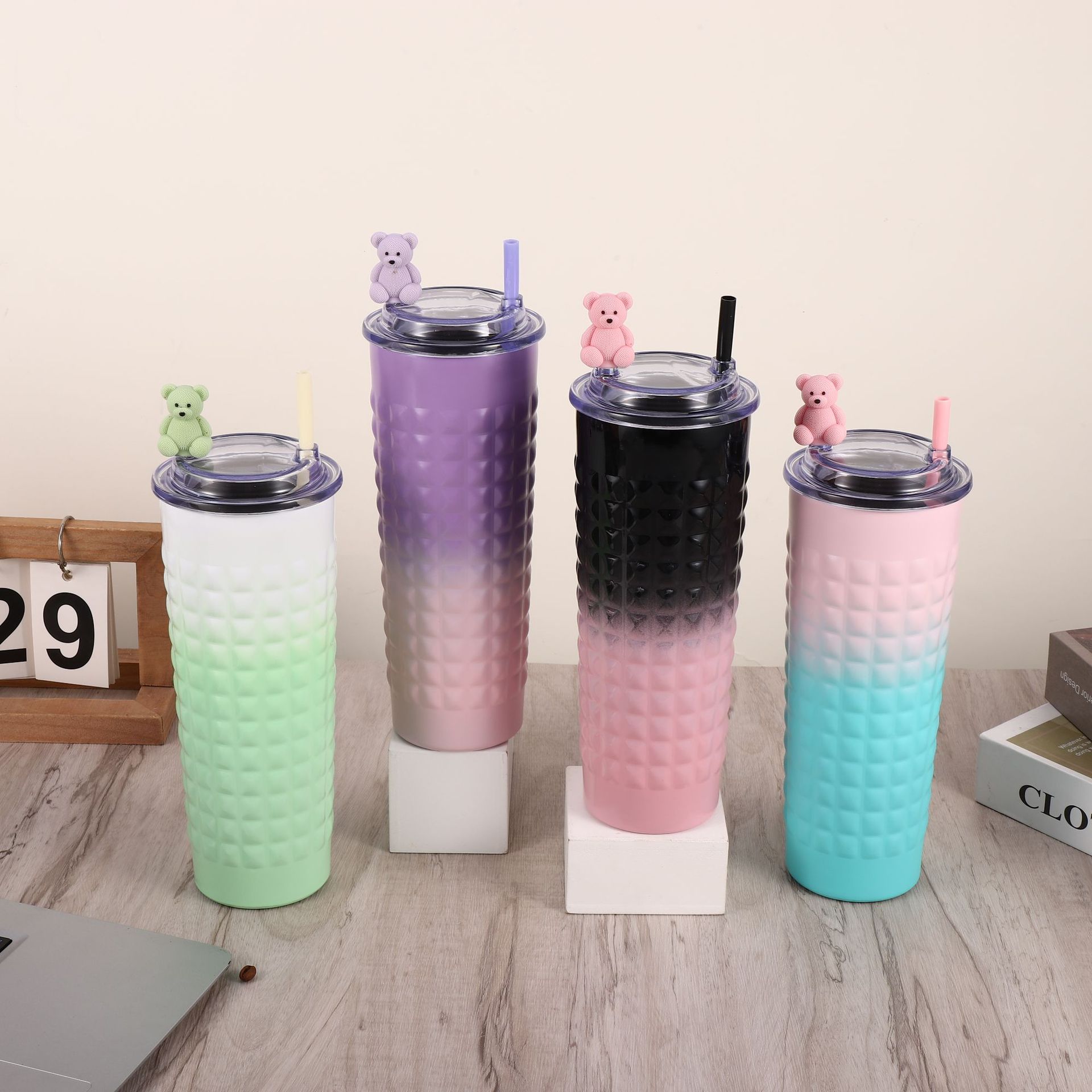 新款亚马逊渐变高颜值榴莲保温杯吸管杯户外便携运动保温杯学生杯