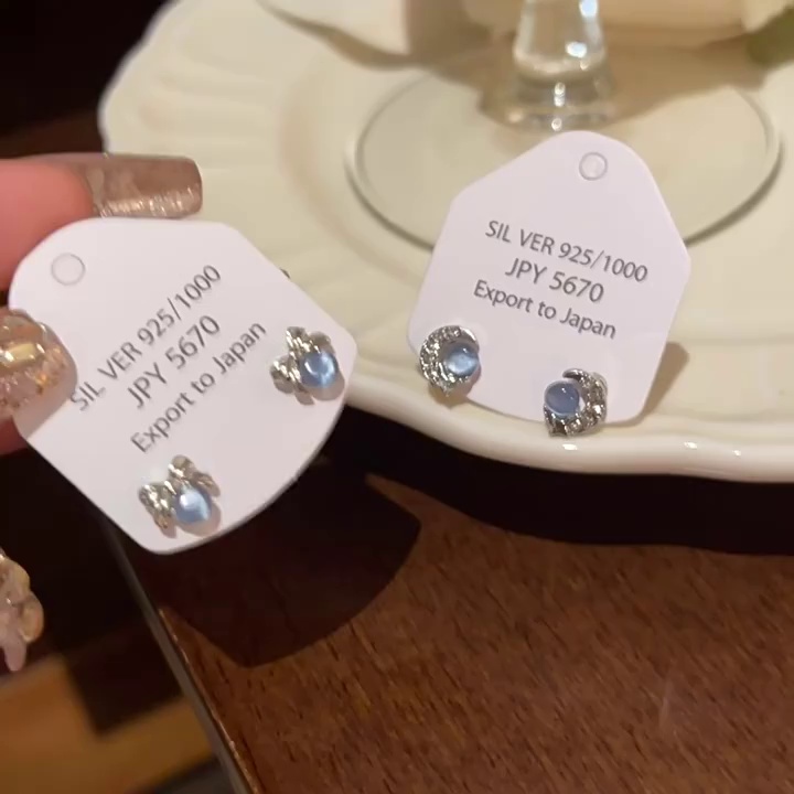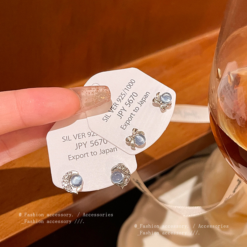 饰品气质星月耳环耳饰S925银针小众高级感蝴蝶结蓝色猫眼石耳钉女